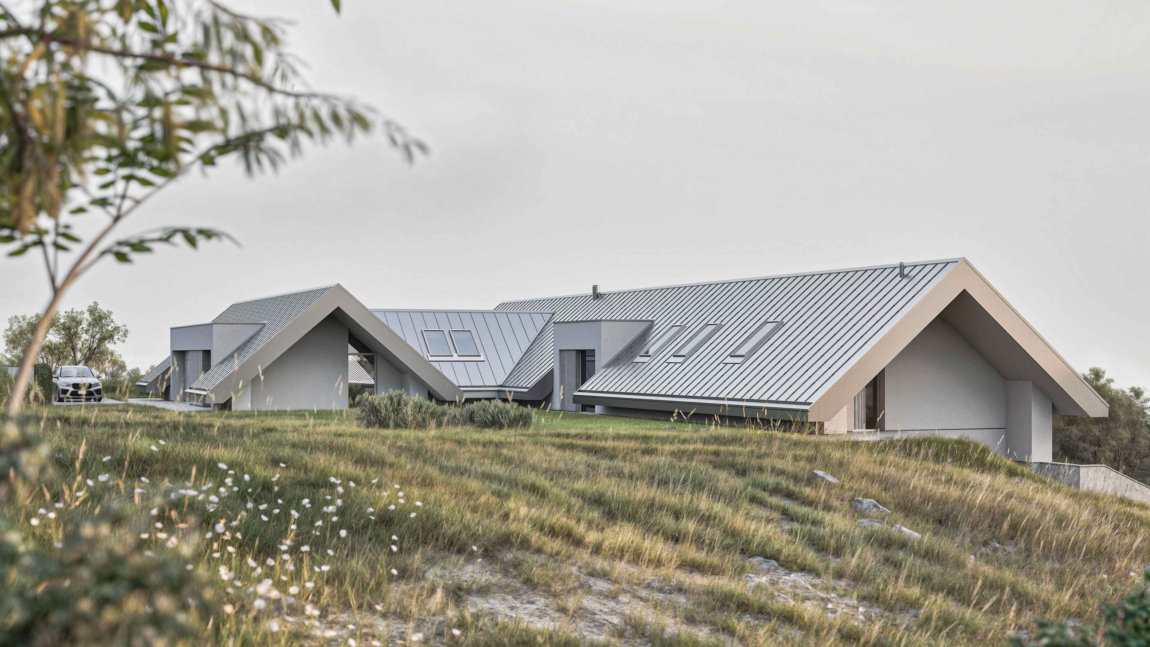 Nowoczesna stodoła wyrastająca ze skarpy