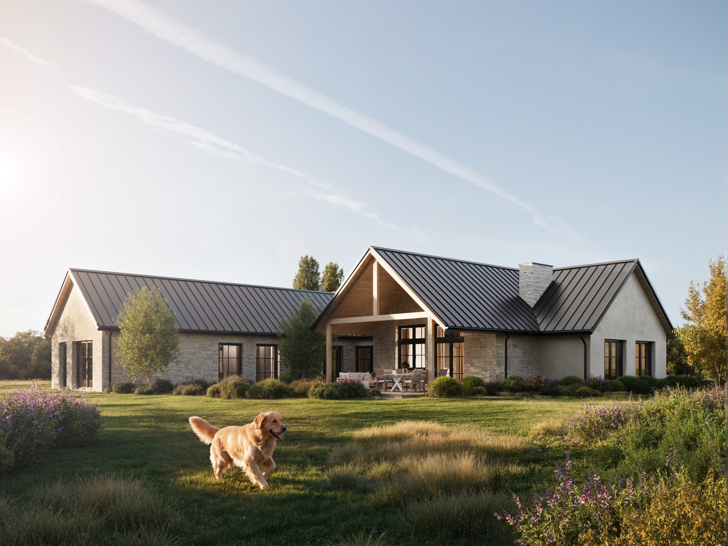 „Dom pod Świebodzinem” to współczesna interpretacja stylu modern farmhouse – łącząca sielski charakter architektury wiejskiej z nowoczesną estetyką i funkcjonalnością. Projekt powstał jako odpowiedź na potrzeby inwestorów: życia w ciszy, blisko natury, w przestrzeni, która daje poczucie prywatności, spokoju i harmonii z otoczeniem.