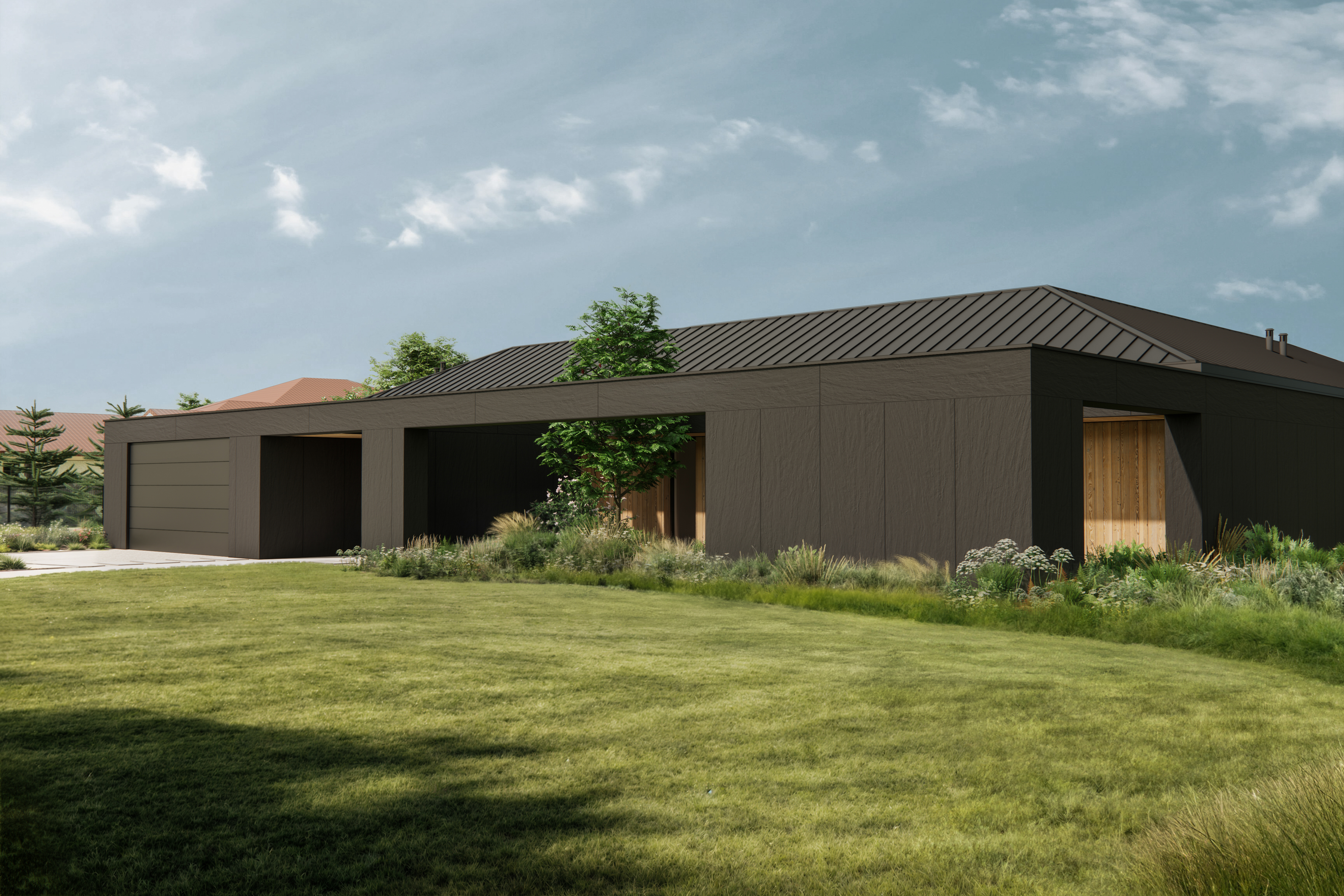 Dom zaprojektowano na podmiejskiej działce w układzie łanowym o zachodniej ekspozycji z panoramicznym, niezabudowanym widokiem na otaczające go pola. Jednocześnie otwarte położenie terenu wymagało zabezpieczenia przed intensywnymi wiatrami oraz zapewnienia prywatności w stosunku do bliskiej, zwartej zabudowy sąsiedniej.