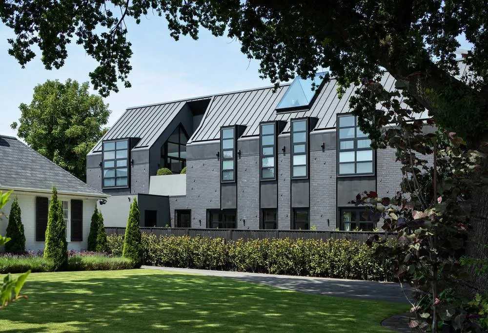Północna elewacja została ukształtowana przez serię lukarn z obramieniami ze stali, które oferują kontrolowane widoki na park oraz zapożyczony krajobraz sąsiedztwa. W strefie dziennej stalowa biblioteka i przeszklona ściana oddzielają przestrzeń od klatki schodowej, eksponując ceglaną ścianę jako centralny motyw wnętrza. Na osi szczytu domu duże, kratowe okno kadruje wąski widok na wierzby rosnące w Hagley Park.