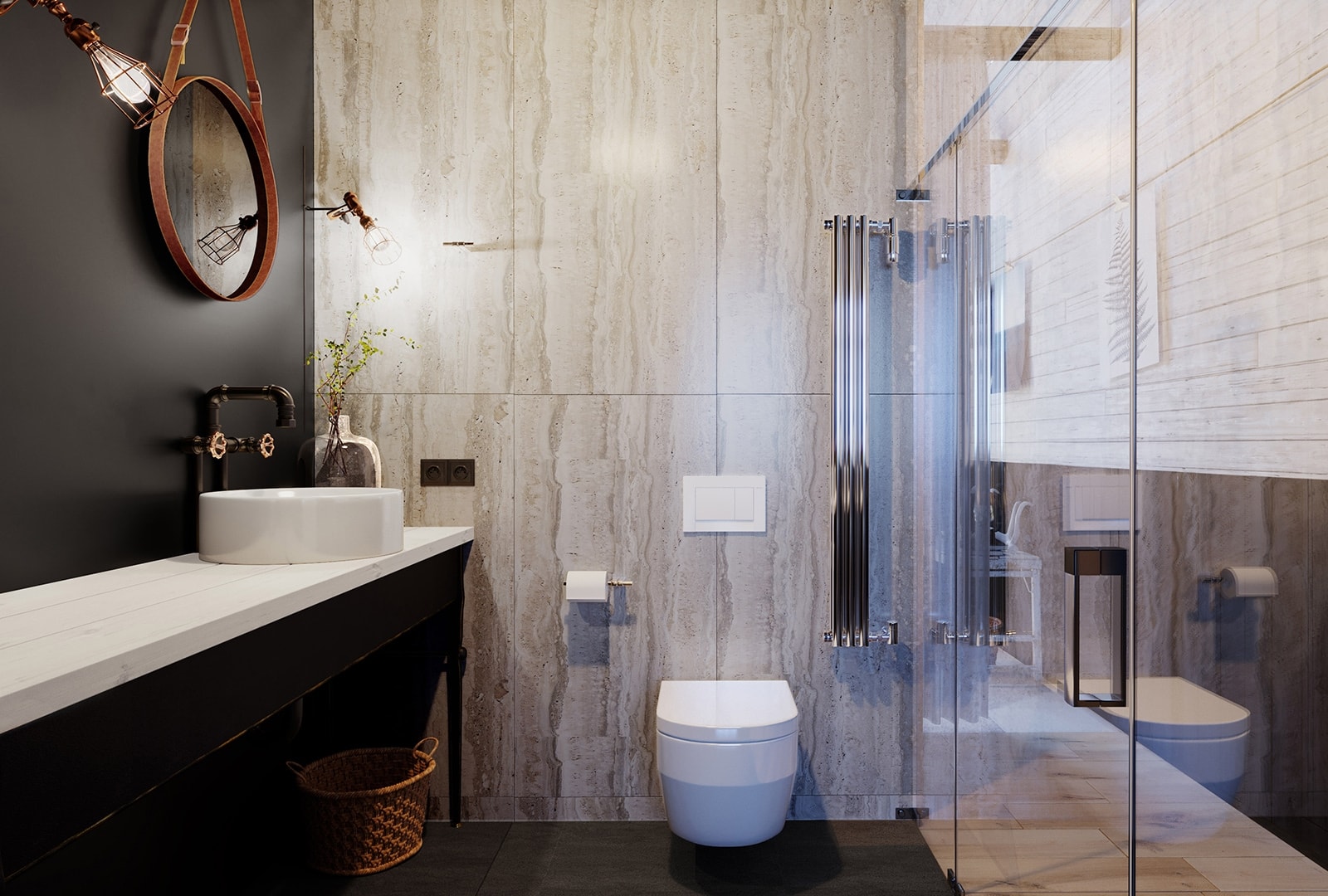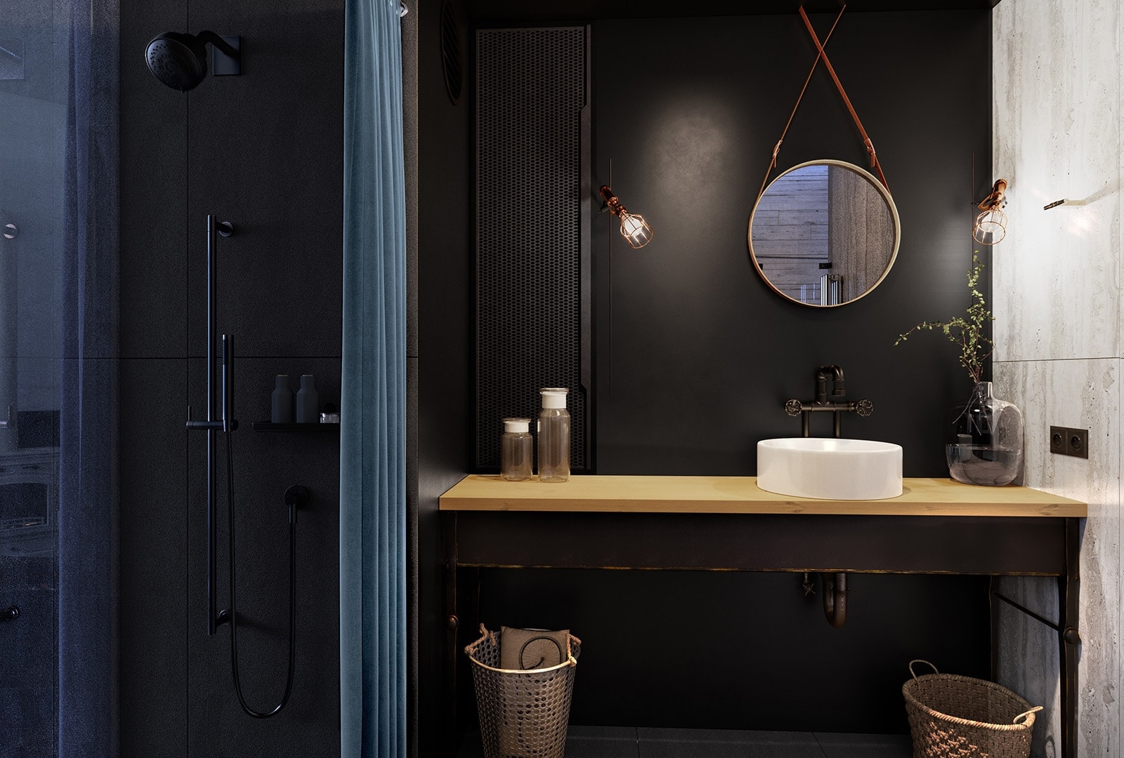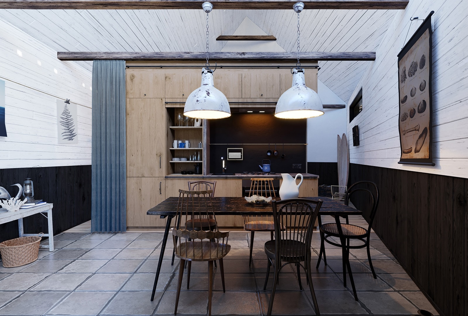 Mimo kompaktowych rozmiarów – 54 m² powierzchni użytkowej – układ wnętrza jest przemyślany i elastyczny. Centralnym punktem jest prostopadłościenny „rdzeń”, w którym umieszczono kuchnię, łazienkę, miejsce do pracy i strefy przechowywania. Nad nim, na antresoli, zaprojektowano przestrzeń sypialnianą. Dzięki temu każdy metr kwadratowy pełni określoną funkcję, a całość pozostaje wygodna i otwarta.