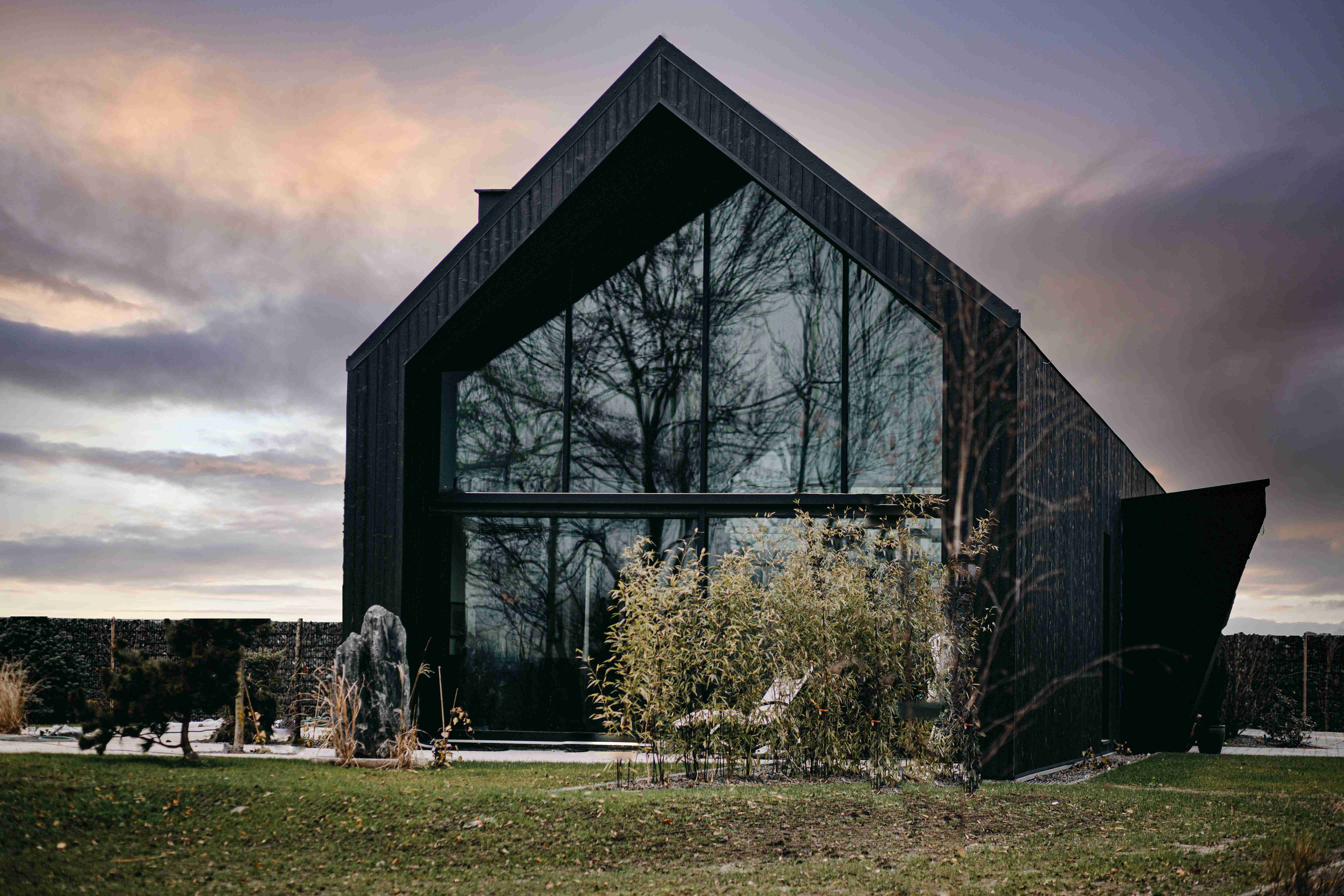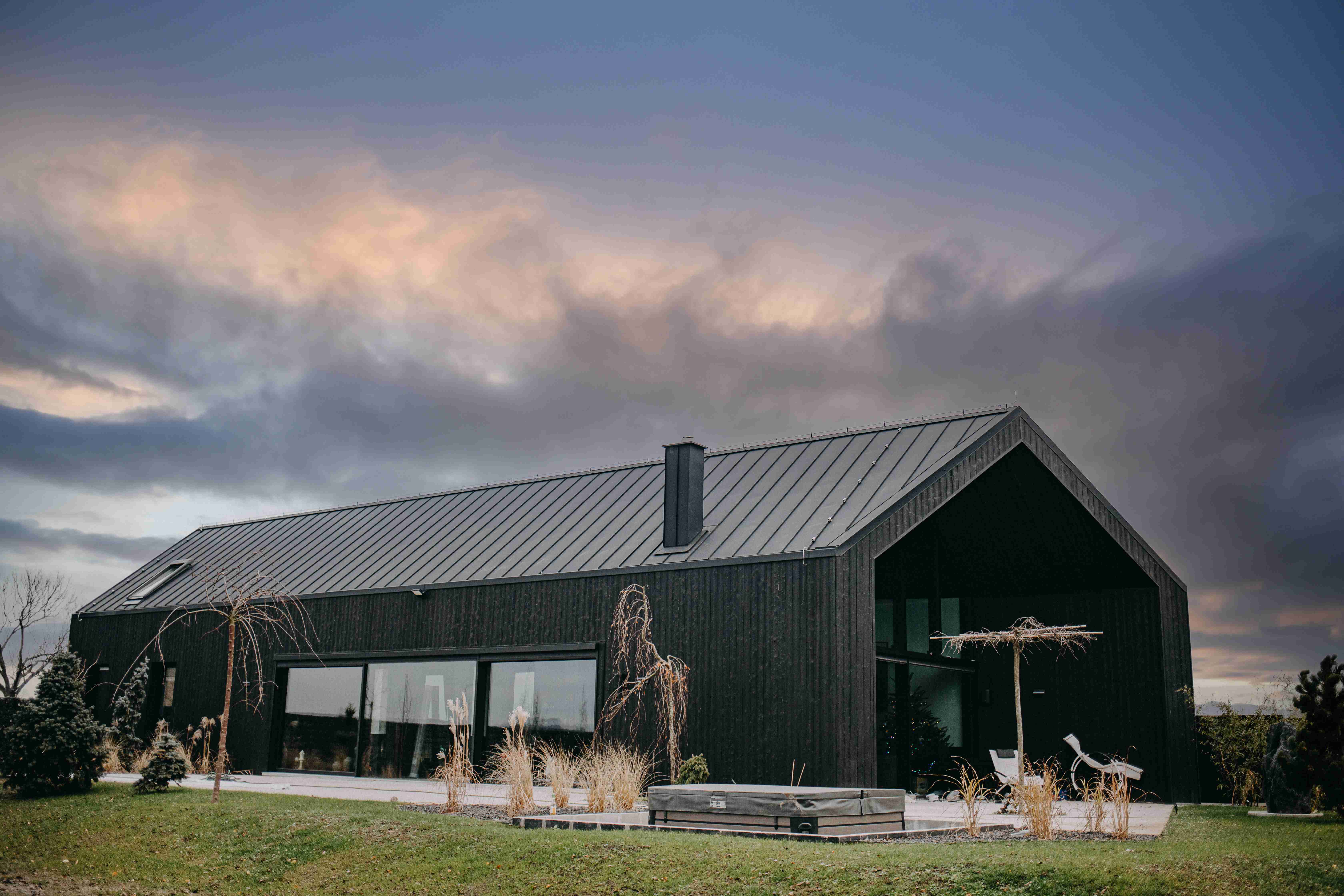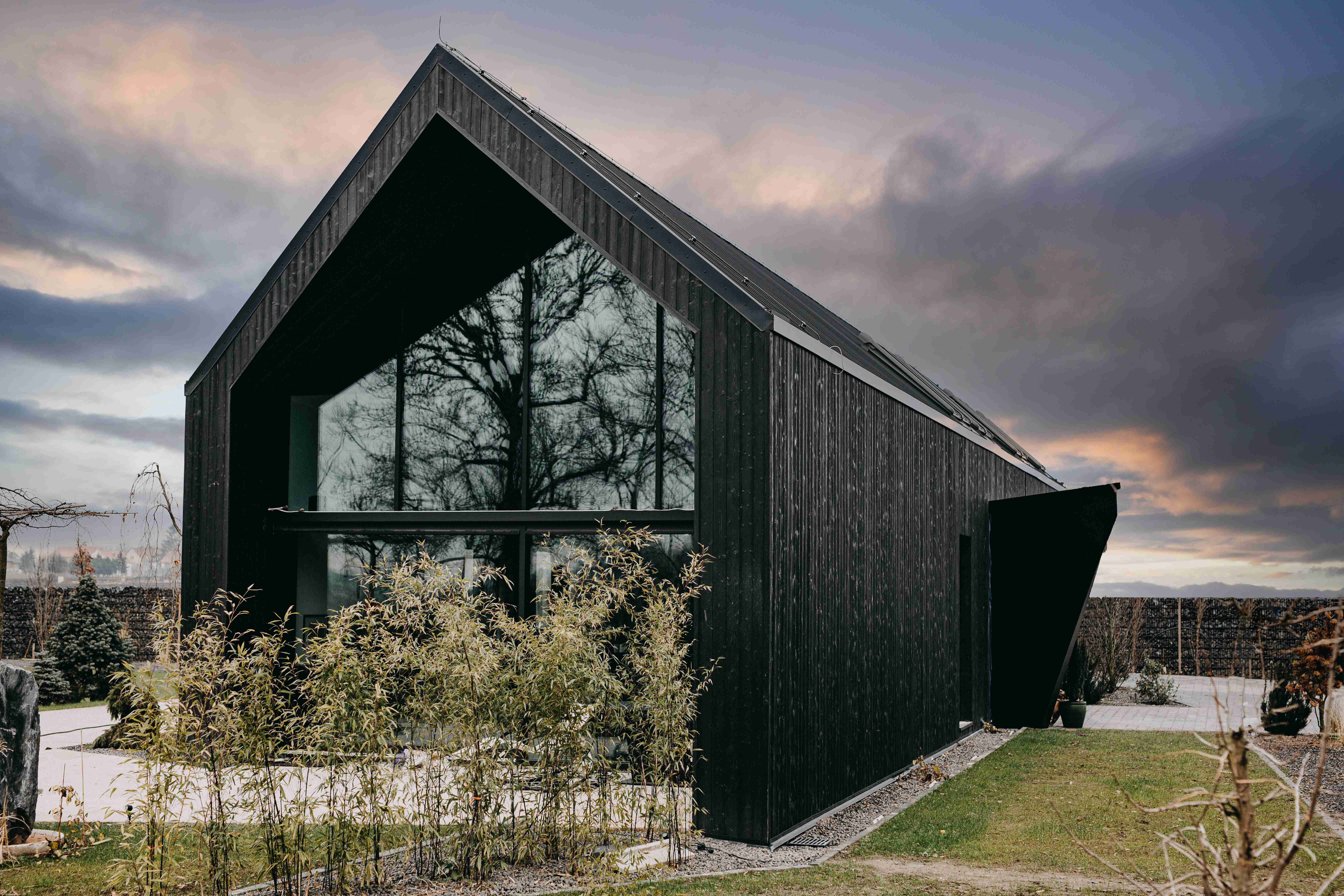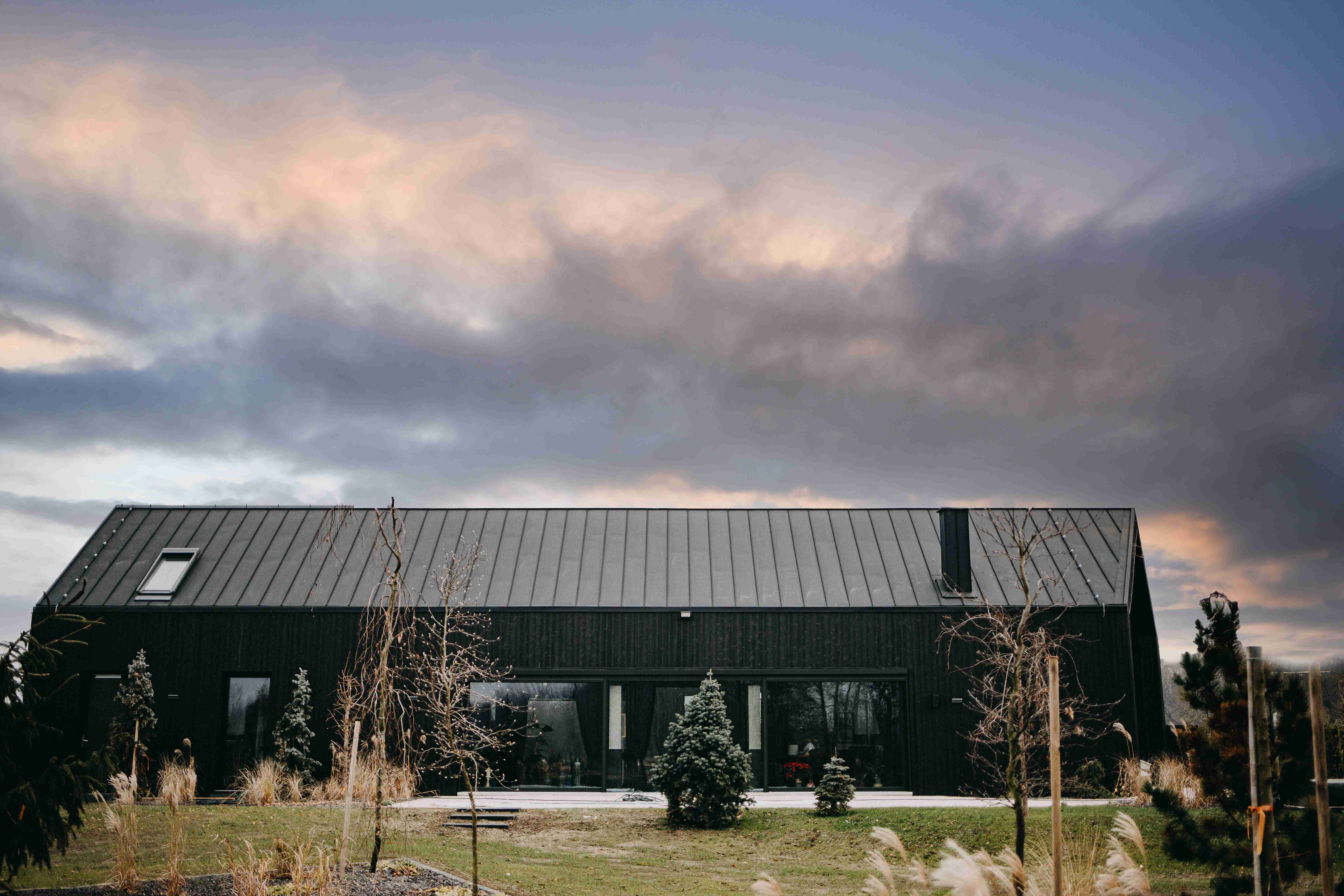 Dom w czerni w stylu nowoczesnej stodoły autorstwa arch. Maćka Rempalskiego to nie tylko elegancka i subtelna architektura widoczna od zewnątrz, ale też ukryte nowoczesne rozwiązania. Za sprawą odważnych decyzji i dzięki wzajemnemu zaufaniu architekta oraz inwestora, powstała przedstawiona na zdjęciach nowoczesna stodoła. Czarna i minimalistyczna forma domu, podkreśla naturalne walory estetyczne drewna, a także nawiązuje dialog z otaczającą przyrodą.
