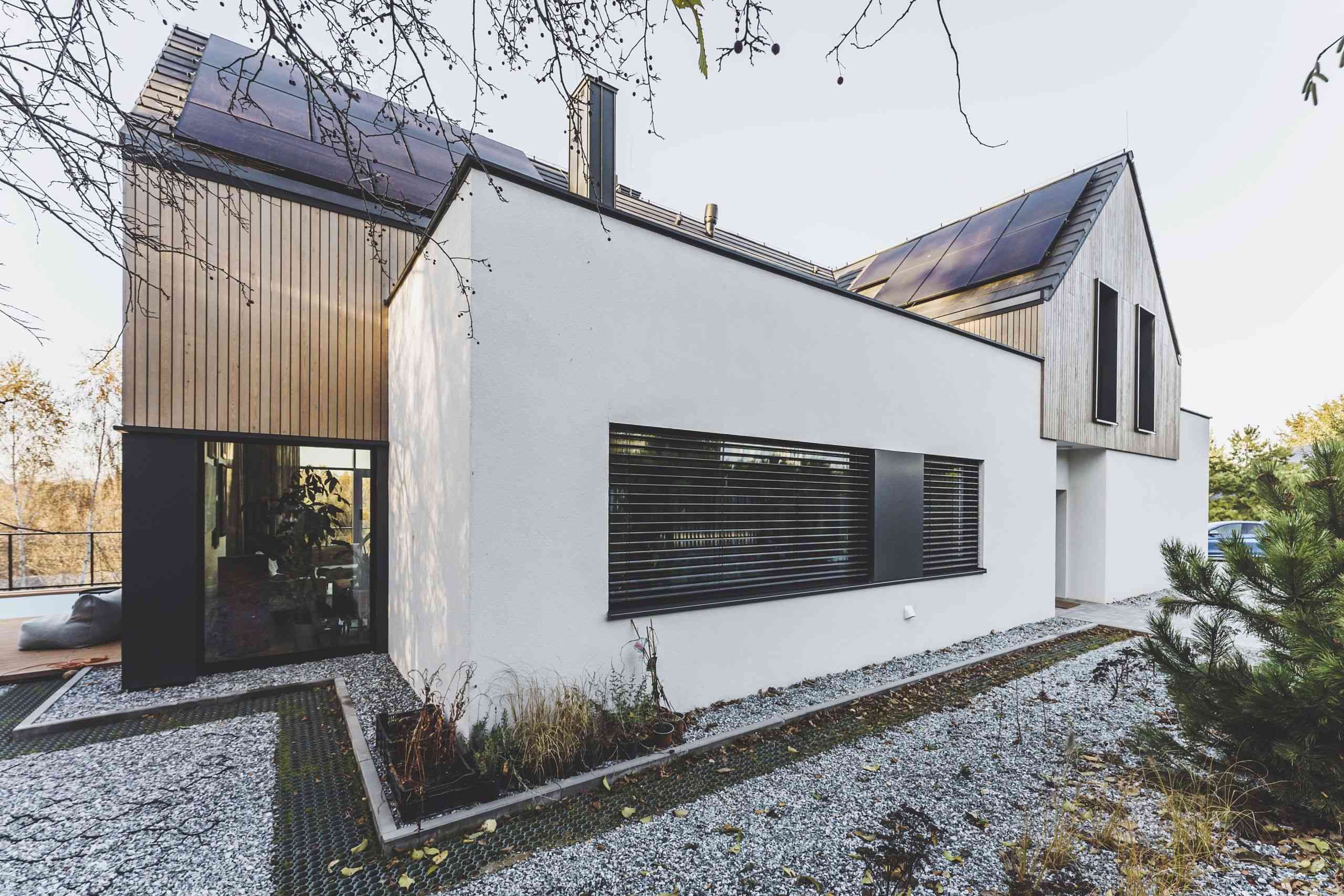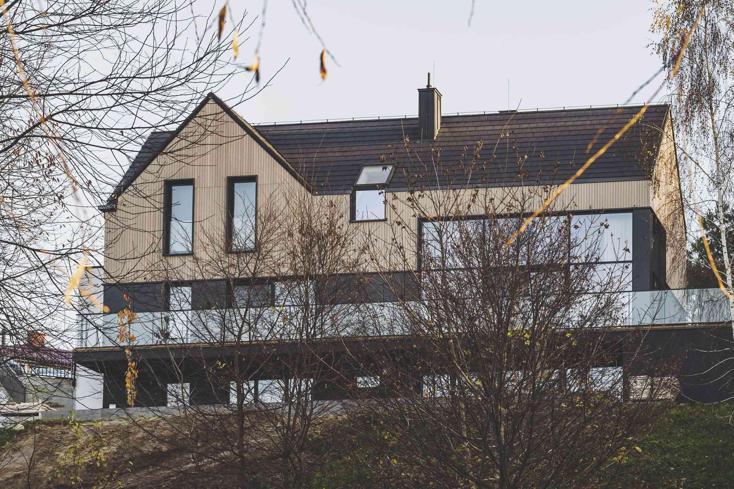 Koncepcja tego wyjątkowego domu na zboczu powstała w oparciu o wyraźne wytyczne inwestorów, którym zależało na maksymalnym wykorzystaniu panoramy rozpościerającej się z działki oraz na stworzeniu przestronnego, pełnego światła salonu z widokiem na naturę. Architekci zaprojektowali funkcjonalną, komfortową przestrzeń dla małżeństwa z dwójką nastolatków oraz ukochanym czworonogiem. Po stronie pracowni leżał pełen zakres działań: projekt budowlano-architektoniczny, dokumentacja techniczna, aranżacja wnętrz oraz projekt ogrodu we współpracy z pracownią architektury zieleni „Planea”. Całość tworzy spójny i dopracowany koncept, w którym nowoczesna stodoła łączy minimalizm formy z naturalnym pięknem krajobrazu.