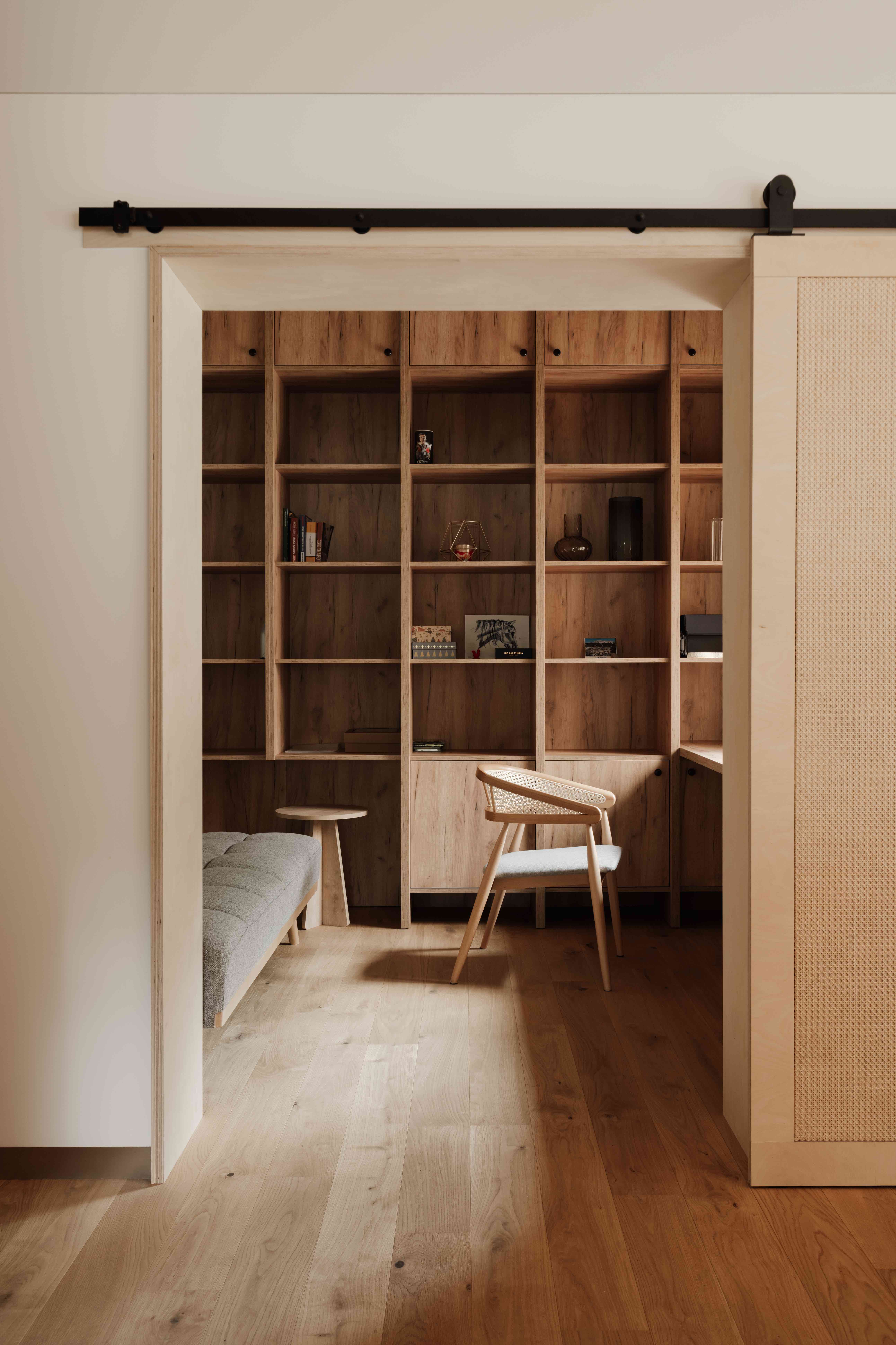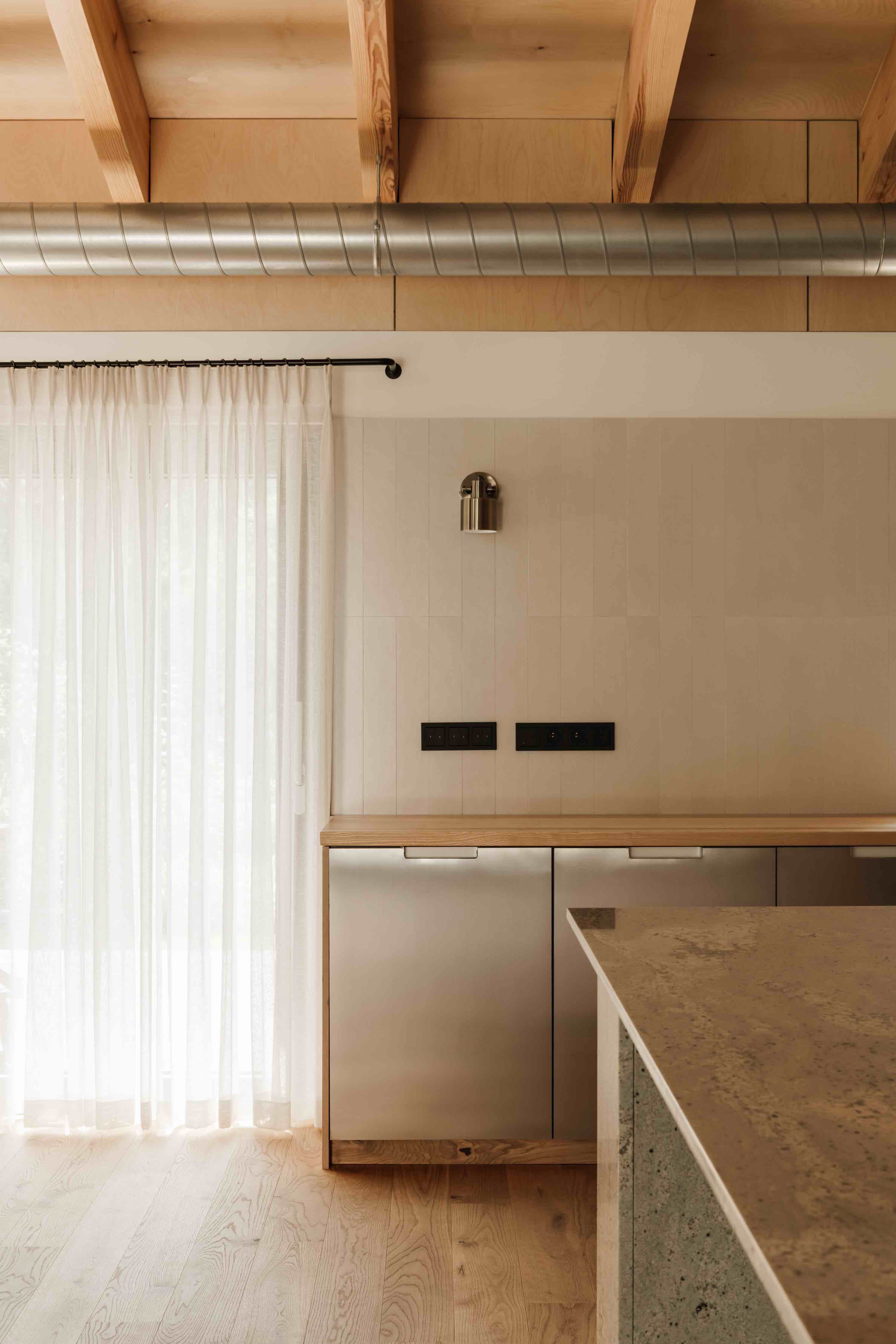 Skromna paleta materiałów nie oznacza surowości – przeciwnie, wnętrze jest stonowane, wyciszone i zbudowane z myślą o sensorycznym komforcie. Drewniane powierzchnie, naturalne światło i przemyślana akustyka umożliwiają odpoczynek w pełnym tego słowa znaczeniu. Wnętrza zachowują płynność dzięki starannej pracy nad detalem i harmonijnym przejściom pomiędzy funkcjami.