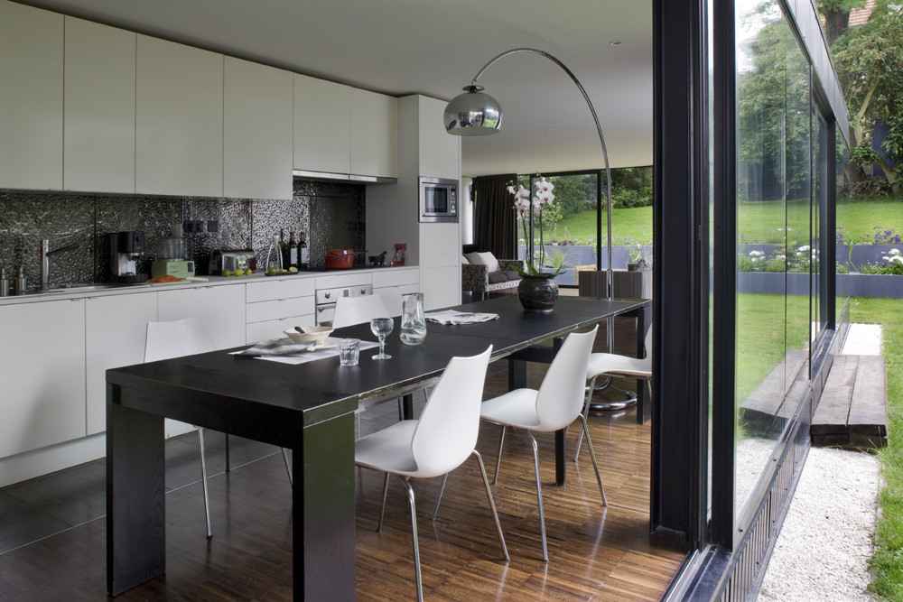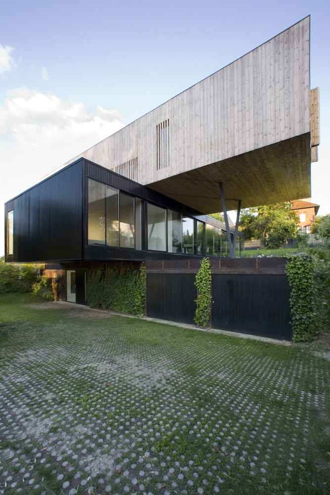 Architekci zadbali, aby podział domu na trzy odrębne części odzwierciedlał charakter otoczenia. Okolica Sèvres jest zróżnicowana – pełna budynków o różnych kształtach i funkcjach, dlatego projekt w naturalny sposób wpisuje się w jej kontekst. Pomimo dużej powierzchni (879 m²), dom zachowuje lekkość i wizualną spójność. Jego złożona struktura stanowi odpowiedź na ograniczony teren działki – nakładanie się poszczególnych elementów pozwoliło na maksymalne wykorzystanie przestrzeni, zachowując przy tym elegancki, minimalistyczny styl. Projekt łączy tradycję z nowoczesnością, tworząc bryłę przypominającą nowoczesną stodołę, w której prostota formy współgra z funkcjonalnością.
