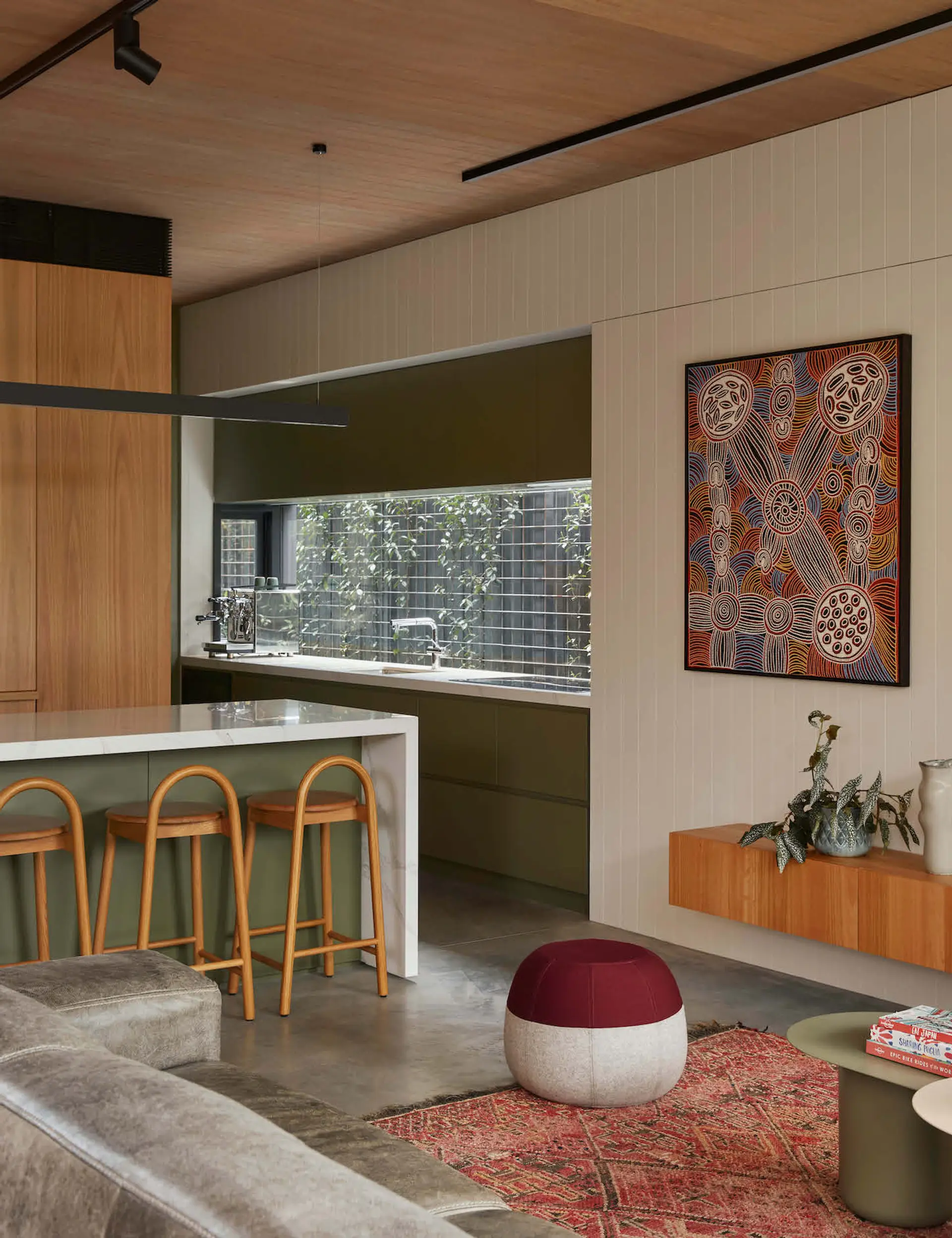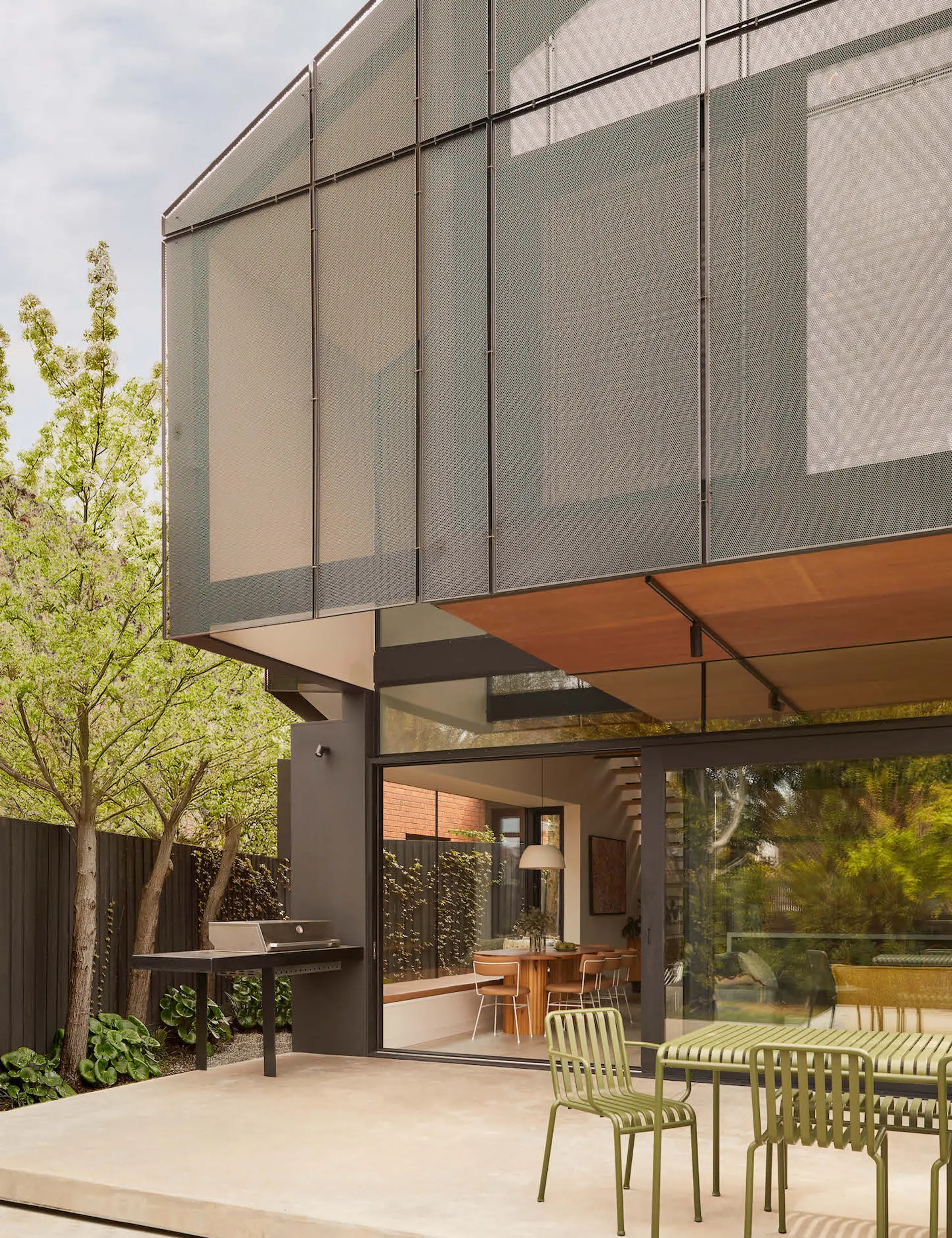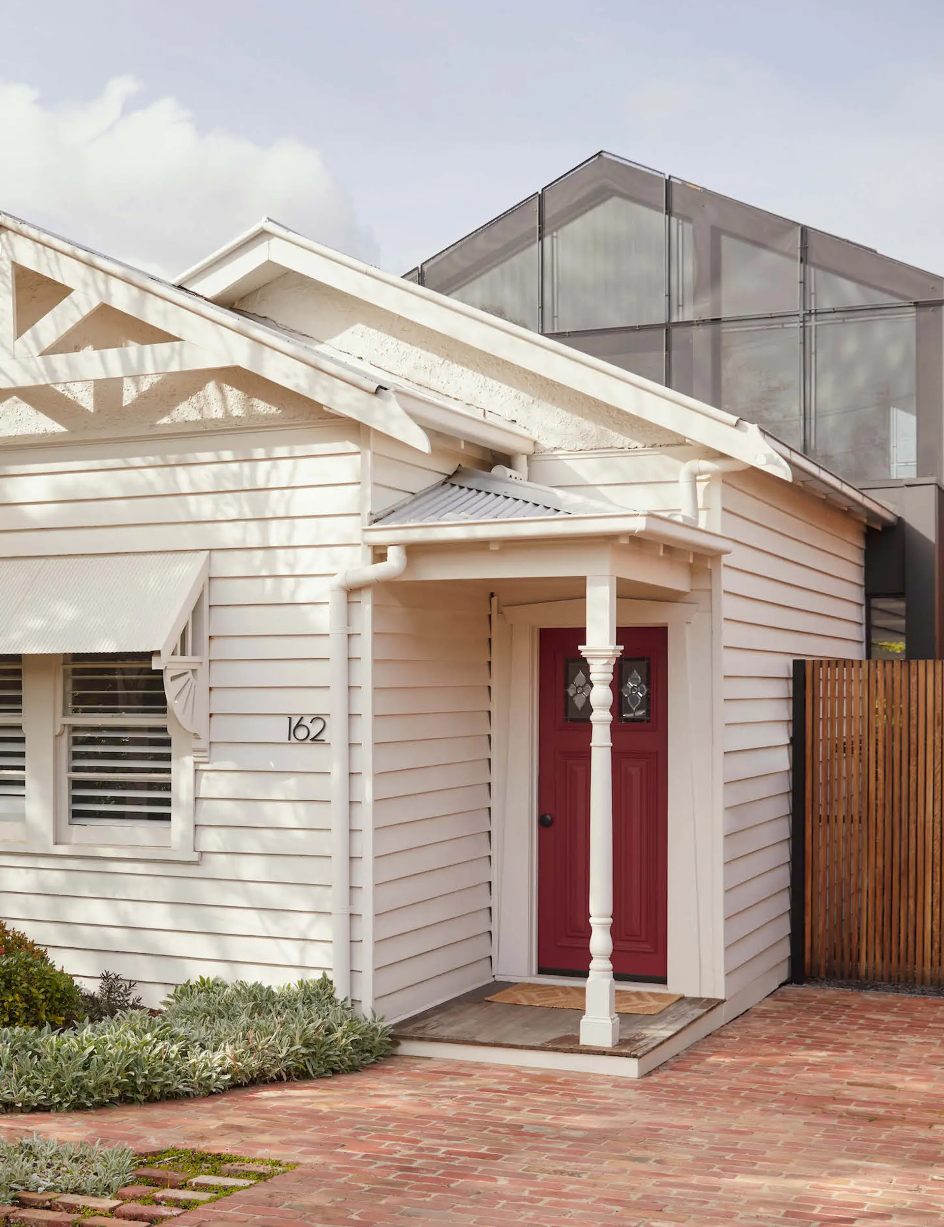 Od początku było jasne, że oryginalna fasada w stylu Federation zostanie zachowana. Architekci skupili się więc na rozbudowie tylnej części budynku, tworząc nową jakość przestrzenną bez naruszania historycznego charakteru frontu. Dzięki temu dom zachowuje swoją tożsamość w miejskiej tkance, a jednocześnie zyskuje zupełnie nową funkcjonalność.