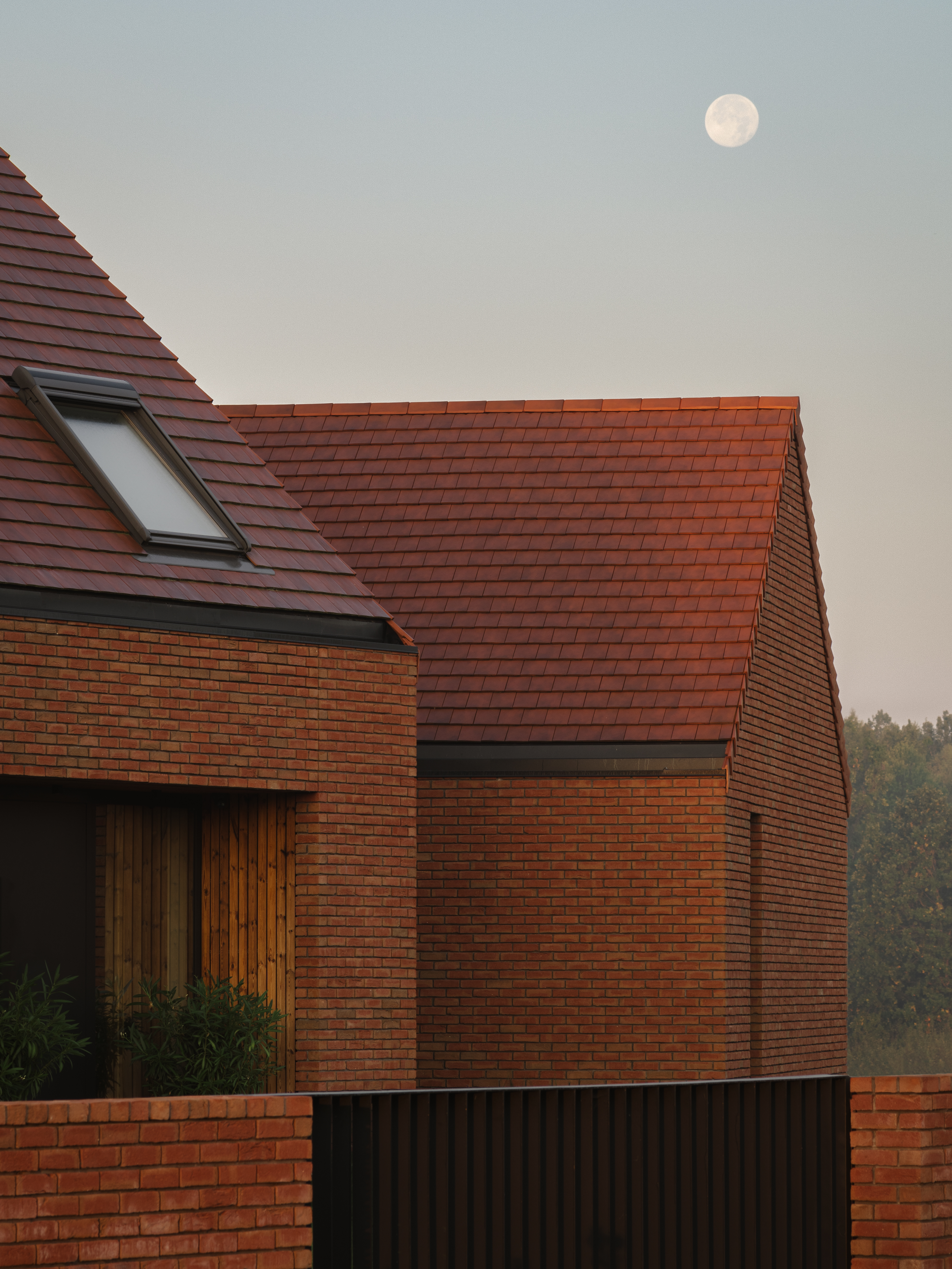 Starannie dobrane materiały wykończeniowe nawiązują do lokalnych tradycji. Ściany wykończone cegłą oraz dachówka ceramiczna w odcieniach czerwieni zostały do siebie dopasowane kolorystycznie tworząc monolityczne bryły, które podkreślają warmiński charakter budownictwa.