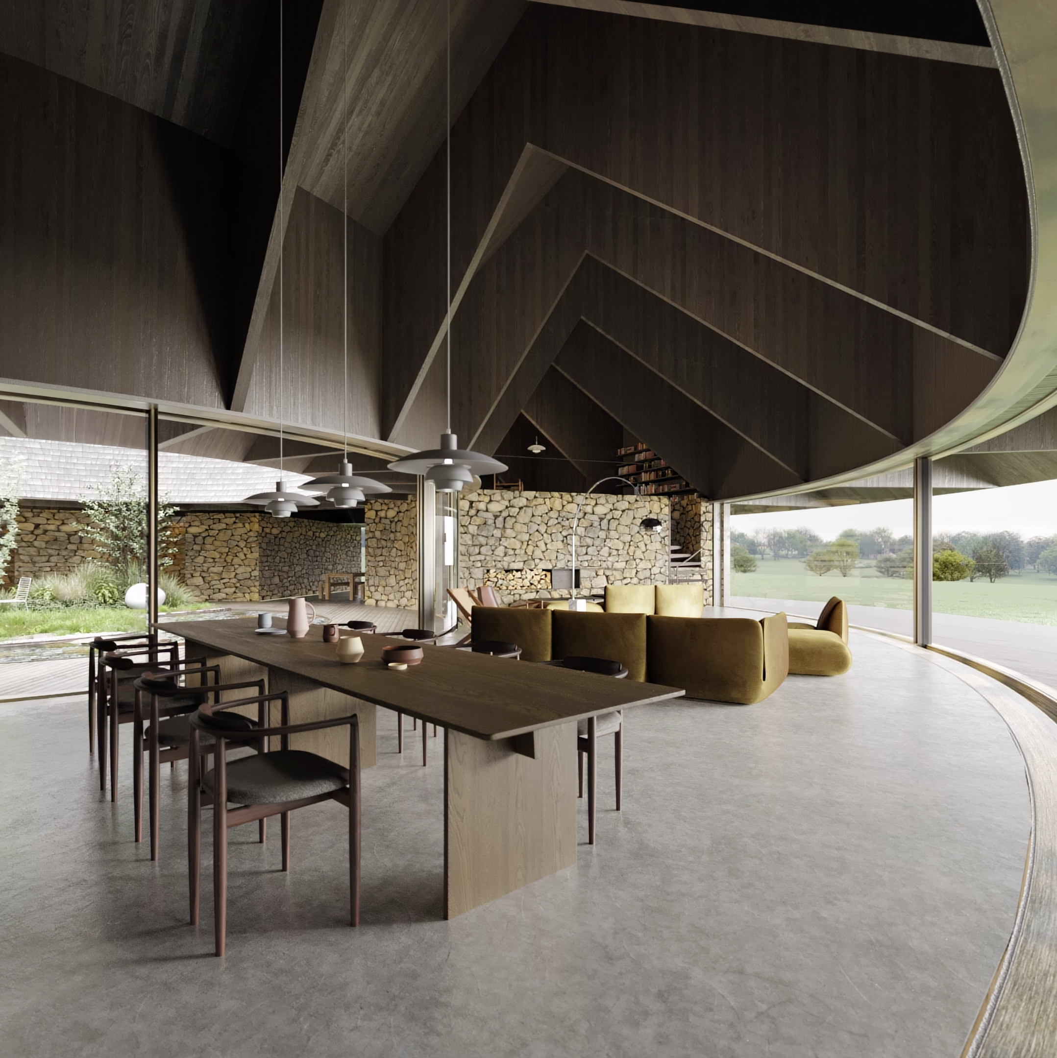 W sercu malowniczego wiejskiego krajobrazu powstał Dom Wiejski, zaprojektowany przez RE:MAG STUDIO™. Ten fascynujący projekt to nie tylko budynek – to prawdziwa reinterpretacja tradycyjnych form architektonicznych, które harmonijnie wkomponowują się w otoczenie. Inspirowany klasyczną zabudową, Dom Wiejski odpowiada na potrzeby współczesnych mieszkańców, łącząc estetykę z praktycznością.