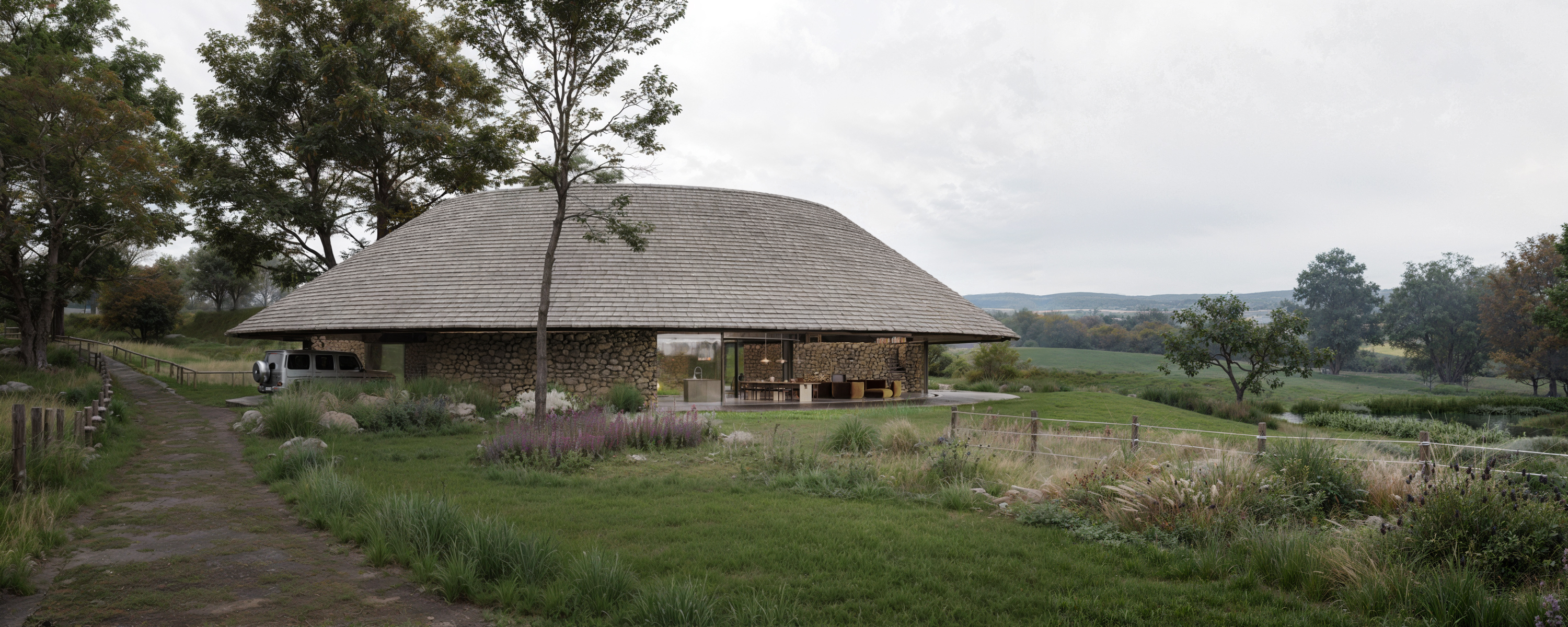 Dom Wiejski łączy innowacyjne rozwiązania technologiczne z wysokiej jakości materiałami, co sprawia, że jest nie tylko piękny, ale także energooszczędny. Z wzniesienia, na którym stoi, rozciąga się widok na rozpościerający się krajobraz, oferując nie tylko wyjątkowe doznania estetyczne, ale także intymność i spokój w codziennym życiu mieszkańców. To wszystko inspiruje mieszkańców i oferuje im spokój, którego pragną w dzisiejszych czasach.