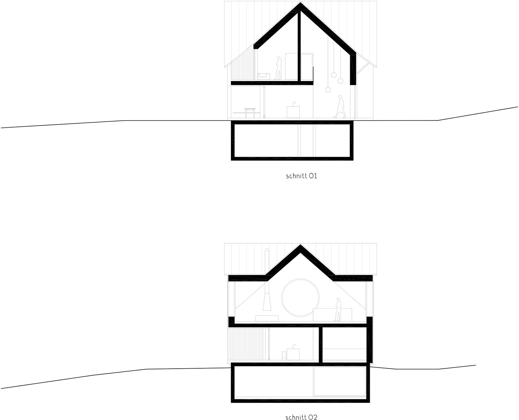 „Nowy dom połączył dwie metody budowlane” mówią przedstawiciele studia, na czele którego stoją architekci Markus Innauer i Sven Matt. „W pełni wykorzystaliśmy kubaturę budynku, dodając jedynie charakterystyczną, dodatkową ścianę szczytową”.