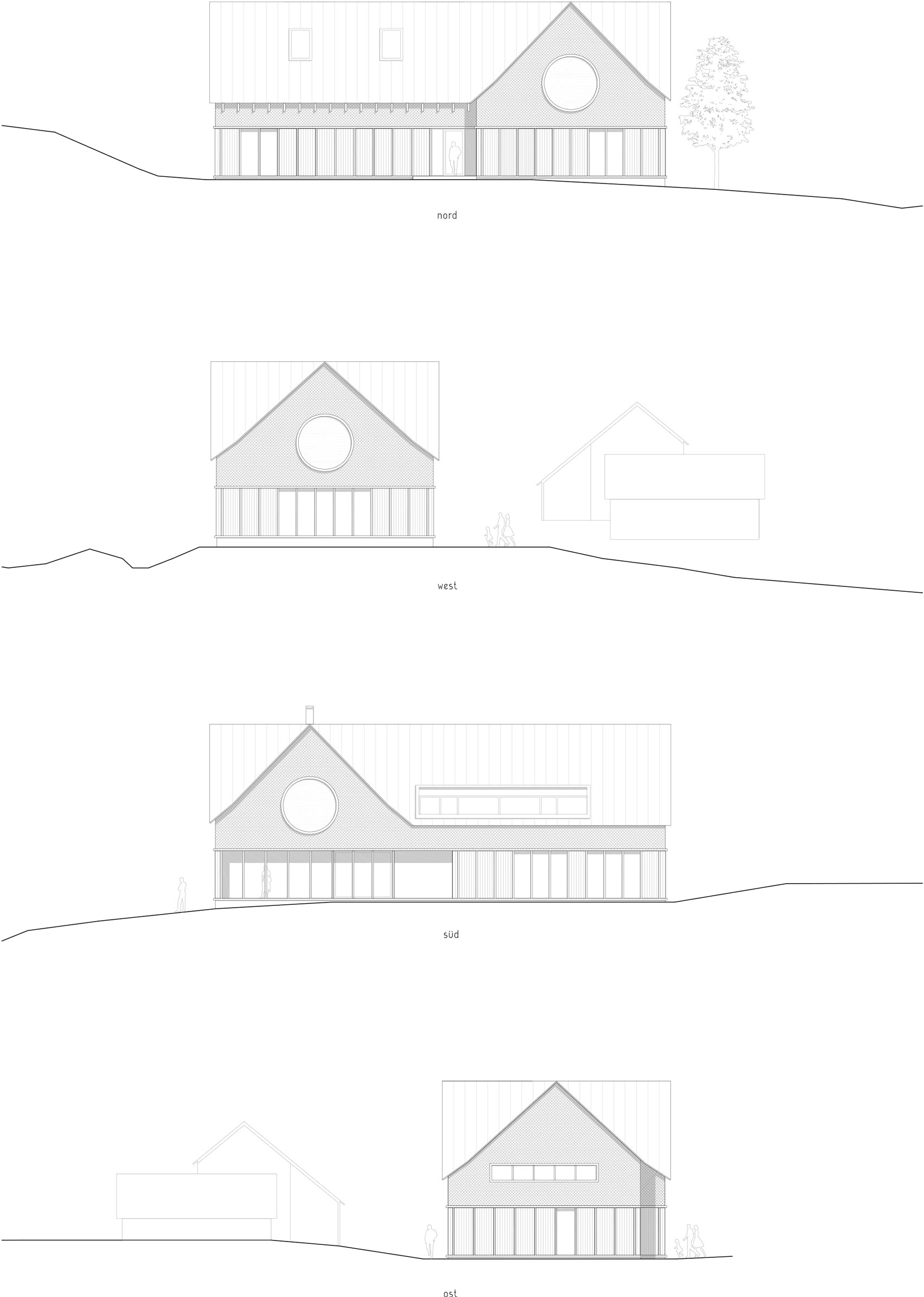 Projekt o nazwie „Dom z 3 oczami” to dwupoziomowa nieruchomość z widokiem na Dolinę Renu w Austrii. Poza oknami, projekt ten wyróżnia także drewniana elewacja, którą częściowo wykonano z modrzewiowego gontu przypominającego rybią łuskę. nowoczesną STODOŁĘ zaprojektowano dla czteroosobowej rodziny w pobliżu wioski Weiler. Kiedyś w tym miejscu istniała farma, ale stary dom uległ zupełnemu zniszczeniu. Regulacje przestrzenne narzucały jednak, by nowy budynek pasował zarówno formą, jak i swą wielkością do swego poprzednika. To tworzyło pewne ograniczenia dla architektów i wymagało szczególnej kreatywności.