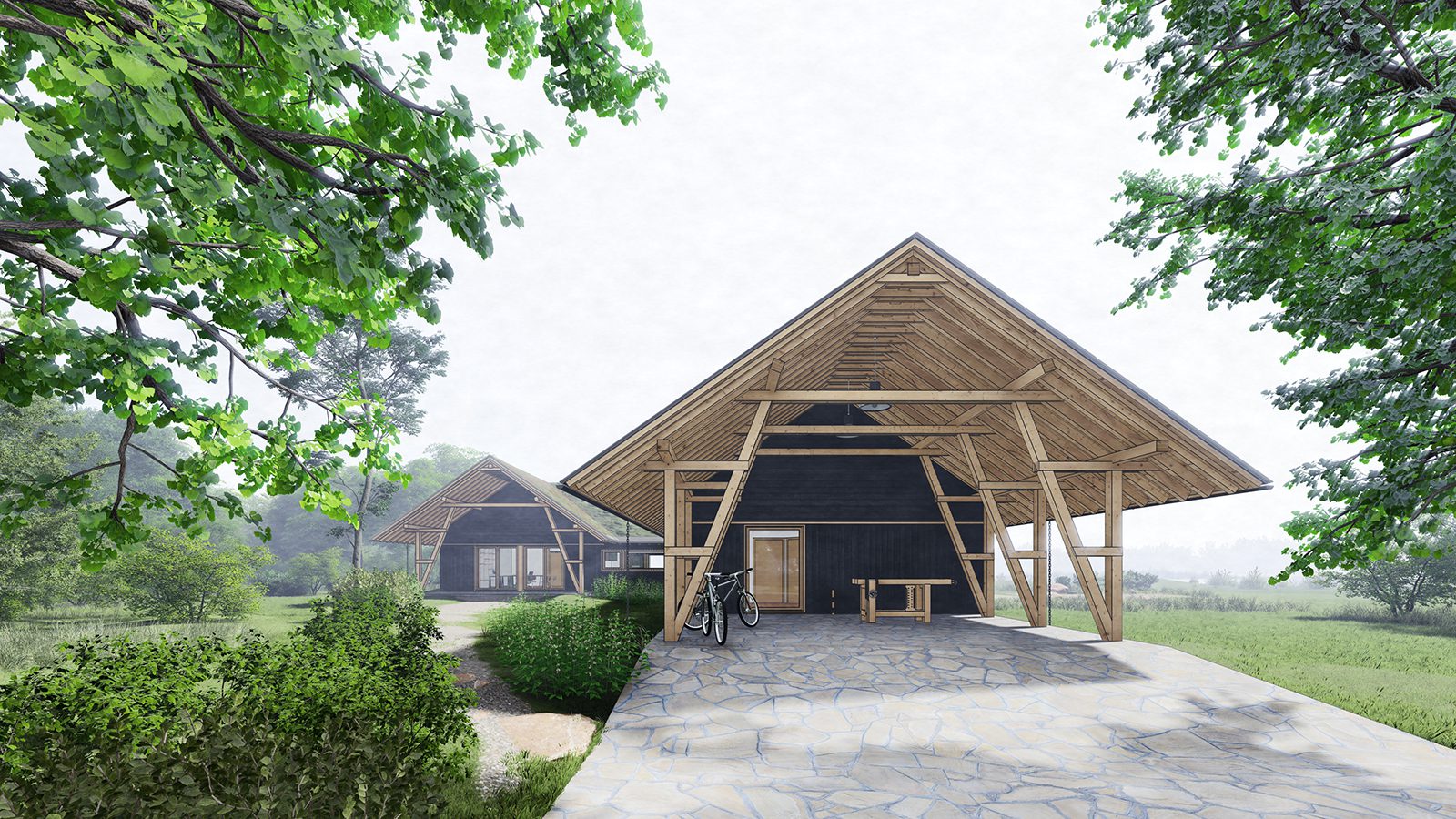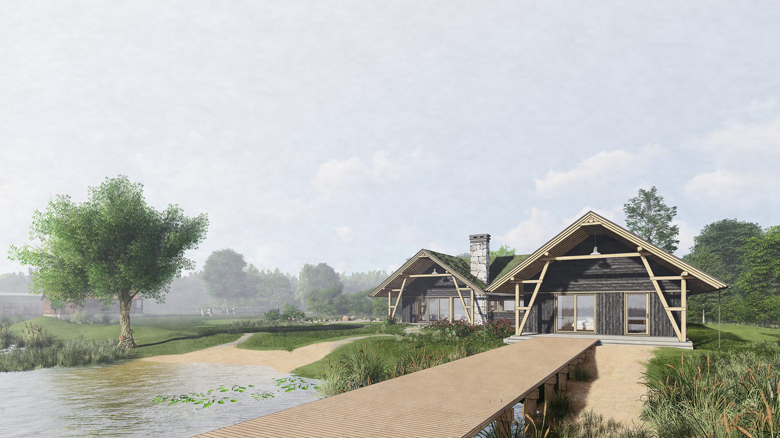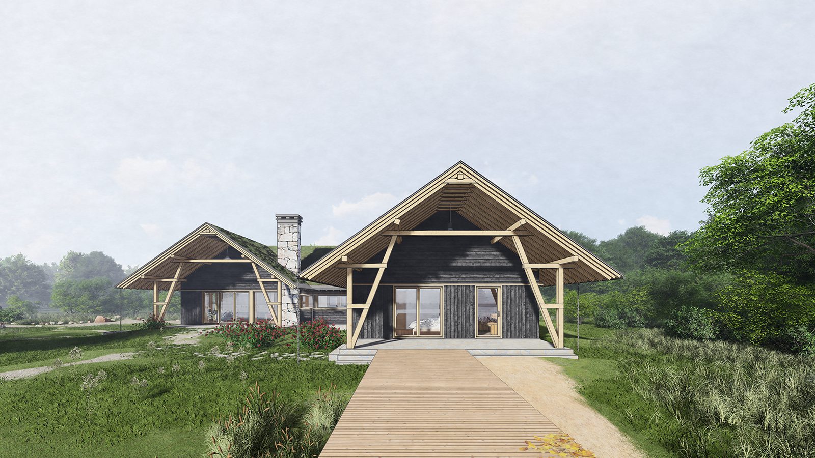 W projekcie przewidziano zielony dach, który stanowi nowoczesne rozwiązanie łączące walory wizualne z praktycznymi korzyściami. Warstwa roślinna poprawia izolację termiczną budynku, ogranicza nagrzewanie poddasza w okresie letnim i wspiera retencję wody. To subtelny, lecz bardzo efektowny element architektury, który podnosi jakość przestrzeni i podkreśla unikatowy charakter domu.