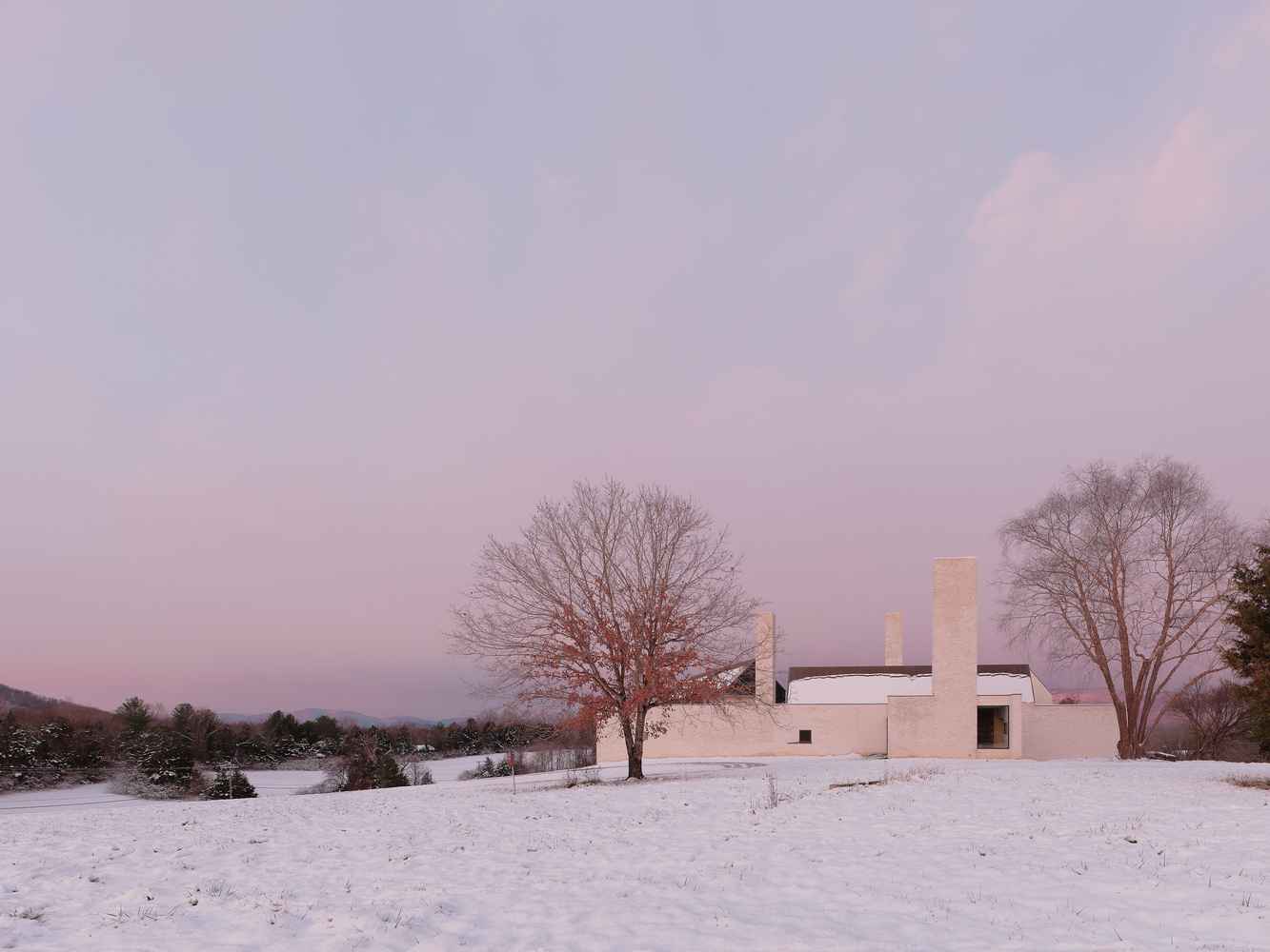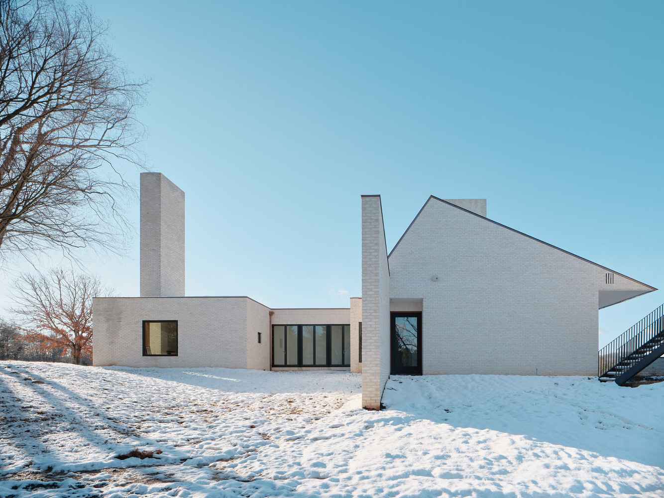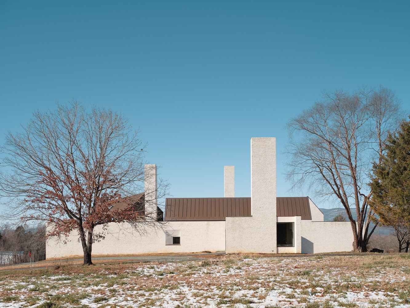 Założenia projektowe od początku miały być proste, trwałe i oparte na lokalnym kontekście. Architekci podkreślają, że chcieli stworzyć czystą, niemal pierwotną formę domu, definiowaną przez kominy, ściany i dachy – elementy silnie związane z regionalnym dziedzictwem. Inspiracją stały się monumentalne kominy Stratford Hall, które właściciele znali z okolicy, w której dorastali. Trzy potężne kominy dominują nad całą 17-hektarową nieruchomością i stanowią wizualny punkt orientacyjny widoczny z wielu części posiadłości, co dodatkowo integruje architekturę z otaczającym krajobrazem.