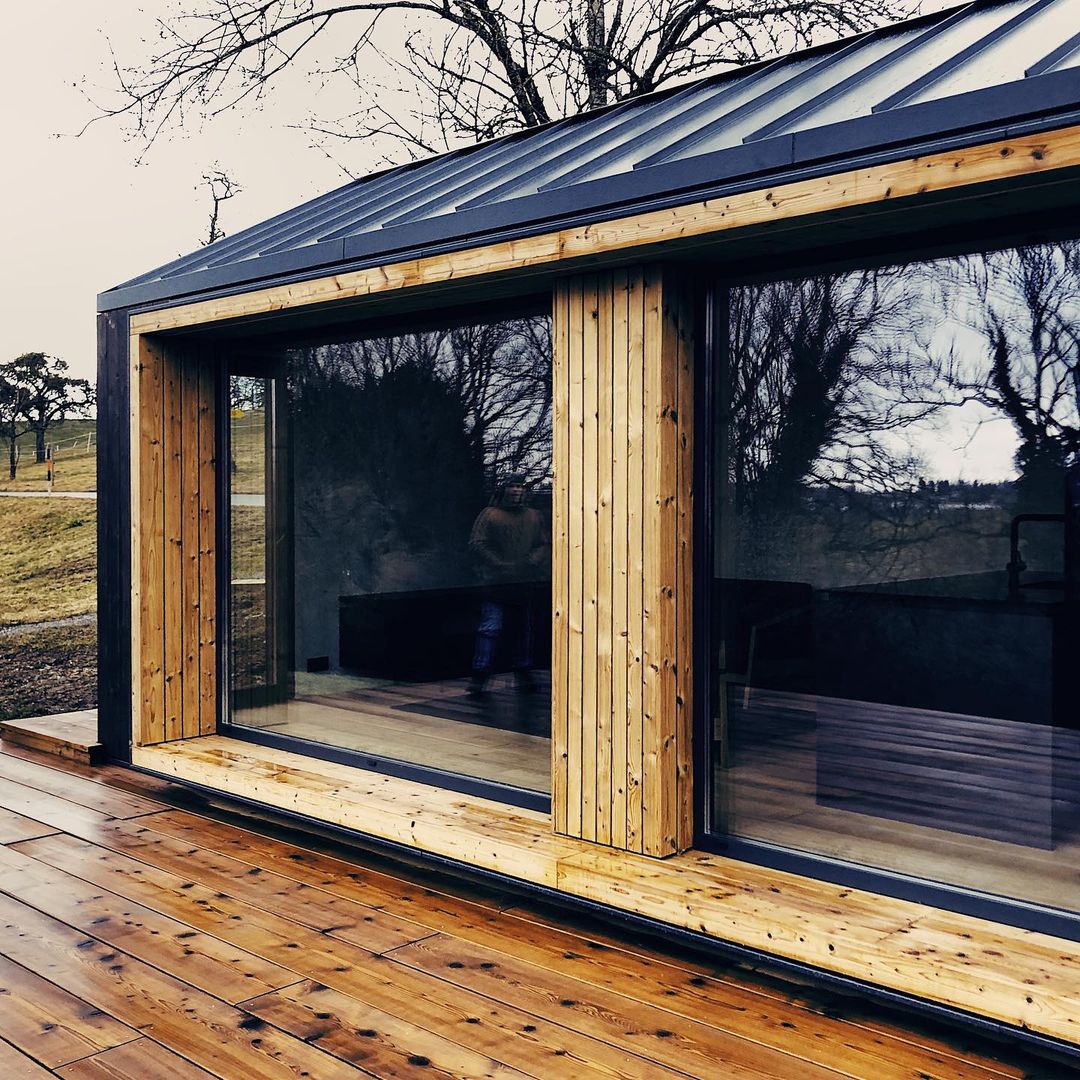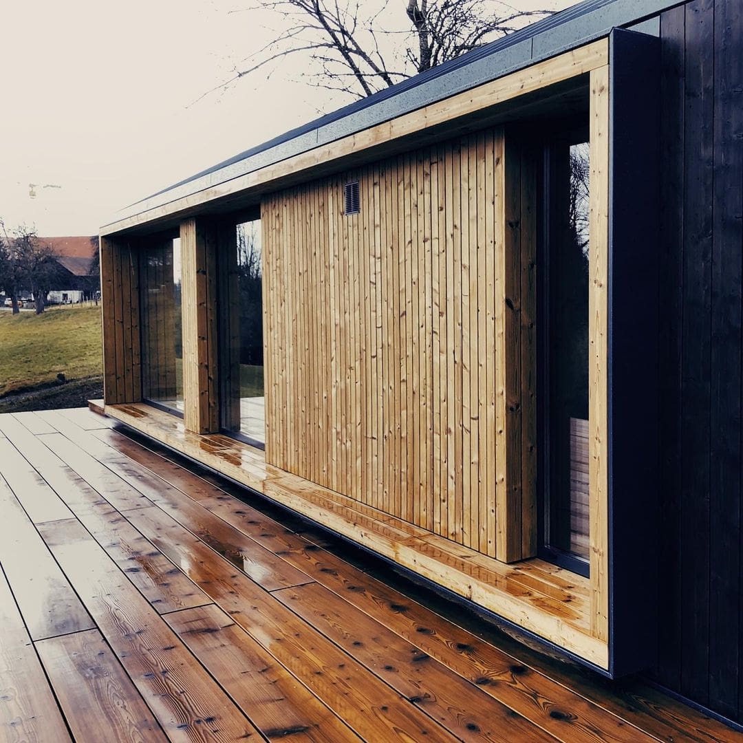Architektura została zbudowana w oparciu o technologię drewna klejonego warstwowo CLT (Cross Laminated Timber) – materiału o wyjątkowej trwałości, sztywności i właściwościach izolacyjnych. To rozwiązanie pozwala na szybki montaż, dużą elastyczność projektową i – co najważniejsze – znacznie mniejszy ślad węglowy niż w przypadku tradycyjnych technologii budowlanych. CLT w połączeniu z wysokowydajną izolacją oraz membraną dachową tworzy powłokę, która skutecznie chroni wnętrze przed zmiennymi warunkami atmosferycznymi, jednocześnie zachowując naturalny mikroklimat drewna.