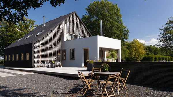 Architekci potraktowali tradycyjną stodołę jako inspirację do stworzenia nowej formy, bazującej na prostocie, funkcjonalności i wykorzystaniu tanich, lokalnych materiałów. Nacisk położono na przestrzeń, światło i klarowną geometrię bryły, co pozwoliło wprowadzić nowoczesne rozwiązania bez utraty naturalnego, wiejskiego kontekstu. W rezultacie powstała odważna interpretacja historycznej zabudowy – minimalistyczna, a jednocześnie ciepła, wpisująca się w krajobraz północnej Holandii.