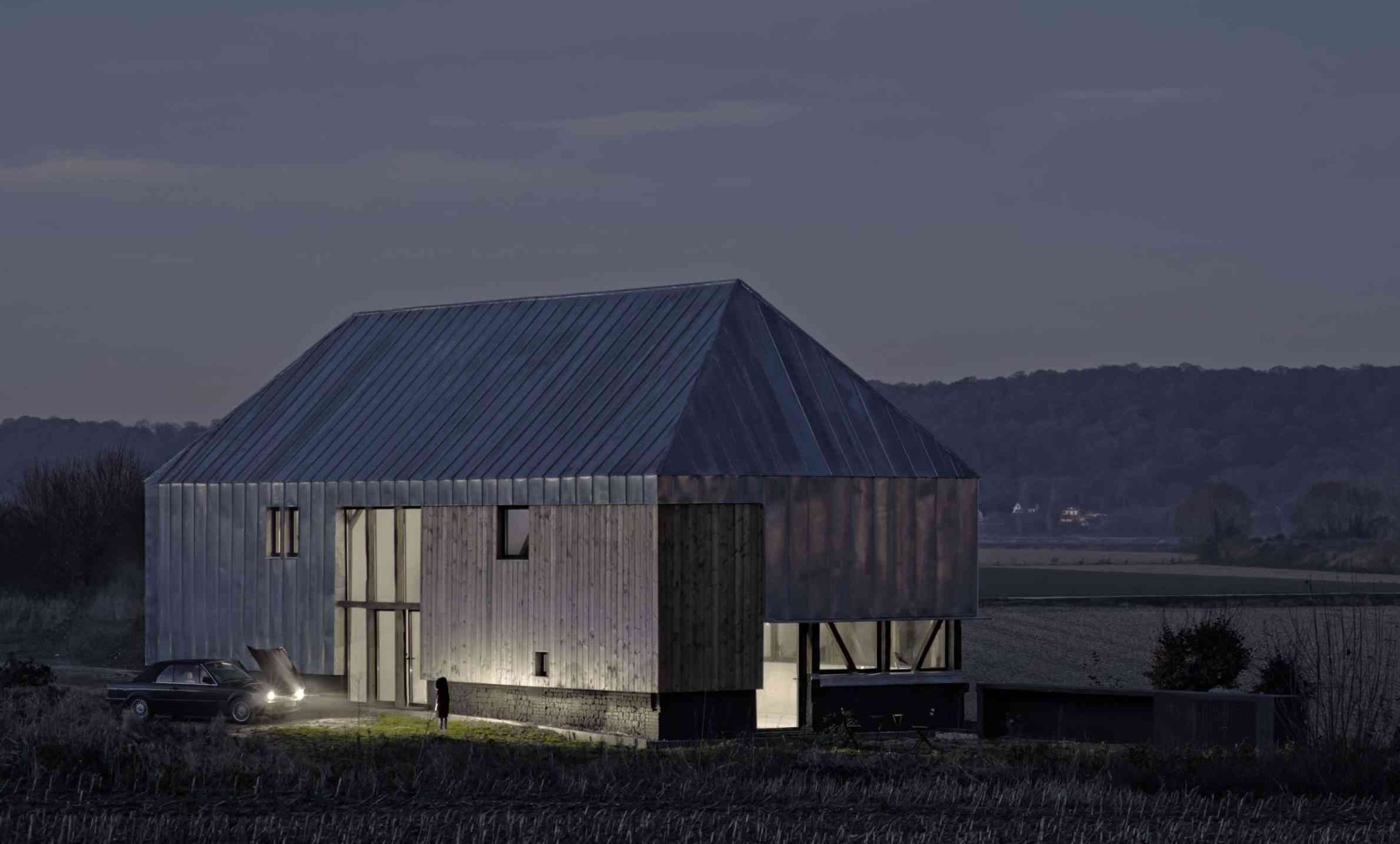 Antonin Ziegler, paryski architekt, przekształcił zniszczoną przez czas drewnianą stodołę w Notre-Dame-de-Bliquetuit we Francji w wyjątkowy dom jednorodzinny z prywatnym spa i basenem. Projekt opiera się na zachowaniu wiejskiego charakteru budynku oraz jego relacji z krajobrazem – łąkami i rzeką przepływającą w pobliżu. Zamiast odnawiać starą elewację, architekt zdecydował się na cynkowe płyty, które z czasem pokryją się naturalną patyną, wzmacniając wrażenie, że budynek „zawsze tam był”. Całość została zrealizowana przy budżecie 262 tysięcy euro, bez zbędnych detali i formalnego przepychu, zgodnie z ideą architektury oszczędnej i autentycznej.