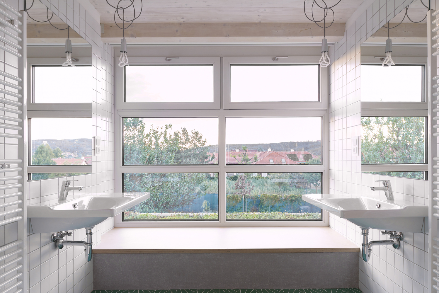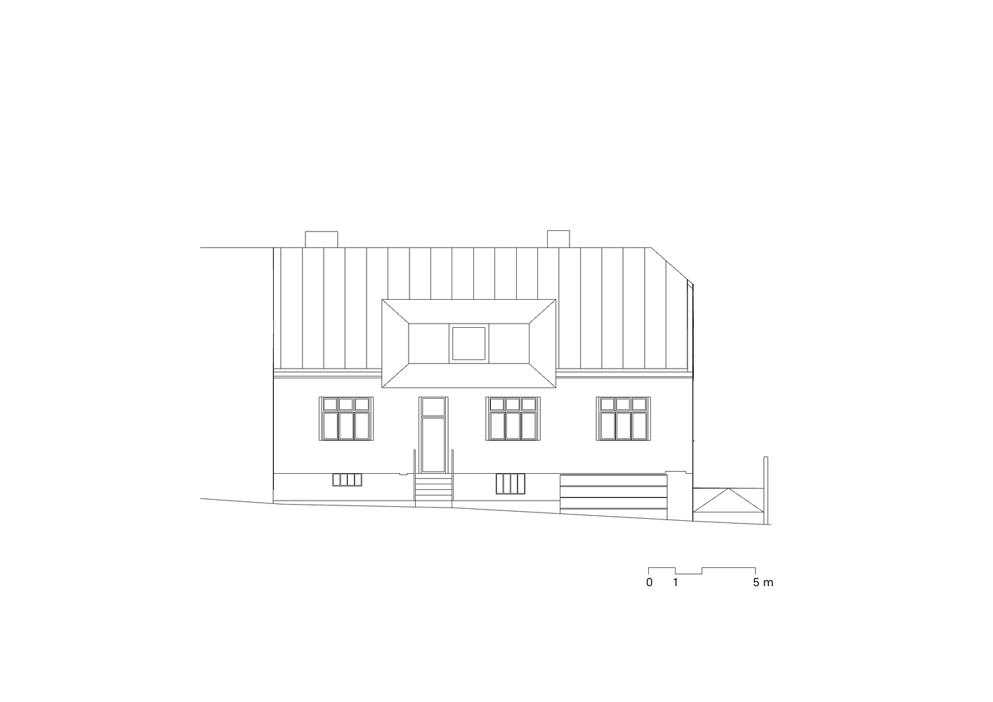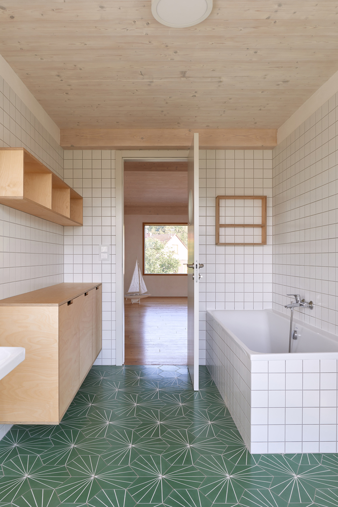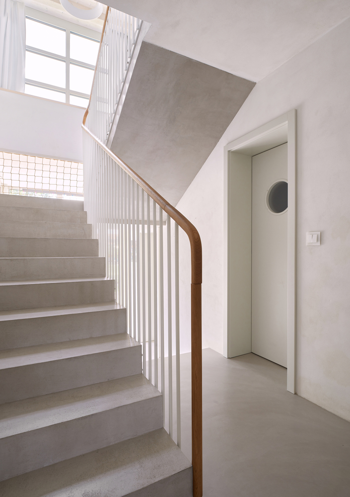 Zmiana układu domu wpłynęła także na jego wygląd zewnętrzny. Choć wnętrze przeszło gruntowną metamorfozę, architektura zachowała czytelność oryginalnych brył. Otwory okienne zostały zaprojektowane na wzór oryginalnych okien, a lukarna od strony ulicy, w której mieści się pokój zabaw, stała się nową wizytówką domu. Z kolei z dziedzińca dom otworzył się maksymalnie – do budynku przylega przeszklone pomieszczenie, którego motyw powtarza się również na piętrze, tworząc spójną estetykę i harmonijną przestrzeń.