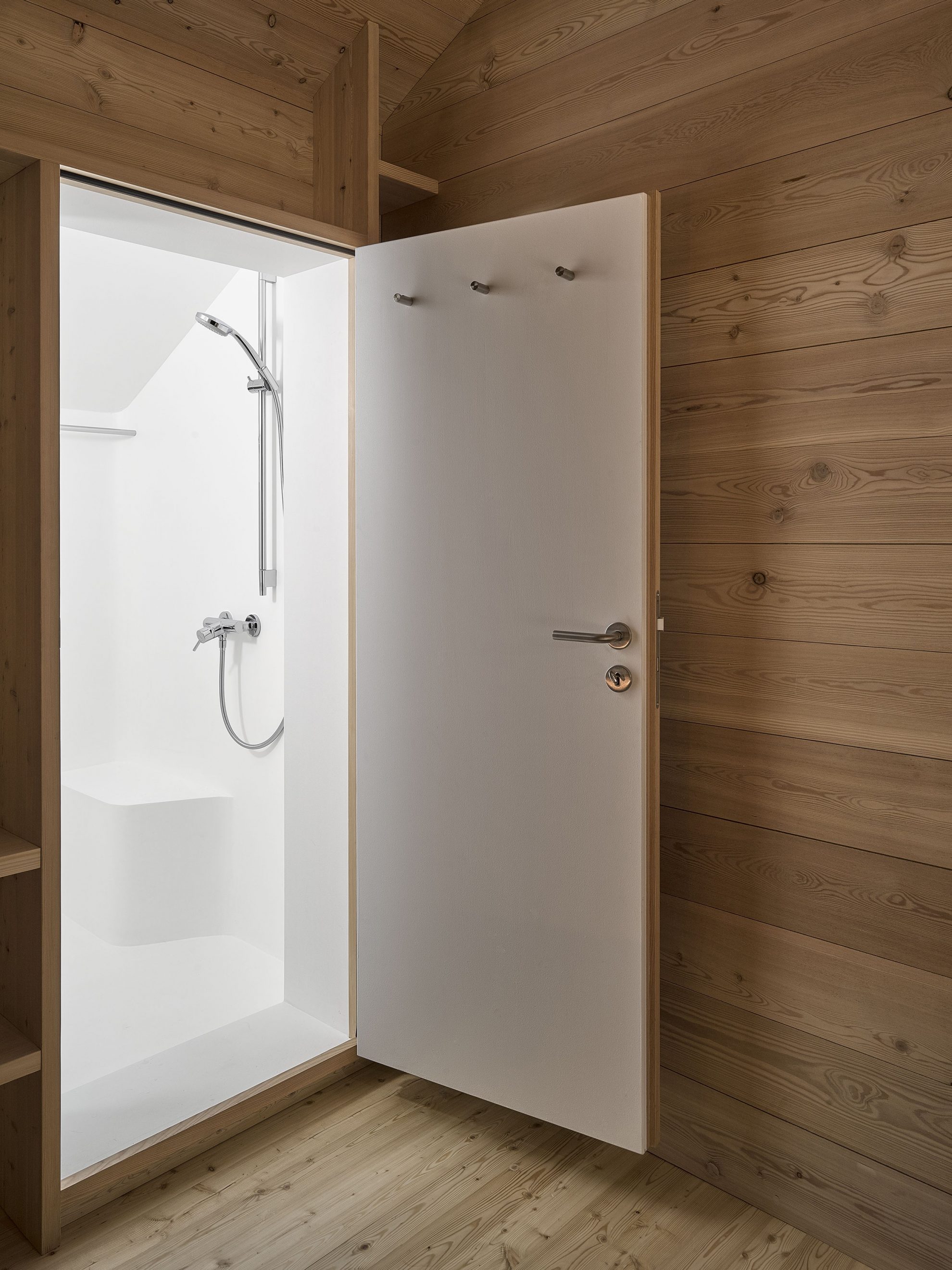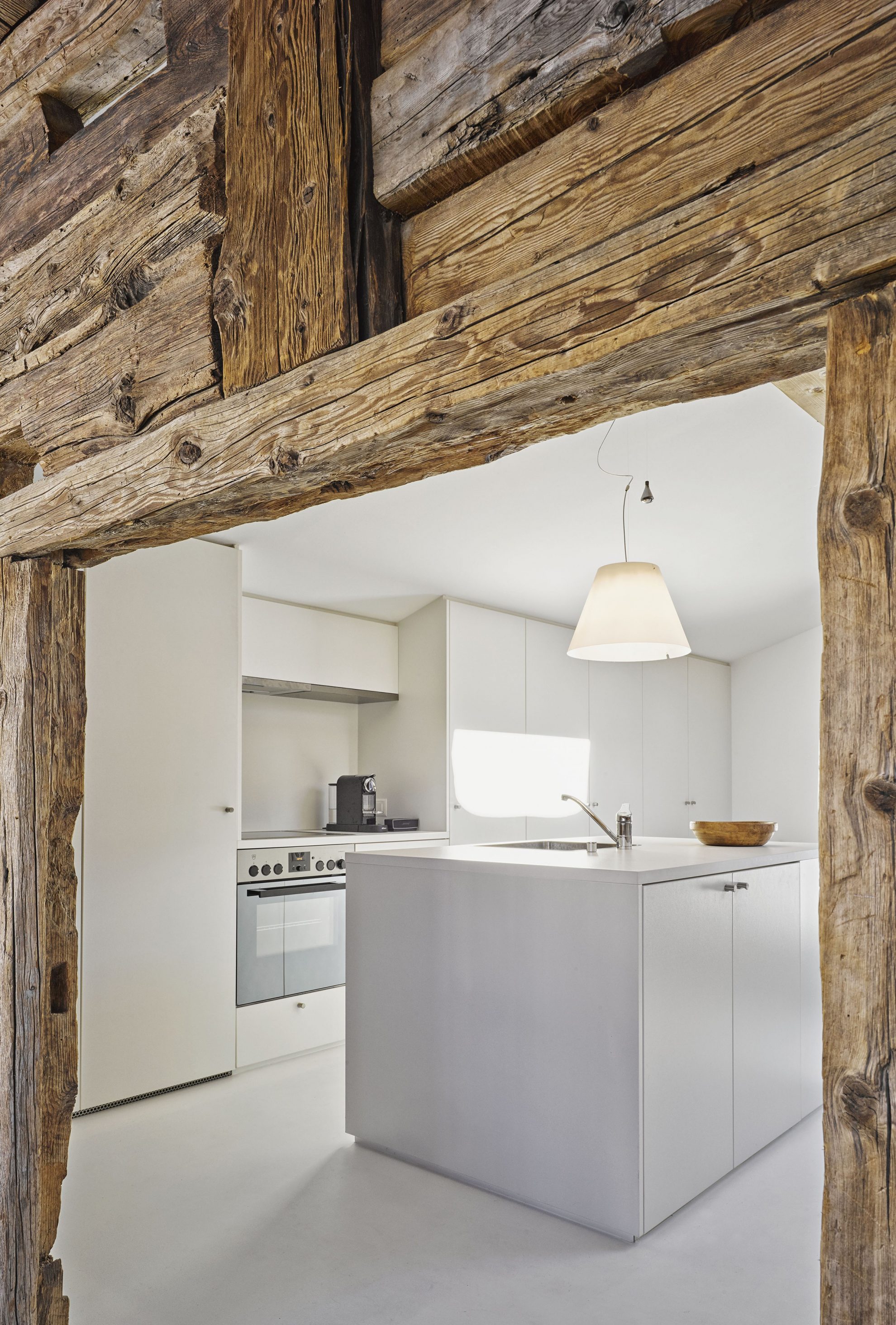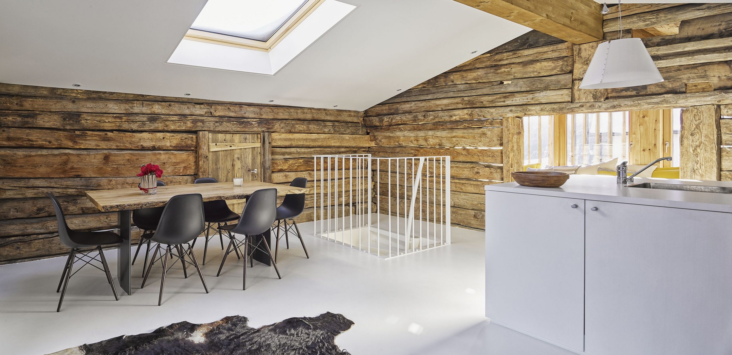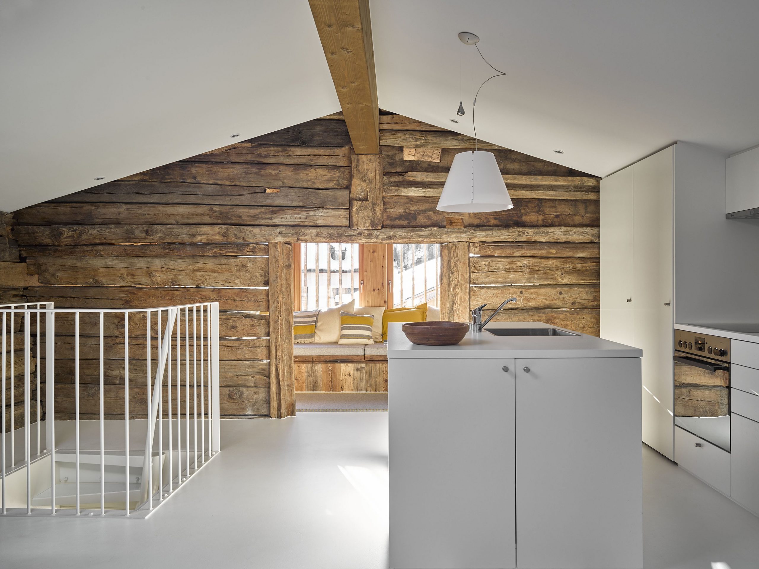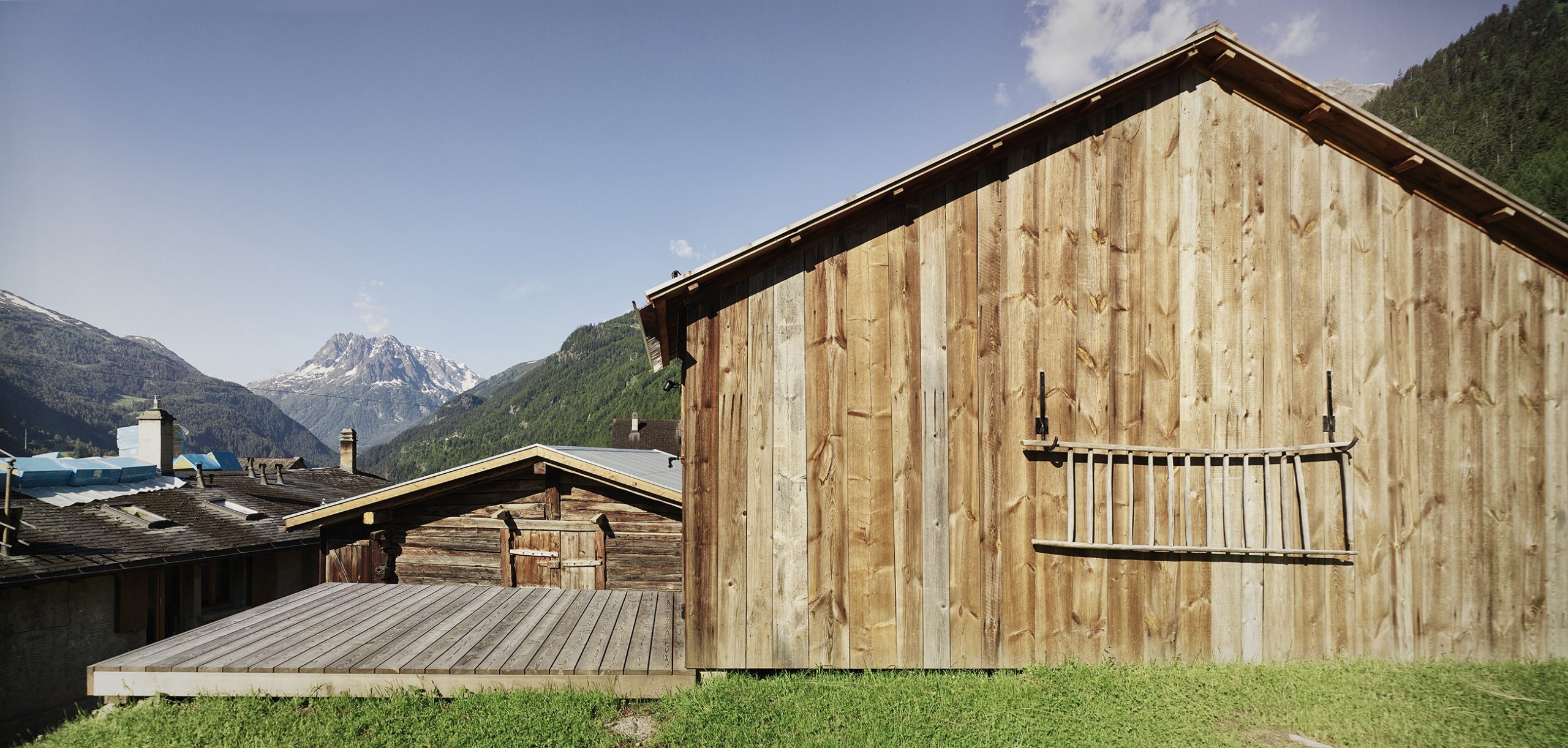 Renowacja obejmowała odrestaurowanie zrujnowanej stodoły, której historyczna bryła została zachowana w oryginalnej formie, nadając nowoczesnym przestrzeniom poczucie autentyczności. Dodatkowo, architekci zaprojektowali mały budynek uzupełniający, który pełni funkcję pokoju gościnnego. Połączenie starego i nowego tworzy spójną całość, oferując doskonałe miejsce na dom letniskowy w sercu alpejskiego krajobrazu.