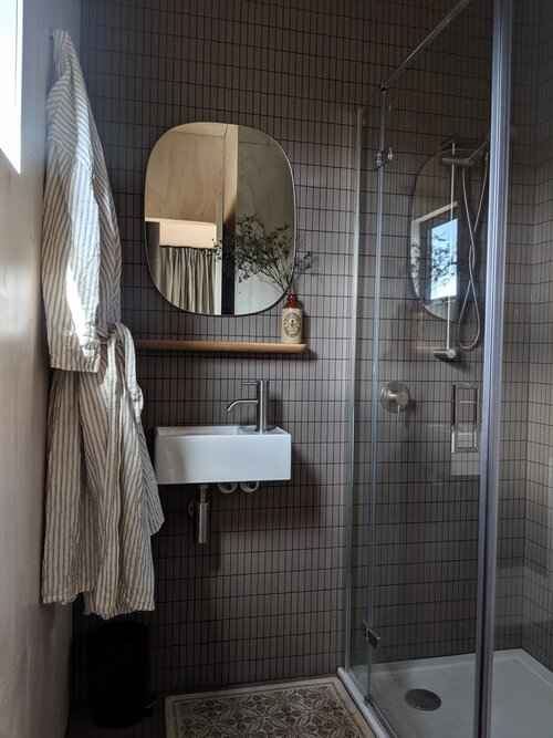 Drugi domek – The Dunstan Cabin – to ciemniejsza, bardziej wyrazista wersja swojej siostry. Zbudowana z opalanej deski drewnianej, zyskuje charakter i głębię. Wnętrza utrzymane w ciemnych tonach nadają jej nieco tajemniczego, nastrojowego klimatu, który doskonale kontrastuje z otaczającym, surowym krajobrazem. Wanna zewnętrzna umieszczona na dolnym tarasie pozwala zanurzyć się w naturze dosłownie i metaforycznie. Nowoczesna stodoła w tym wydaniu to połączenie prostoty formy, rzemieślniczej precyzji i świadomego projektowania, które celebruje naturę i ciszę.