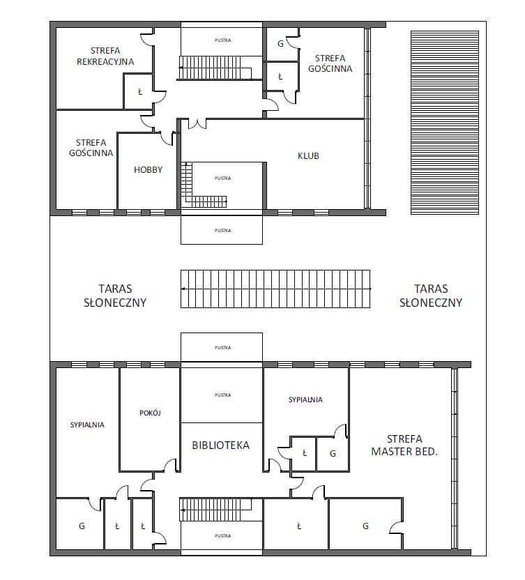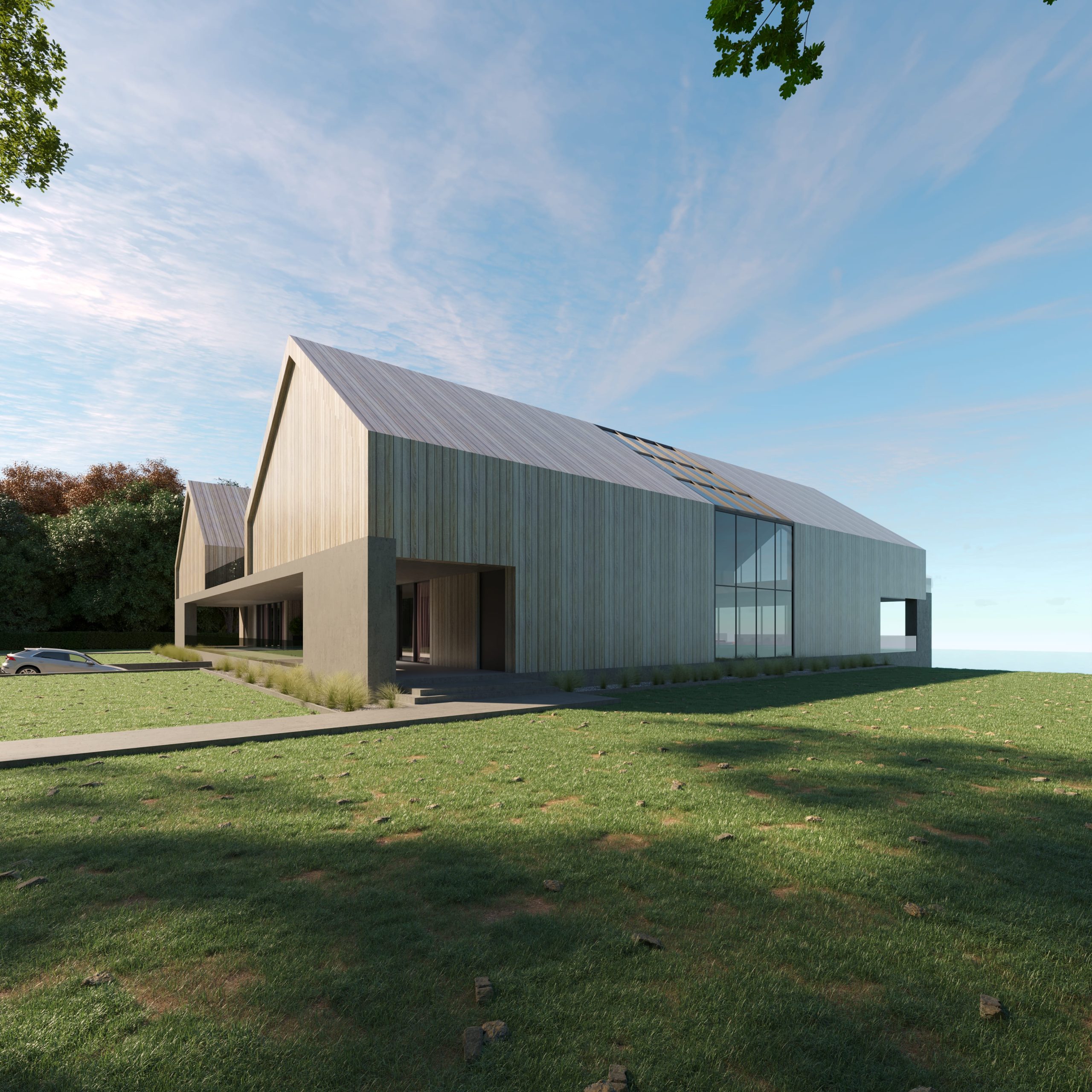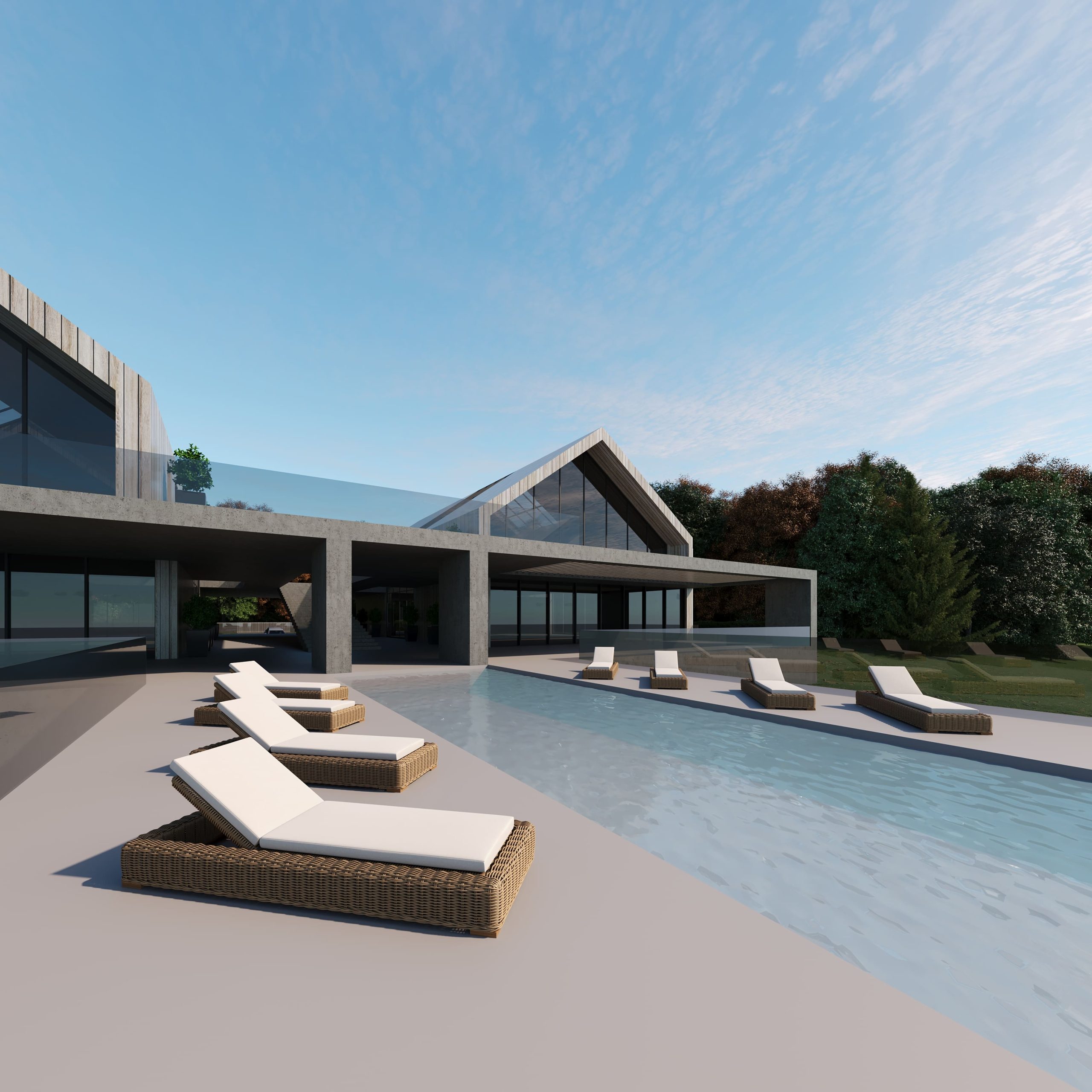 Projekt tej willi pokazuje, że forma nowoczesnej stodoły może zostać z powodzeniem przeskalowana do rangi luksusowej rezydencji. Dzięki świadomemu operowaniu bryłą, materiałem i krajobrazem powstał dom, który łączy monumentalność z klarownością układu i silnym związkiem z naturą. To architektura, w której przestrzeń, światło, woda i funkcja tworzą spójną, przemyślaną całość.