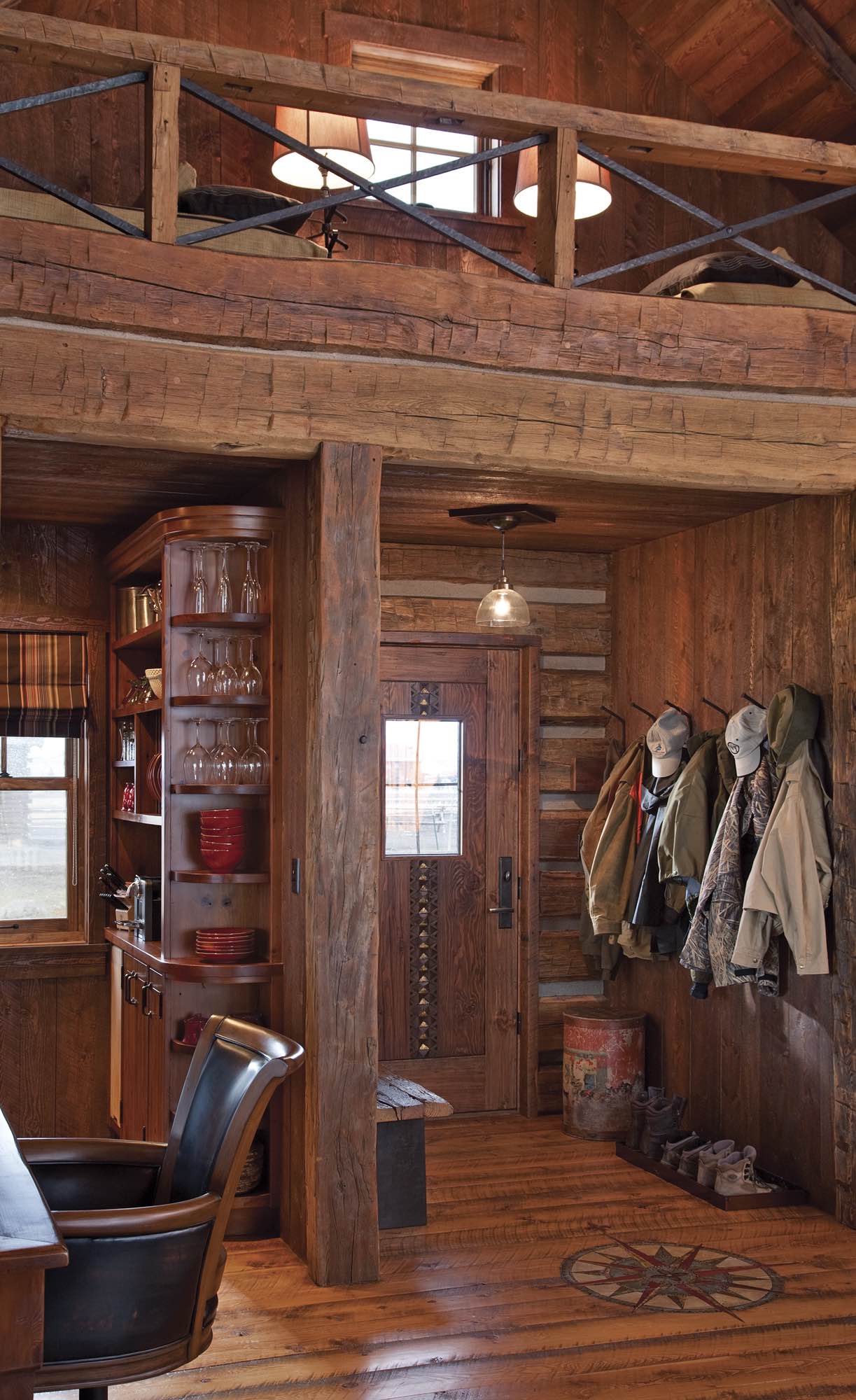Choć chata sprawia wrażenie tradycyjnej drewnianej konstrukcji, w rzeczywistości jest nowoczesnym budynkiem, zaprojektowanym z myślą o komforcie i trwałości. Konstrukcję wykonano z recyklingowanych materiałów, a ściany wypełniono izolacją z pianki poliuretanowej, co pozwala utrzymać idealną temperaturę nawet w surowym klimacie Montany.