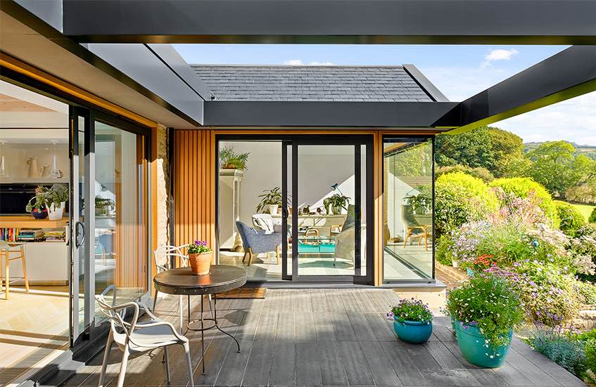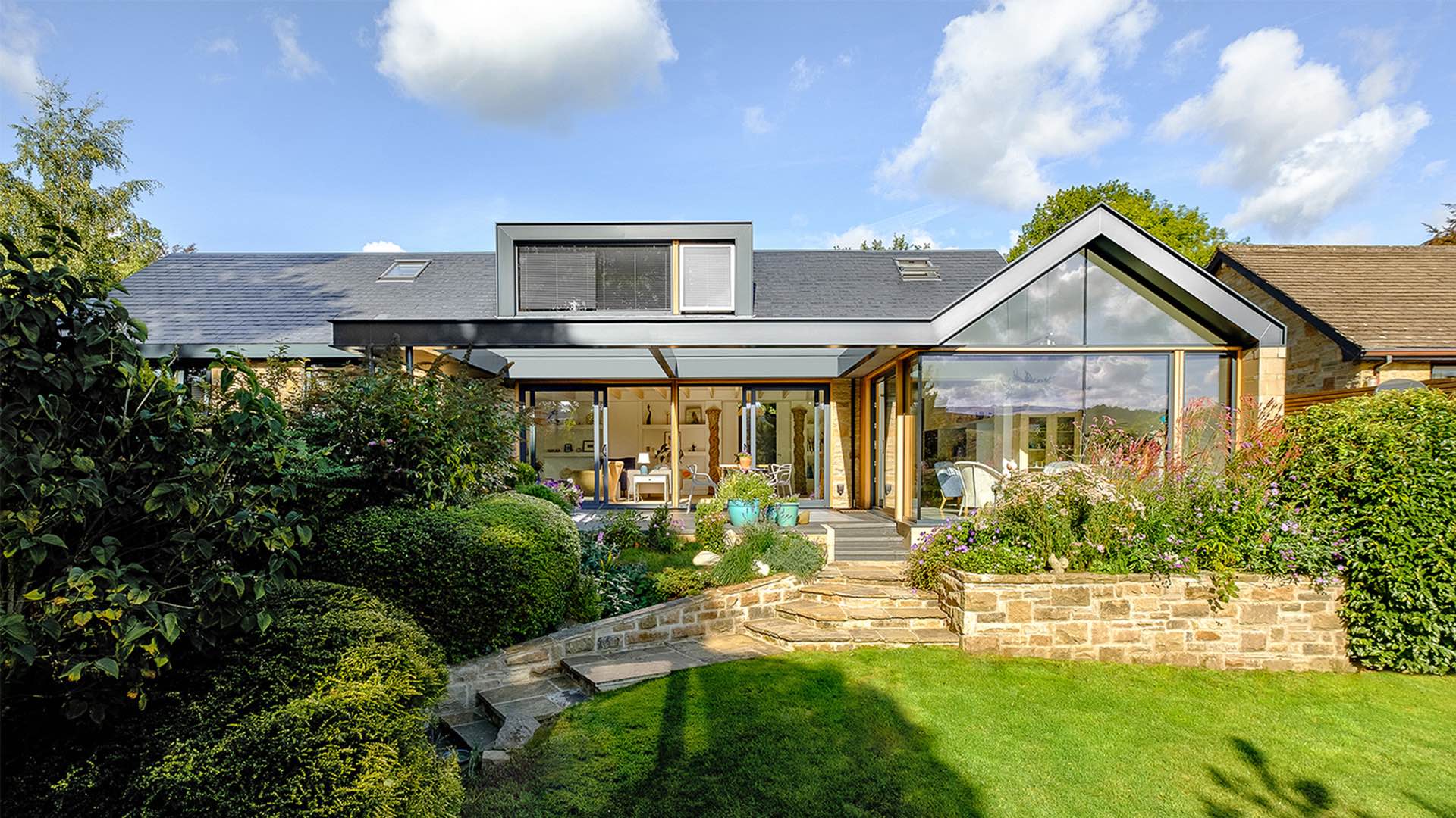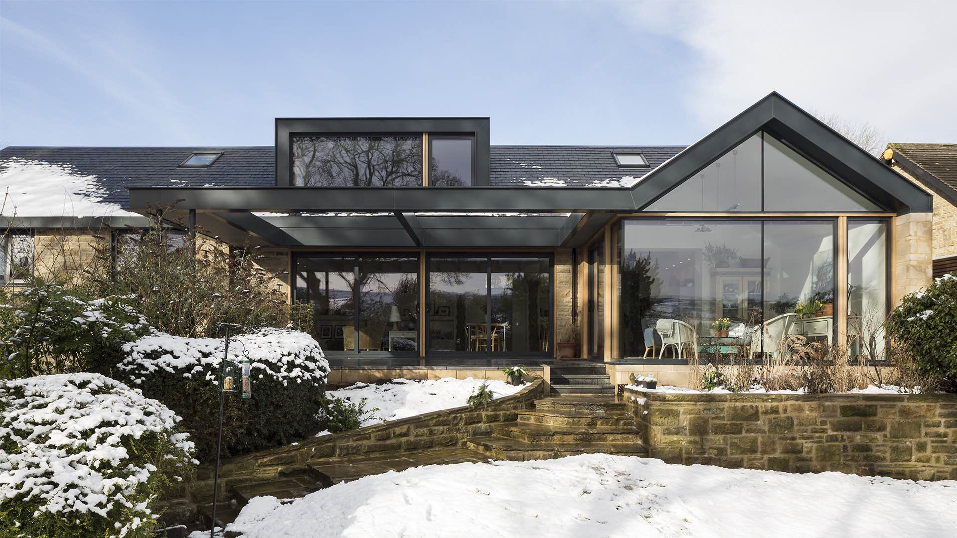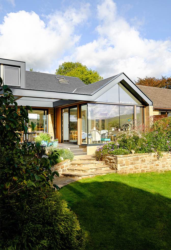 Projekt Eaton Drive pokazuje, jak architektura potrafi całkowicie odmienić niepozorny budynek. Dawny, źle zaprojektowany i słabo ocieplony bungalow z lat 70. został przekształcony w nowoczesny, przestronny dom rodzinny, który w pełni wykorzystuje malownicze widoki na posiadłość Chatsworth Estate w sercu Peak District.