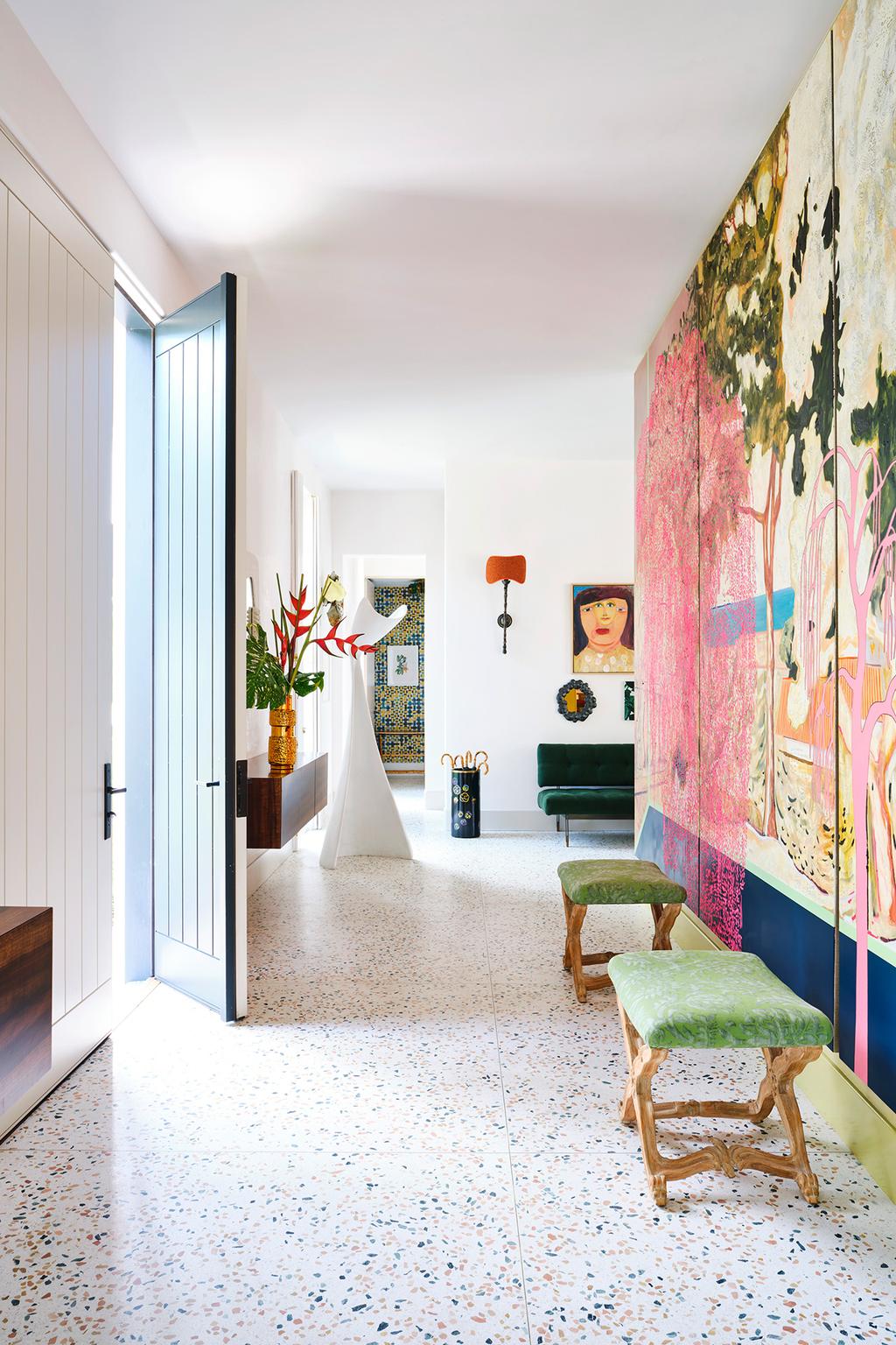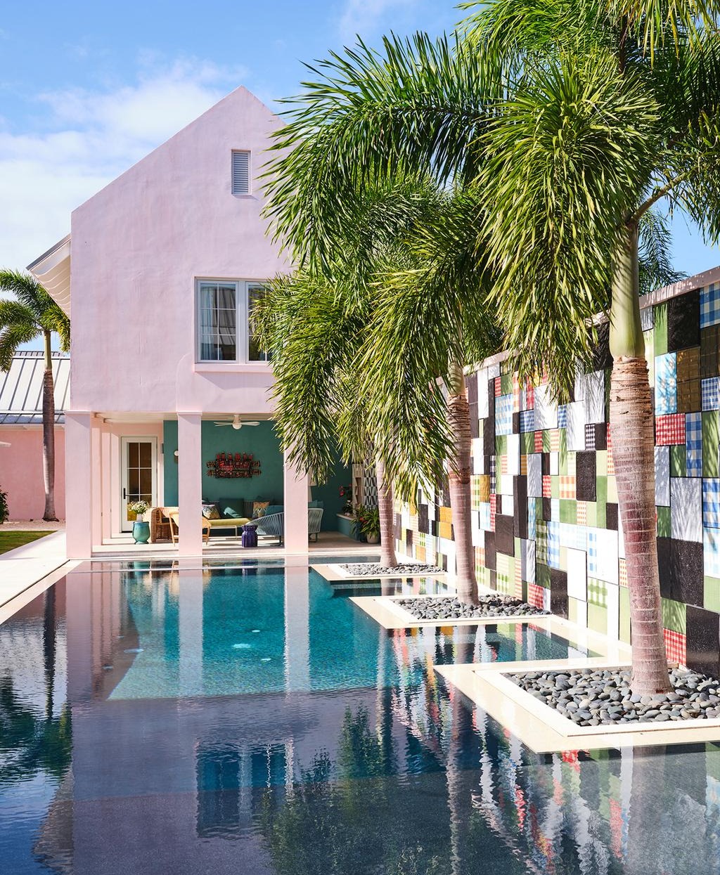 Dom, zbudowany na zamkniętym osiedlu Windsor na wybrzeżu skarbów Florydy, to podwójna struktura, która składa się z kilku przestronnych budynków. Projektowanie otwartej przestrzeni w połączeniu z dużym dziedzińcem, basenem i wieloma miejscami do wypoczynku, miało na celu zapewnienie rodzinie przestrzeni do wspólnego spędzania czasu. Dzięki długoletniej współpracy z klientami, Hamilton była w stanie wprowadzić kolorystykę, która w pełni odzwierciedlała ich gust oraz styl życia, korzystając z inspiracji z kolekcji dzieł sztuki.
