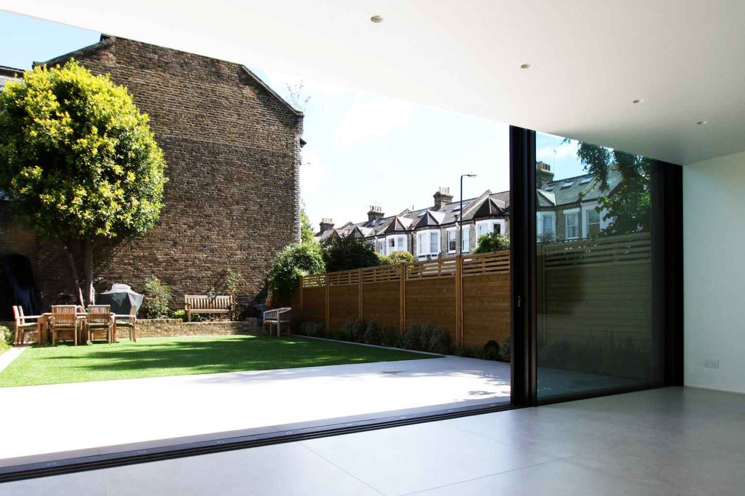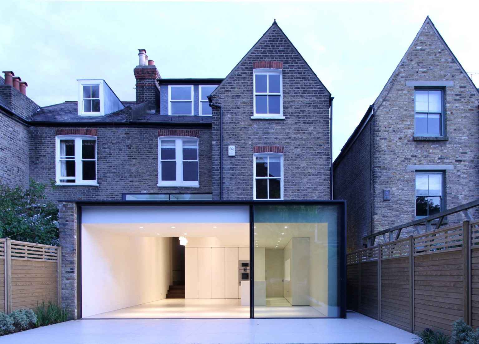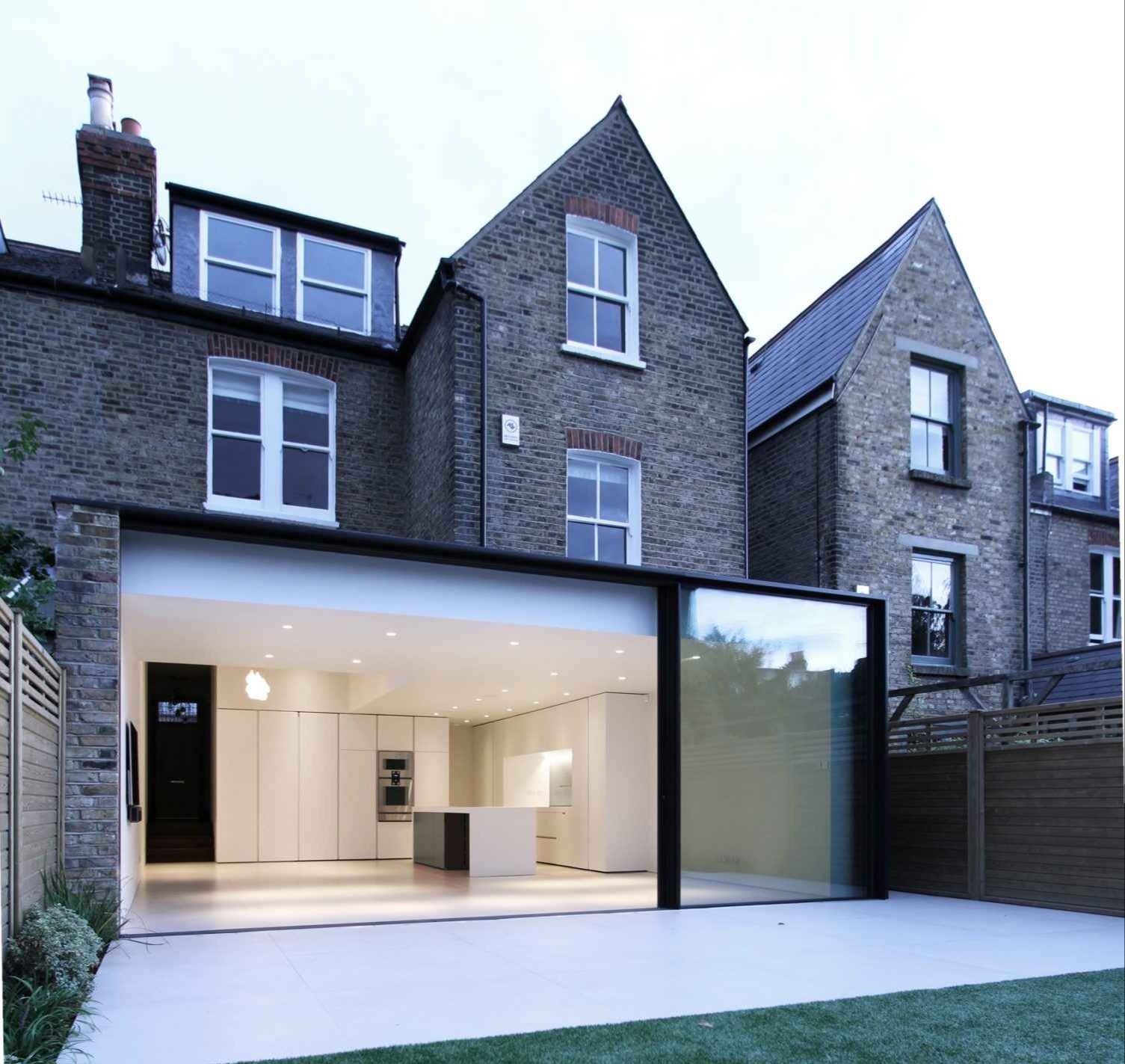 W sercu Londynu, na tyłach zabytkowej ceglanej kamienicy, powstała nowoczesna dobudówka, która odważnie łączy przeszłość z teraźniejszością. Projekt zakładał otwarcie wnętrza na ogród oraz maksymalne doświetlenie przestrzeni dziennej. Zastosowanie dużych przeszkleń oraz betonu architektonicznego pozwoliło stworzyć lekki, ale wyrazisty kontrast z historyczną bryłą budynku. To przykład, jak współczesna architektura może harmonijnie współistnieć z dziedzictwem przeszłości, nie naruszając jego charakteru.