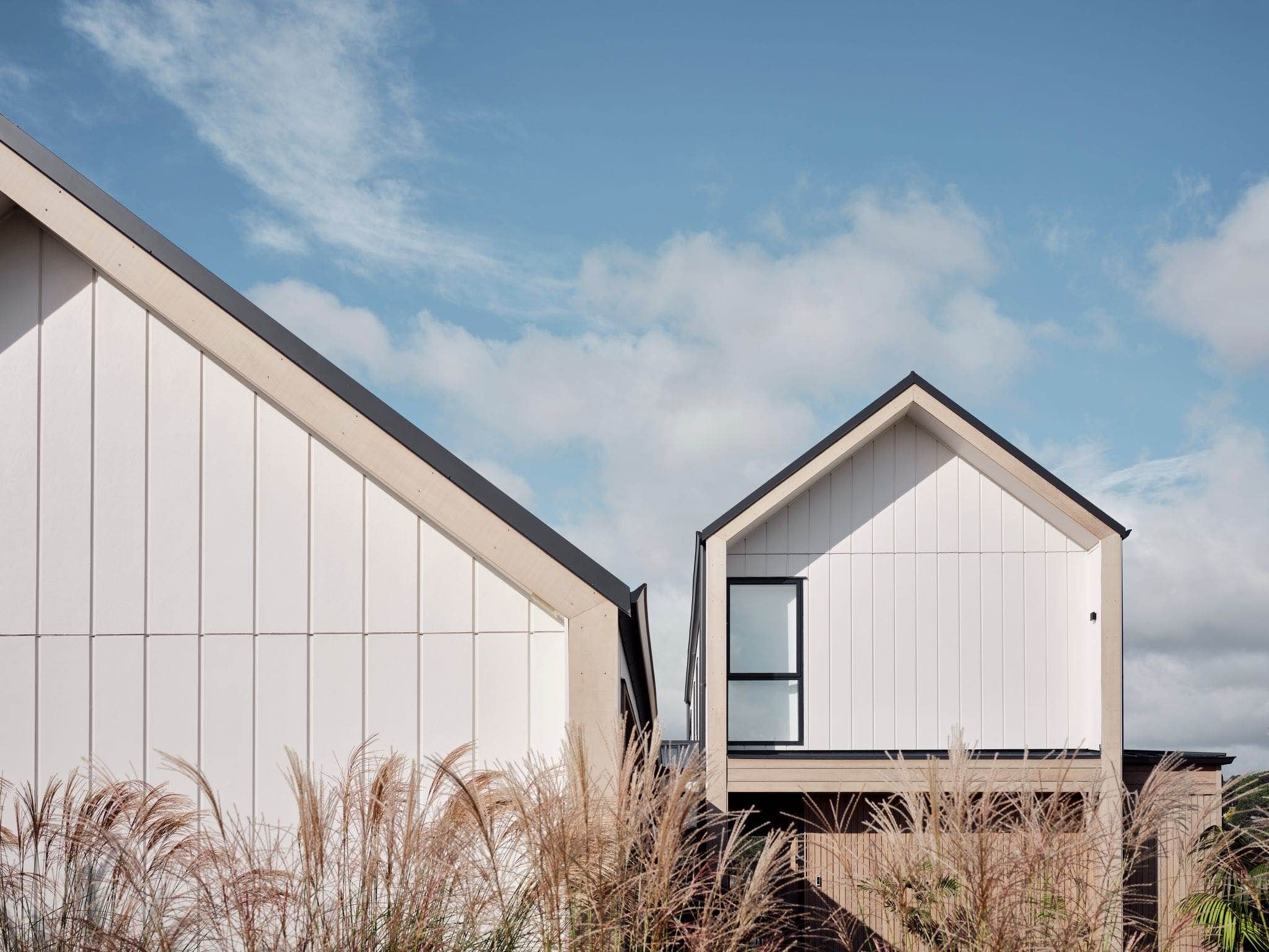 Projekt Twin Peaks House autorstwa PXA Architects to współczesna interpretacja australijskiego minimalizmu – dom, który łączy prostotę formy z wyrazistym charakterem. Położony w nowoczesnej dzielnicy o otwartym krajobrazie, budynek wyróżnia się dynamiczną geometrią dwóch połączonych brył o spadzistych dachach, których układ przypomina sylwetki górskich szczytów – stąd jego nazwa.