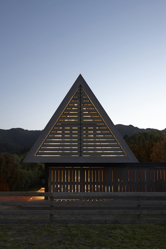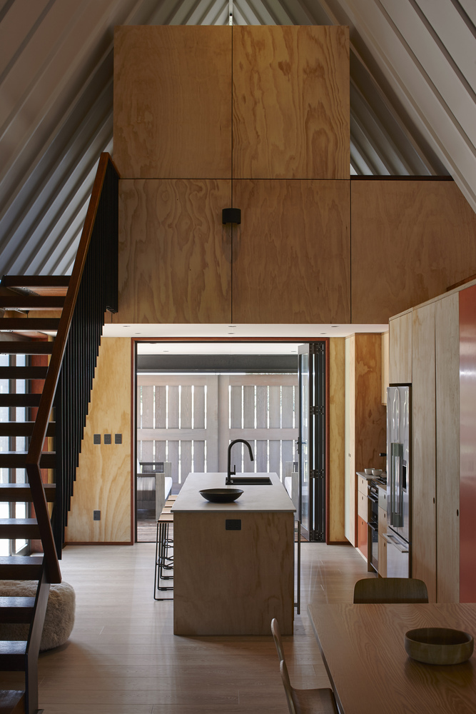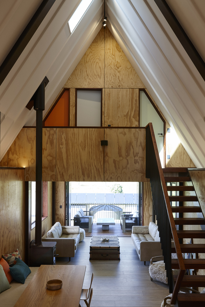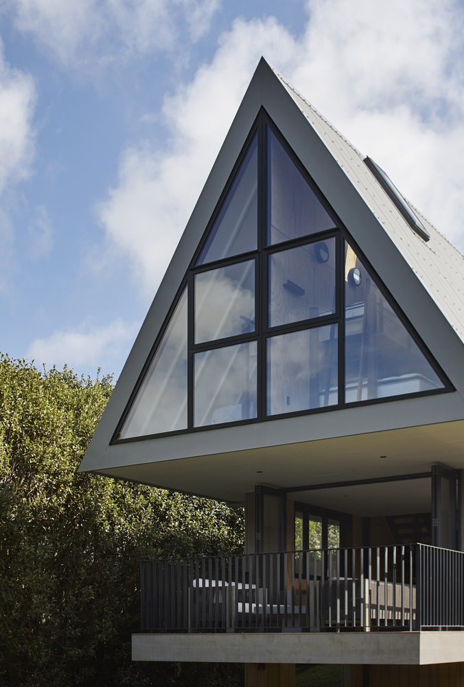 Na wybrzeżu, w duchu tradycyjnych pacific fale lub prostego whare, powstał projekt domku wypoczynkowego o minimalistycznym charakterze. Jego sylwetka, przypominająca znak nawigacyjny, góruje nad wydmą, symbolicznie prowadząc właścicieli do domu.