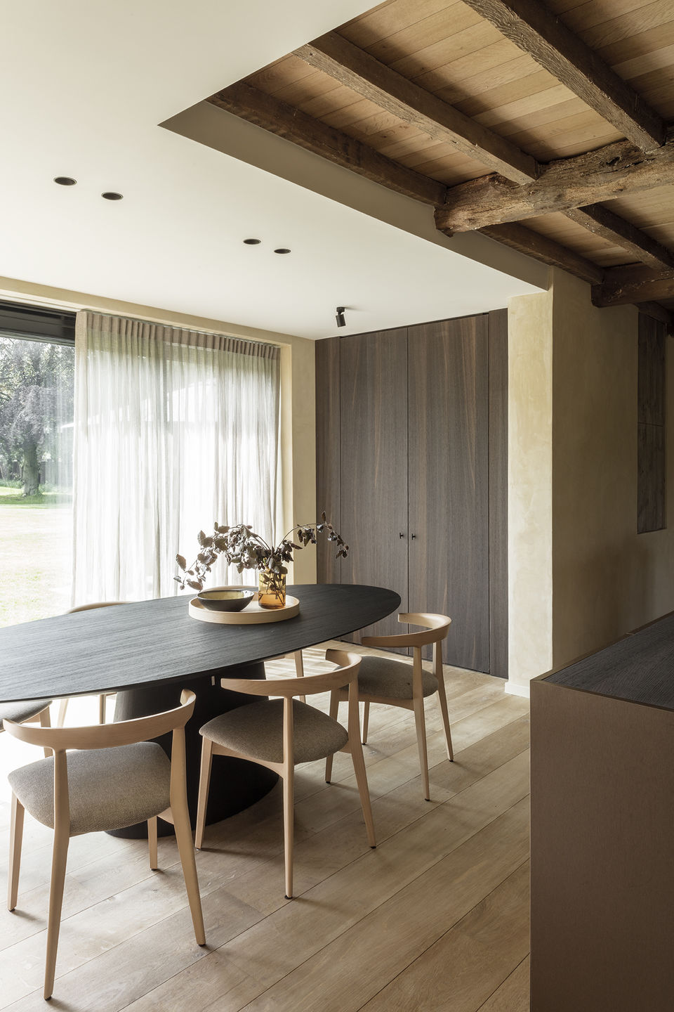 Renowacja tego domu wiejskiego miała na celu przywrócenie jego pierwotnego uroku i wprowadzenie nowoczesnych udogodnień. Projekt autorstwa JUMA architects łączy tradycyjne materiały z nowoczesną funkcjonalnością, zachowując rustykalny charakter budynku.