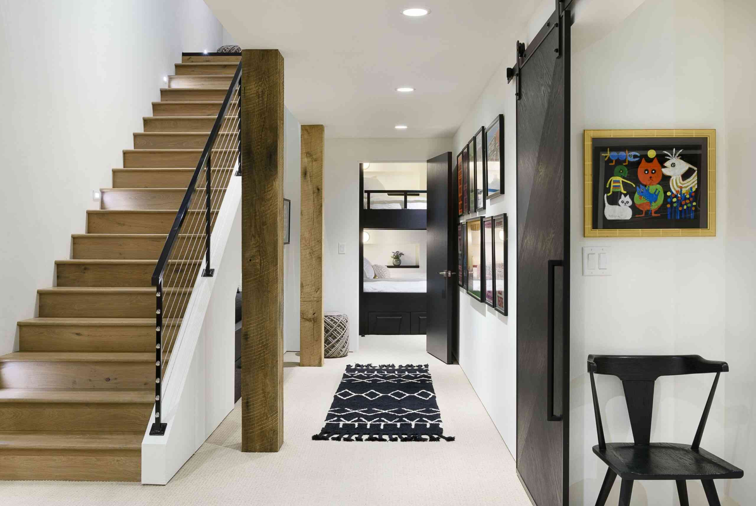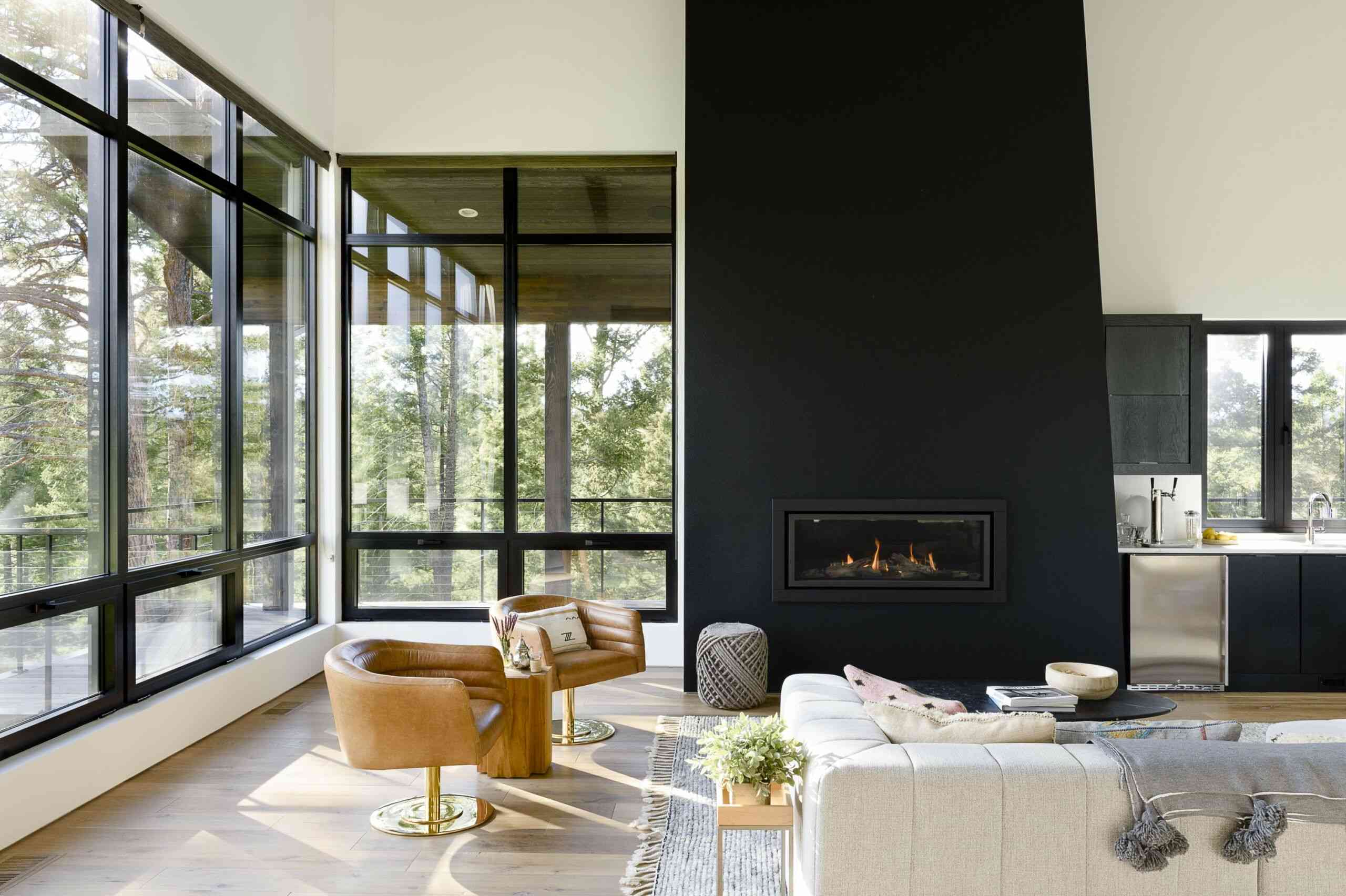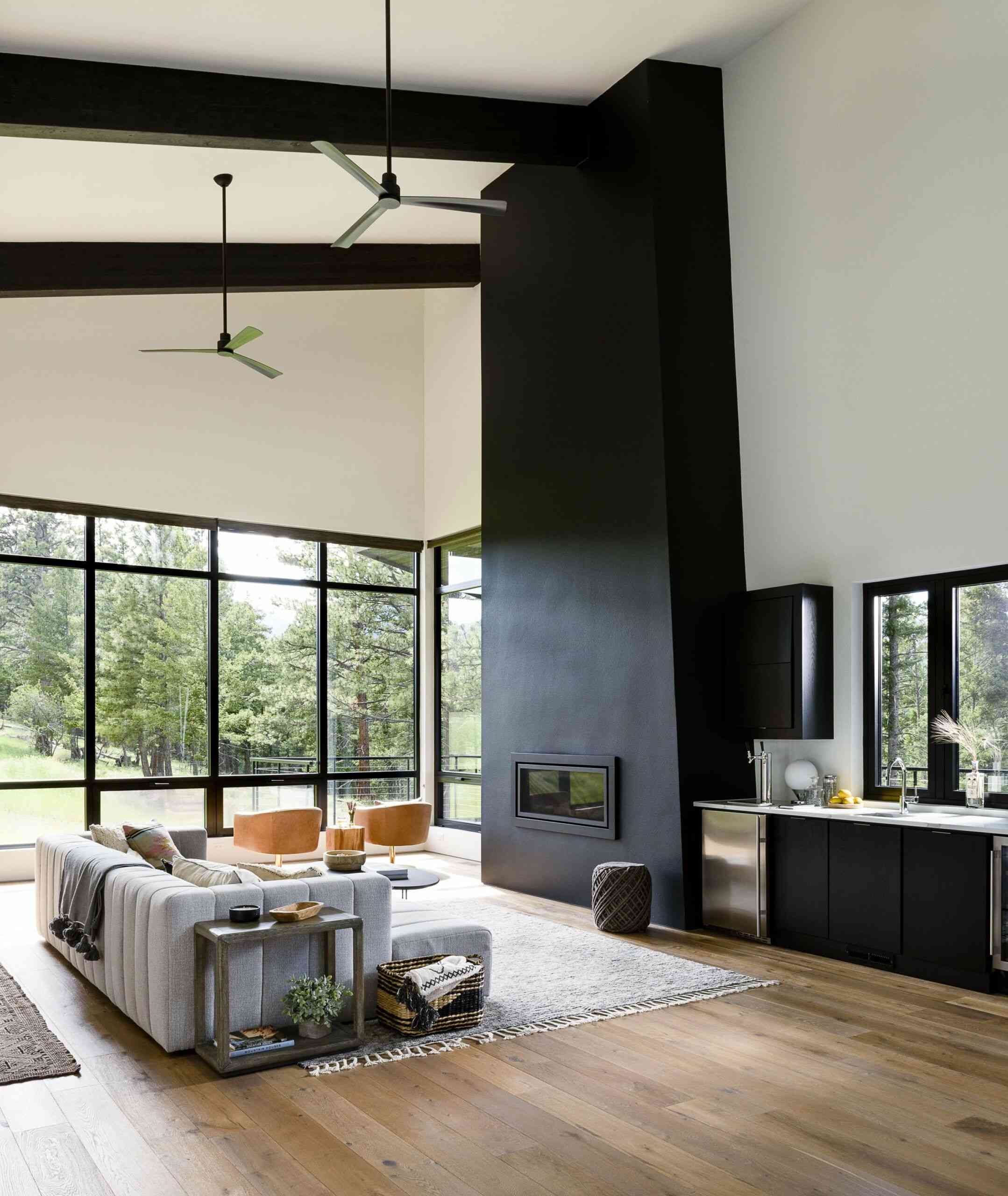 Choć bryła domu od frontu wygląda skromnie i minimalistycznie – przypominając nieco nowoczesną stodołę w górskim wydaniu – wnętrze zaskakuje przestronnością i nowoczesnością. Duże przeszklenia, surowe drewno z odzysku, wysokie sufity i kominek od podłogi po sufit tworzą wrażenie otwartości i przytulności jednocześnie. Wnętrze zostało zaprojektowane jako tło dla dzieł sztuki i muzycznych plakatów, co odzwierciedla artystyczną duszę właścicieli. Paleta materiałów oparta na białym dębie, naturalnym kamieniu i stonowanych barwach wprowadza harmonię i spokój. To dom, który łączy estetykę górskiego schronienia z nowoczesnym komfortem, doskonale wpisując się w współczesne podejście do architektury – prostej, zrównoważonej i pełnej szacunku do przyrody.