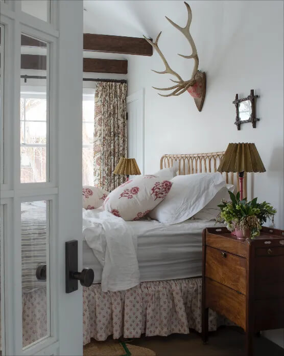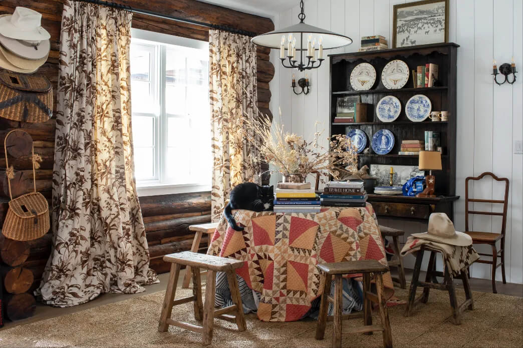 Głównym celem remontu było zachowanie oryginalnego charakteru domku z bali, ale wprowadzenie elementów komfortowego wnętrza inspirowanego francuskim stylem. Emily postawiła na oryginalne drewno, które połączono z tapetami, tkaninami i rustykalnymi meblami. Duet wybrał się nawet do Paryża, aby znaleźć unikalne dodatki i antyki na lokalnych pchlich targach. Dzięki temu w domku zyskała miejsce subtelna kolorystyka, wzorzyste tkaniny i eleganckie oświetlenie, które kontrastują z surowością drewna.