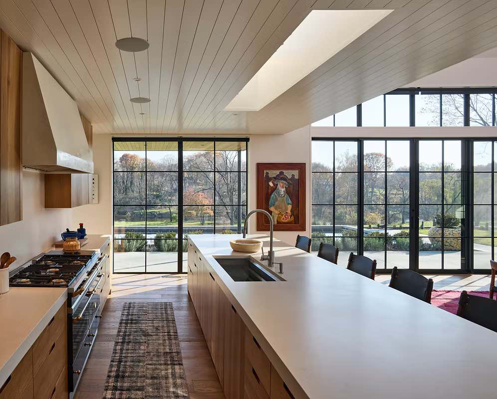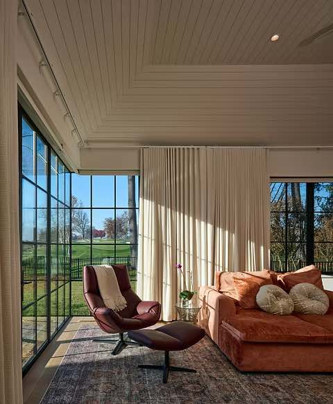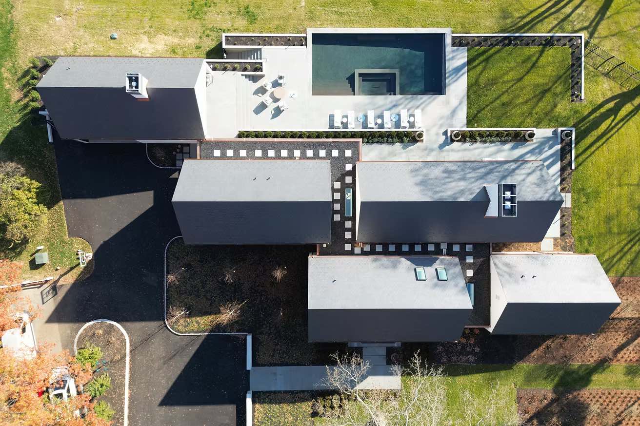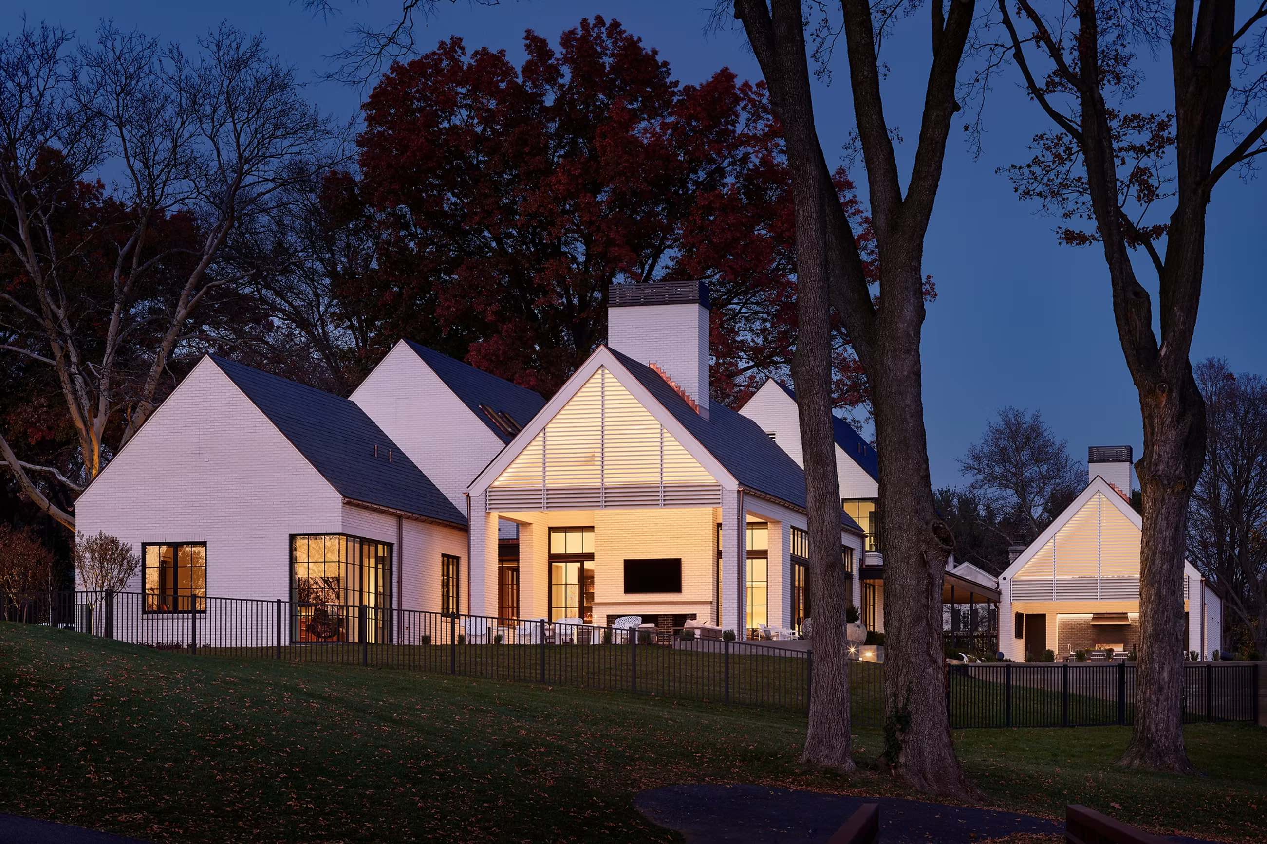 Położony na malowniczych obrzeżach Lancaster Country Club i nad brzegiem rzeki Conestoga, dom Five Gables harmonijnie wtapia się w naturalne otoczenie, stając się jednocześnie eleganckim punktem orientacyjnym w krajobrazie. Budynek o powierzchni 790 m² zastąpił dawny parterowy dom, odpowiadając na rosnące potrzeby rodziny, przy jednoczesnym poszanowaniu charakteru miejsca i jego walorów przyrodniczych.