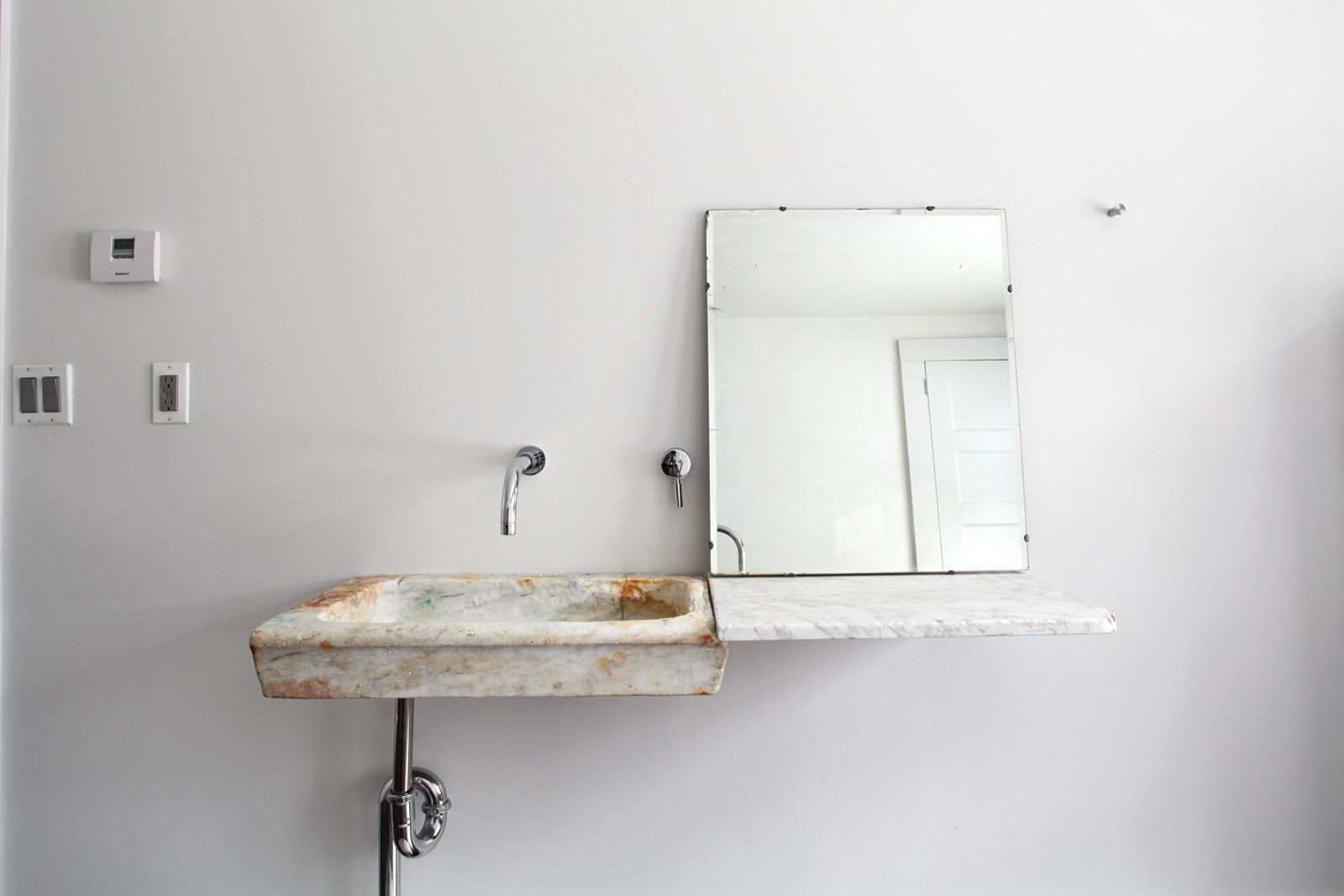 Givone, który kiedyś zajmował się tworzeniem haseł reklamowych, twierdzi, że swą nową ścieżkę kariery zawdzięcza właścicielowi budynku, który wyrzucił go z wynajmowanego studia, co zmusiło go do kupna jego pierwszego domu. I tak rozpoczęła się jego nowa przygoda, której bohaterem stał się najpierw zniszczony dom szeregowy, zbudowany w 1882 roku. Później trafiał na kolejne budynki, w których na pierwszy rzut oka trudno było znaleźć coś godnego uwagi, ale on z pasją zaczynał pracę przywracając je wszystkie do życia. W końcu trafił na niebieskie zabudowania, które w okolicy nie cieszyły się najlepszą sławą. Ten projekt o nazwie „Floating Farmhouse” jest ukoronowaniem jego wcześniejszych doświadczeń i doskonale pokazuje, że można wprowadzić przeszłość do teraźniejszości, urządzając jednocześnie piękne i stylowe miejsce do życia. W okresie kryzysu gospodarczego w 2008 roku Givone nie chciał zawieszać swej dotychczasowej działalności i postanowił skupić się na udoskonalaniu materiałów. Zadbał np. o  duże przeszklenia w ścianie przybudówce. Przez trzy lata wszystkie potrzebne elementy stalowe były poddawane nie tylko różnym warunkom pogodowym, ale też specjalnym kąpielom w kwasie. Dzięki temu udało się uzyskać wyjątkowe materiały, które później zostały wykorzystane w różnych miejscach w domu. W tym czasie przeprowadził też „prace wykopaliskowe” w środku domu, co skończyło się znalezieniem wielu ciekawych elementów.