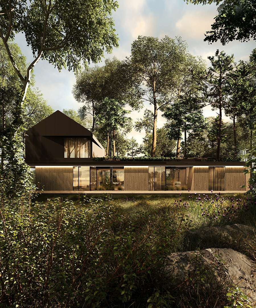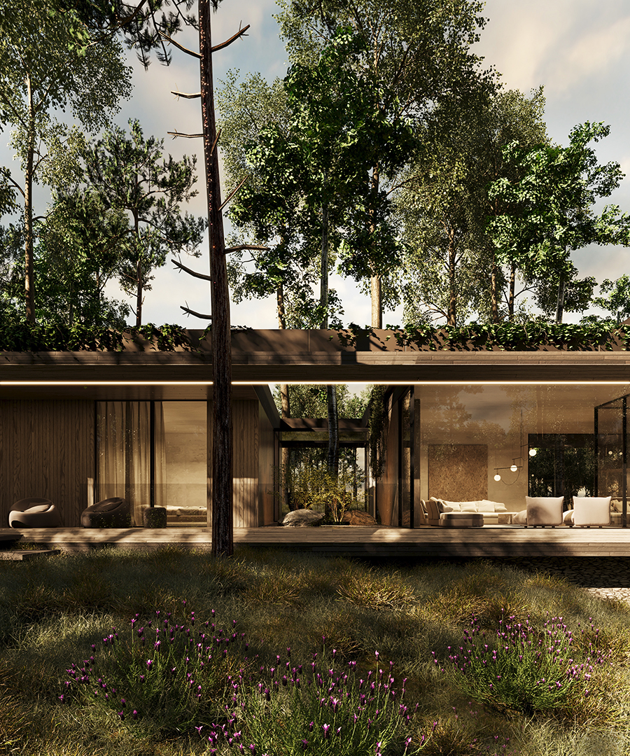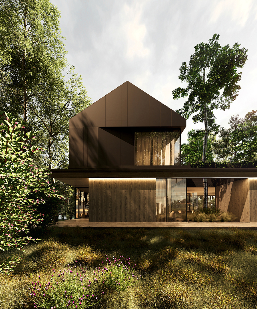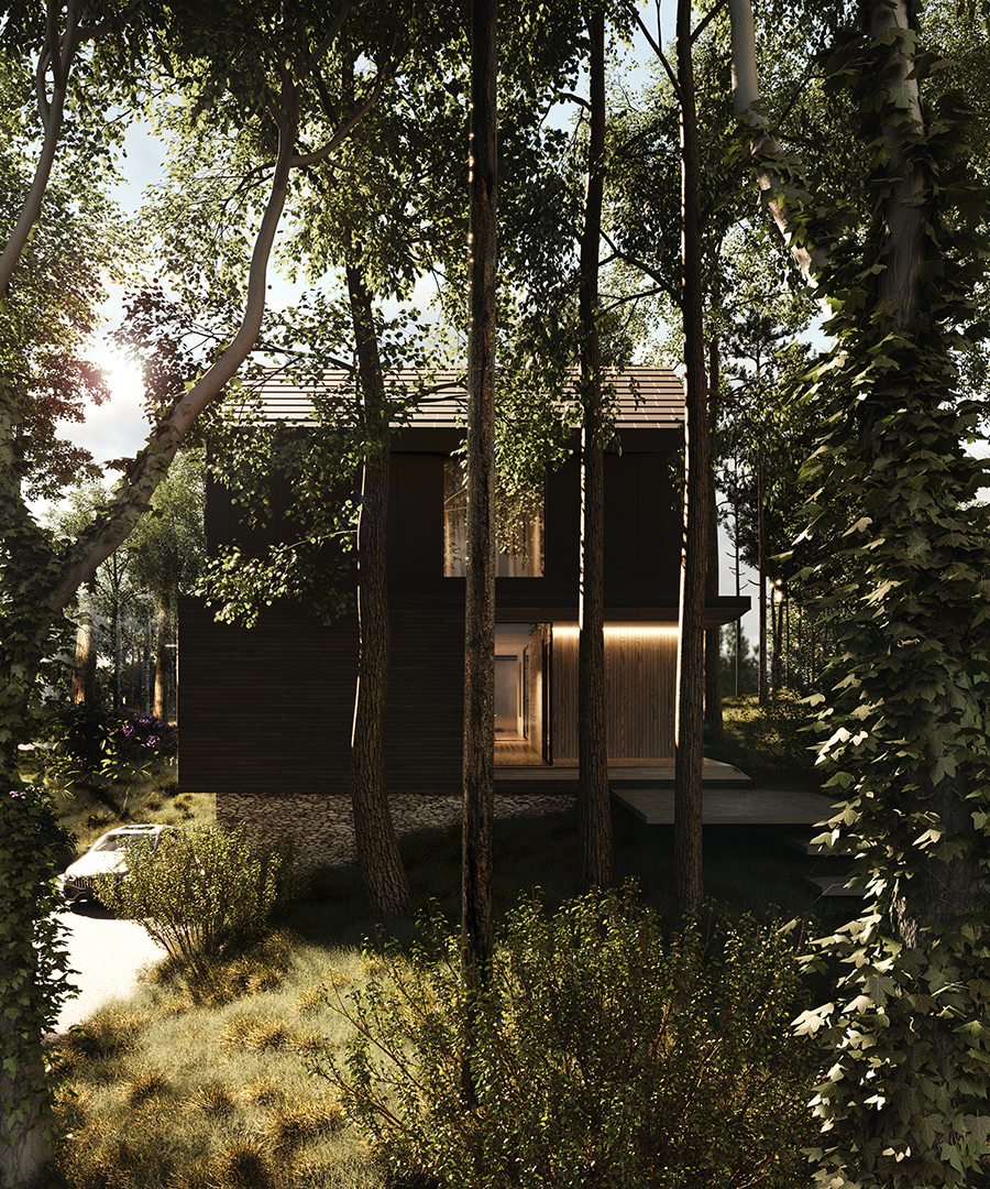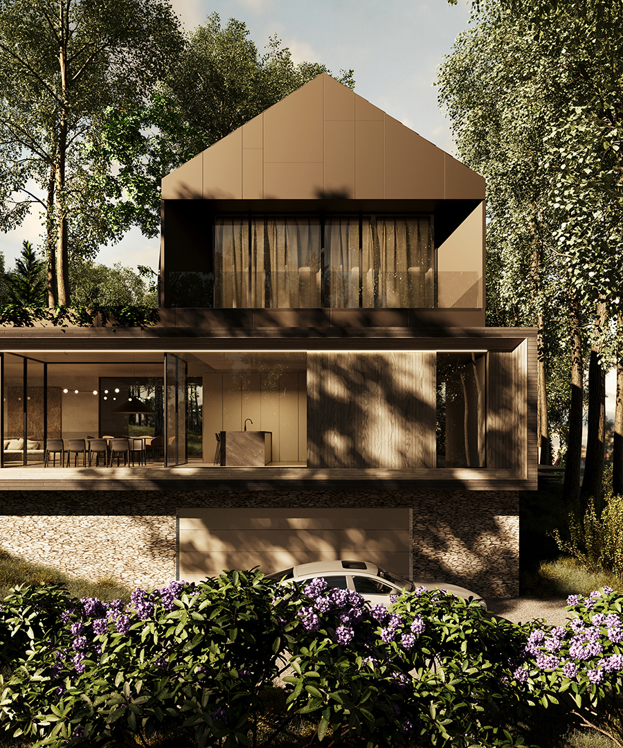 FOREST FRAME to projekt, który harmonijnie współistnieje z otoczeniem, stając się częścią jego krajobrazu. Dom o minimalistycznej formie emanuje ciepłem i przyjazną atmosferą, kadrując codzienność w zgodzie z naturą. Architektura sprzyja wyciszeniu oraz uważności, tworząc przestrzeń, w której każdy materiał został dobrany z myślą o trwałości i autentyczności.