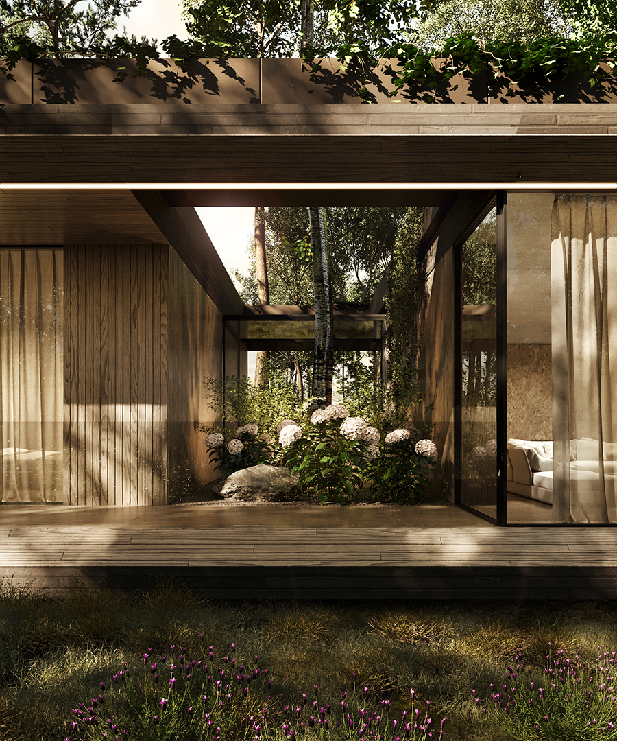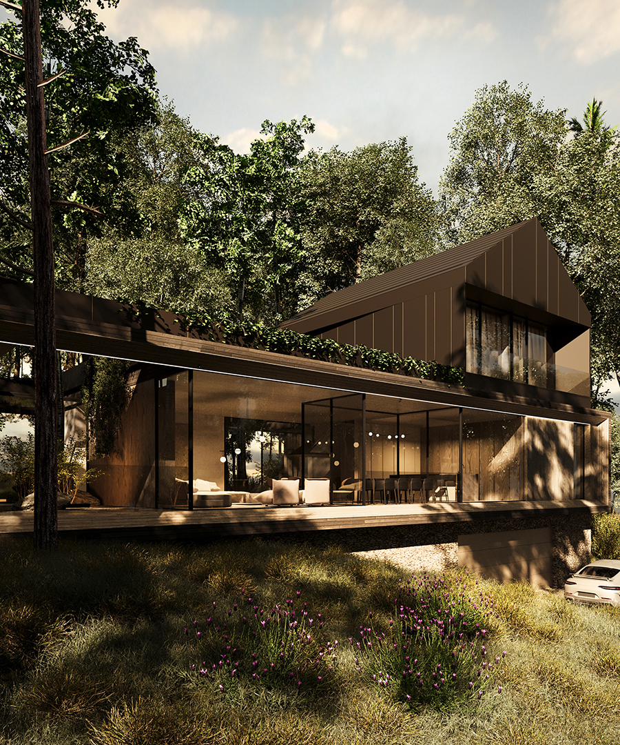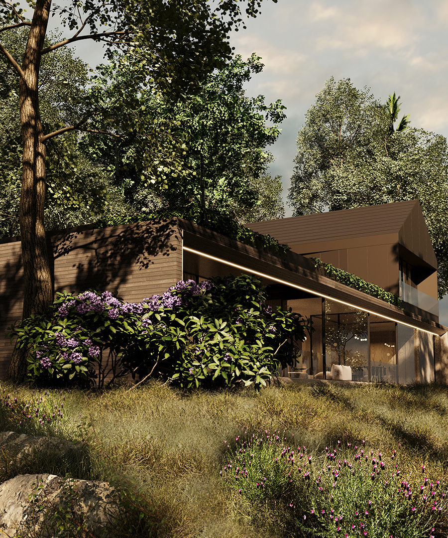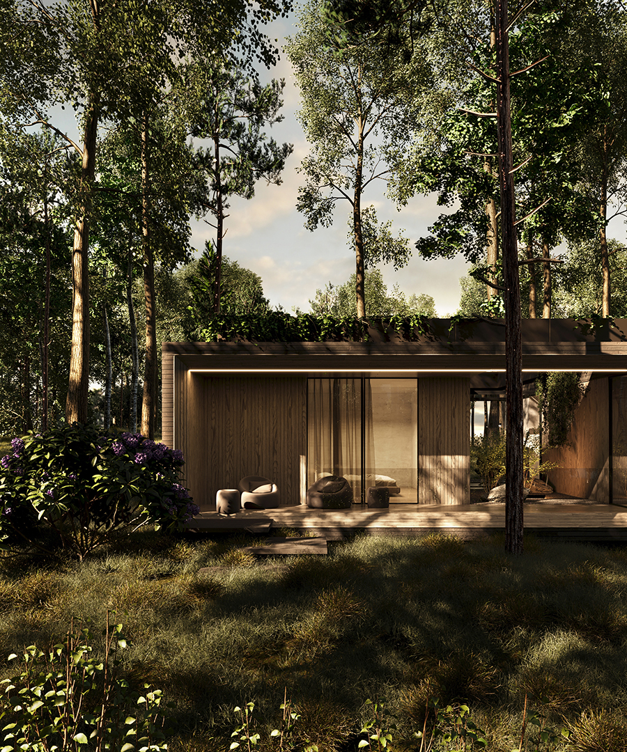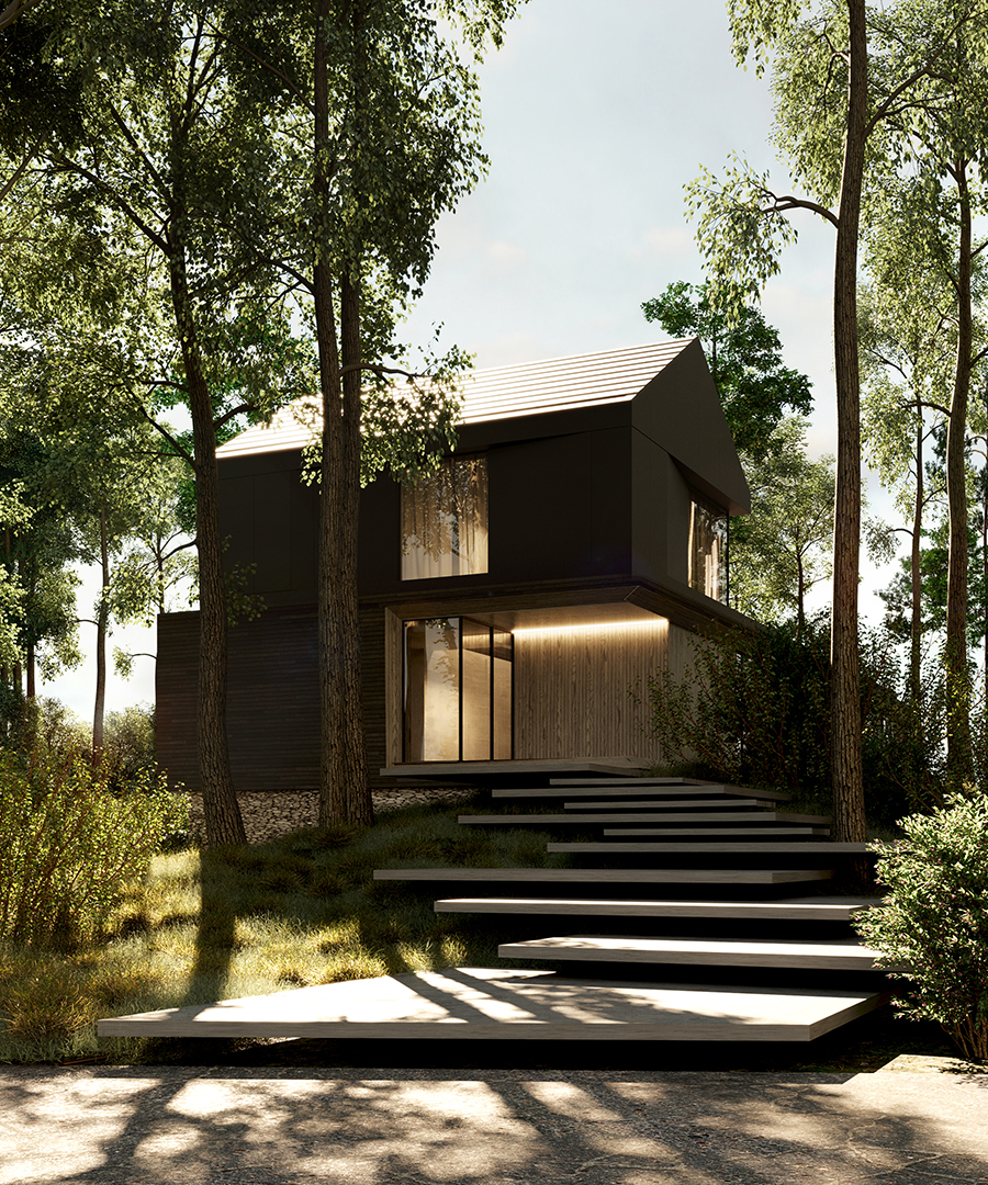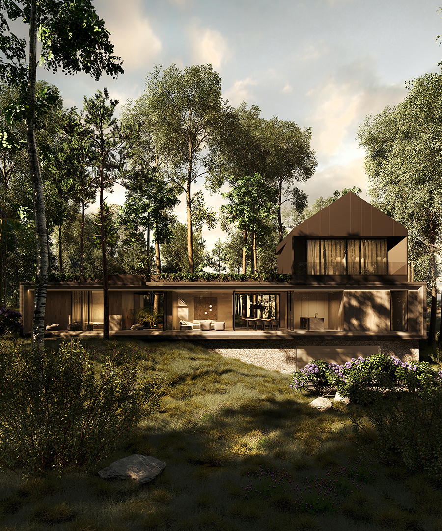 FOREST FRAME to projekt, który harmonijnie współistnieje z otoczeniem, stając się częścią jego krajobrazu. Dom o minimalistycznej formie emanuje ciepłem i przyjazną atmosferą, kadrując codzienność w zgodzie z naturą. Architektura sprzyja wyciszeniu oraz uważności, tworząc przestrzeń, w której każdy materiał został dobrany z myślą o trwałości i autentyczności.