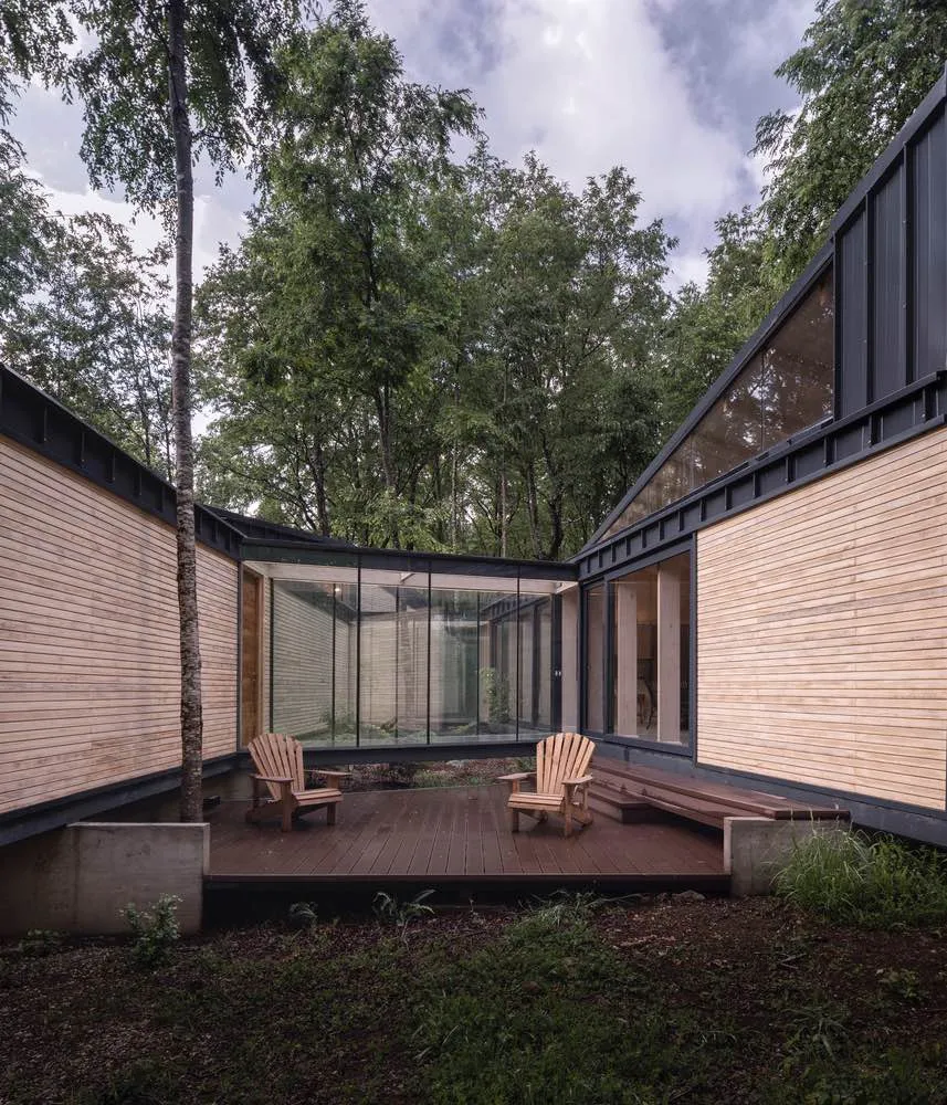 Forest House to przykład domu, który nie konkuruje z krajobrazem, lecz staje się jego częścią. Przemyślana forma, elastyczny układ funkcjonalny i konsekwentna materialność tworzą architekturę sprzyjającą wspólnemu wypoczynkowi, ale też indywidualnemu wyciszeniu. To dom zaprojektowany nie obok lasu, lecz w lesie – w stałym dialogu z naturą, światłem i zmiennością pór roku.