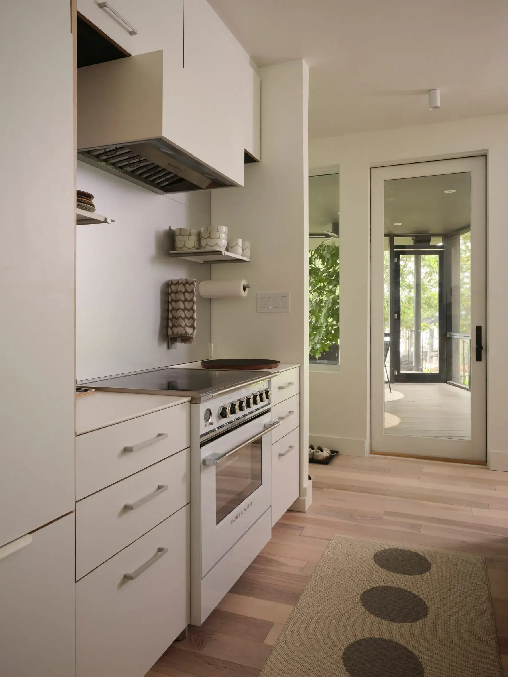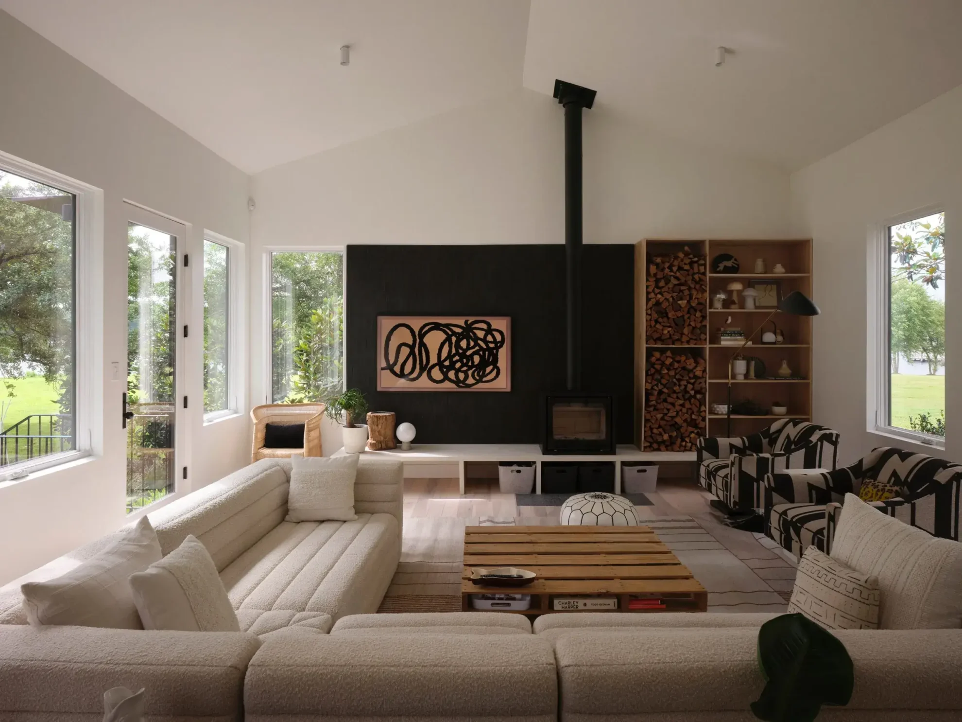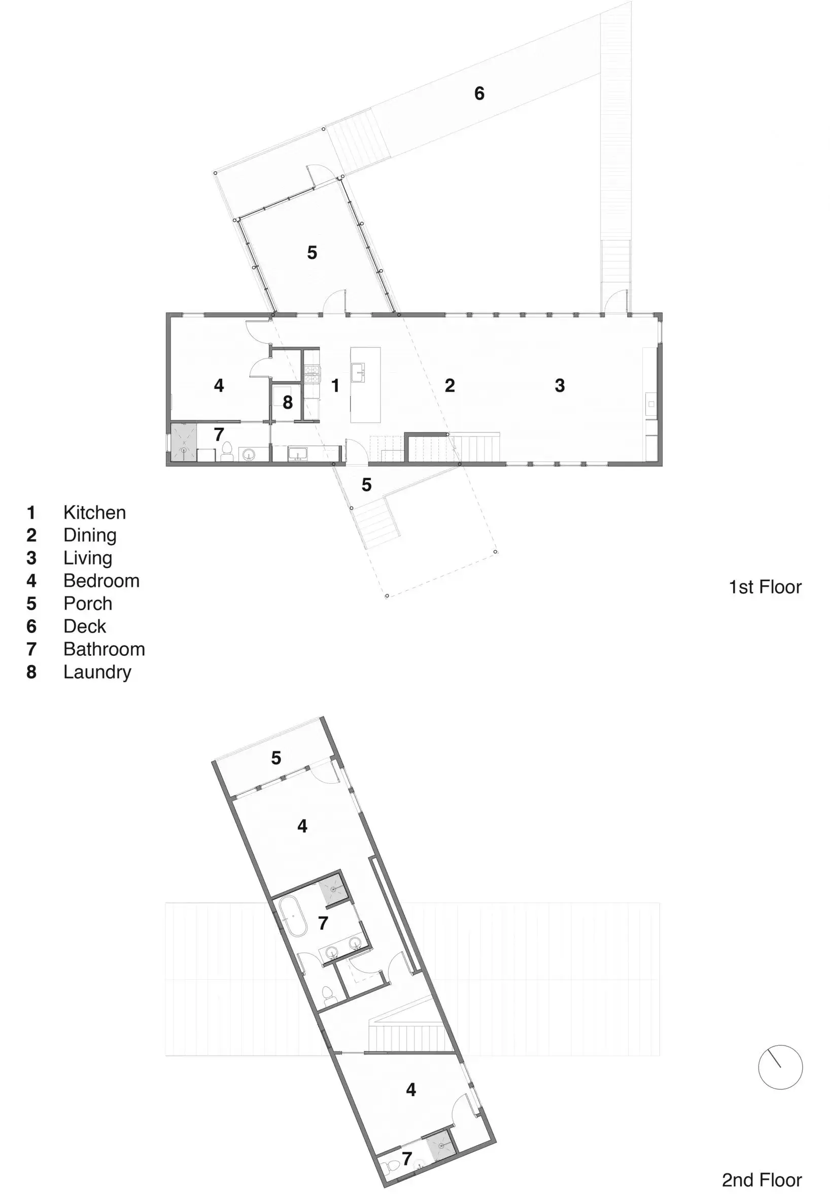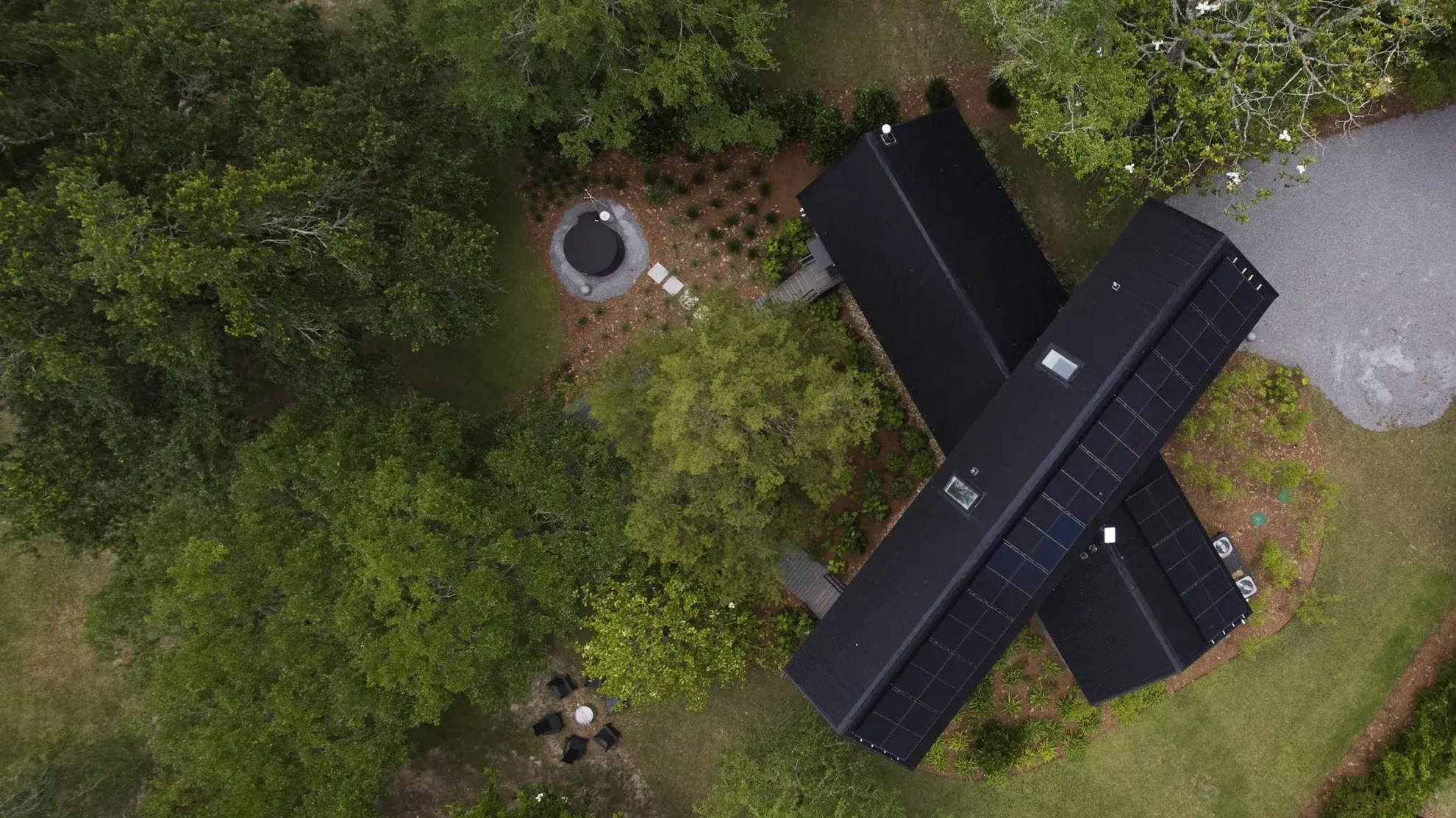 Studio dokładnie przeanalizowało teren pod kątem uwzględnienia istniejących drzew, widoków na rzekę, dostępu do wody i pobliskich budynków. Architekci chcieli stworzyć rezydencję, która szanuje miejsce i jego naturalne cechy. Czarną stodołę wzniesiono 1,2 metra nad ziemią na okrągłych stalowych kolumnach. Zgodnie z lokalnymi przepisami dotyczącymi wysokości przeciwpowodziowej. Na szczycie podpór znajdują się dwie szczytowe formy pokryte czarną falistą blachą. Wybrano ją, aby pomóc budynkowi „zniknąć w krajobrazie, zapewniając jednocześnie połączenie z naturą na każdym kroku”.