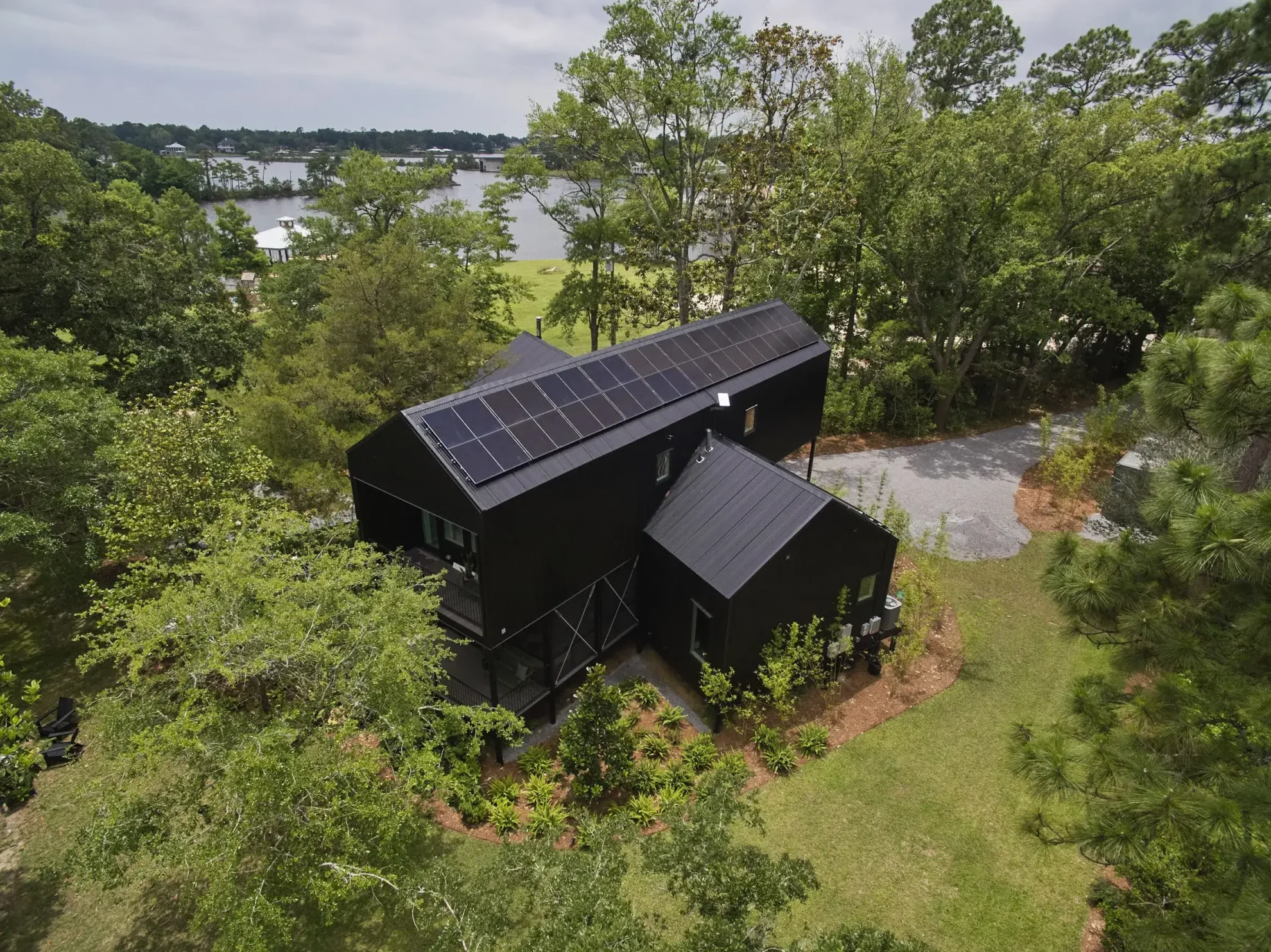 Studio Tall Architects stworzyło projekt domu składający się z dwóch ułożonych w stos form szczytowych. Obrócono je w kształt litery X i pokryto blachą falistą. Fowl River Cabin o powierzchni 195 metrów kwadratowych została ukończona w 2023 roku w Theodore – małej społeczności położonej na wybrzeżu Zatoki Meksykańskiej.