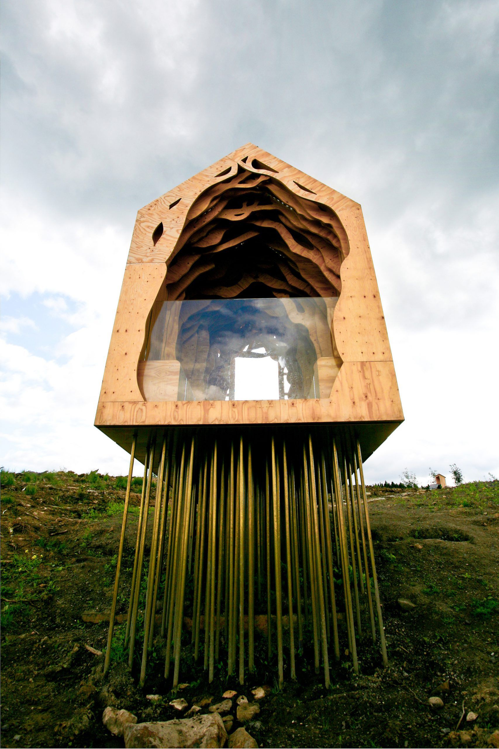 Kreatywny zespół angielskiej pracowni architektonicznej Studio Weave zaprojektował w 2009 roku dwa wyjątkowe drewniane pawilony – Freya i Robin – zlokalizowane w malowniczym Kielder Water and Forest Park w północnej Anglii. Park ten powstał z myślą o zrównoważonym rozwoju, edukacji ekologicznej, rekreacji oraz promocji sztuki i architektury. Znajduje się tu także największe sztuczne jezioro w Europie, co czyni to miejsce idealnym tłem dla architektury krajobrazu i niewielkich form architektonicznych inspirowanych naturą.