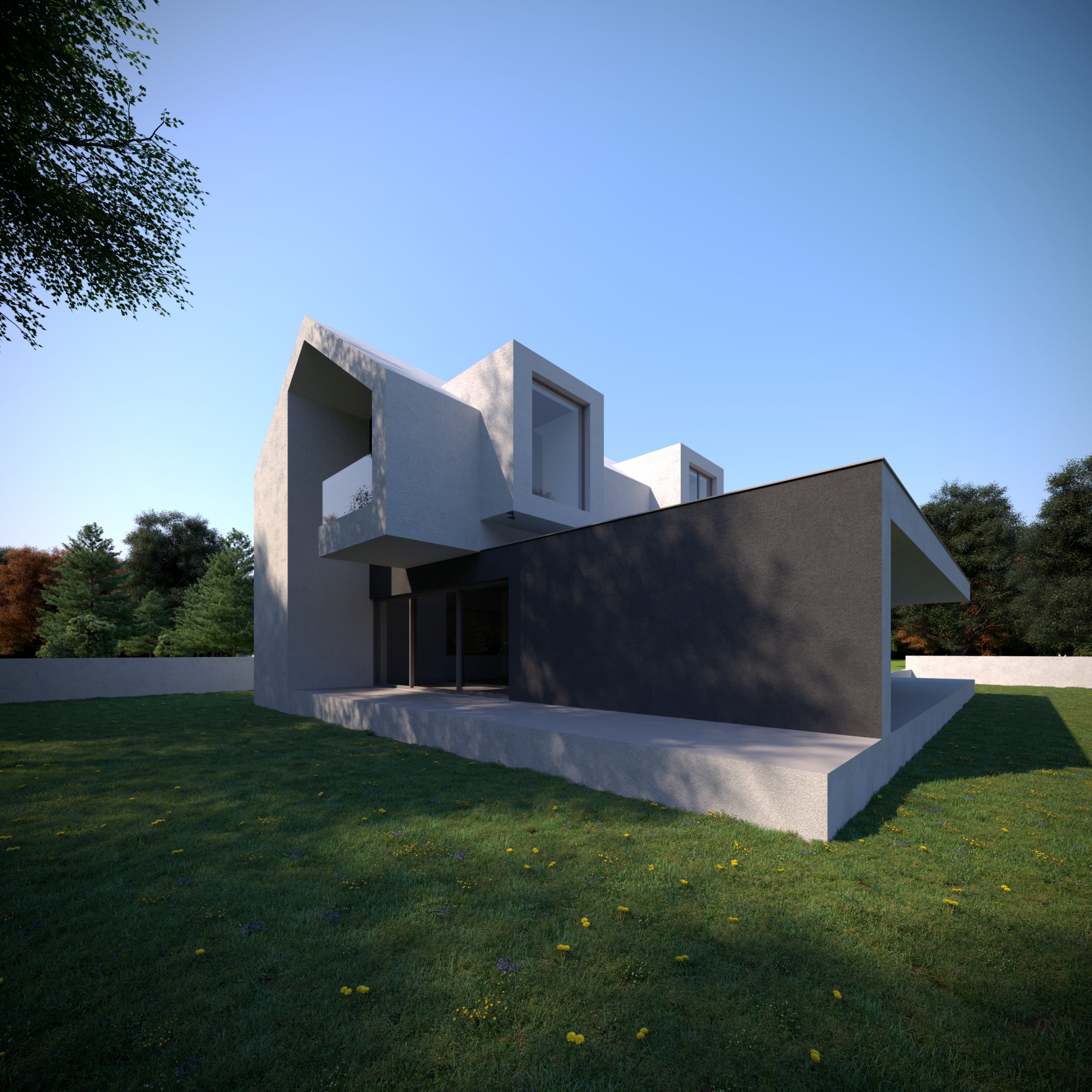 Jednorodna elewacja i przenikające się bryły