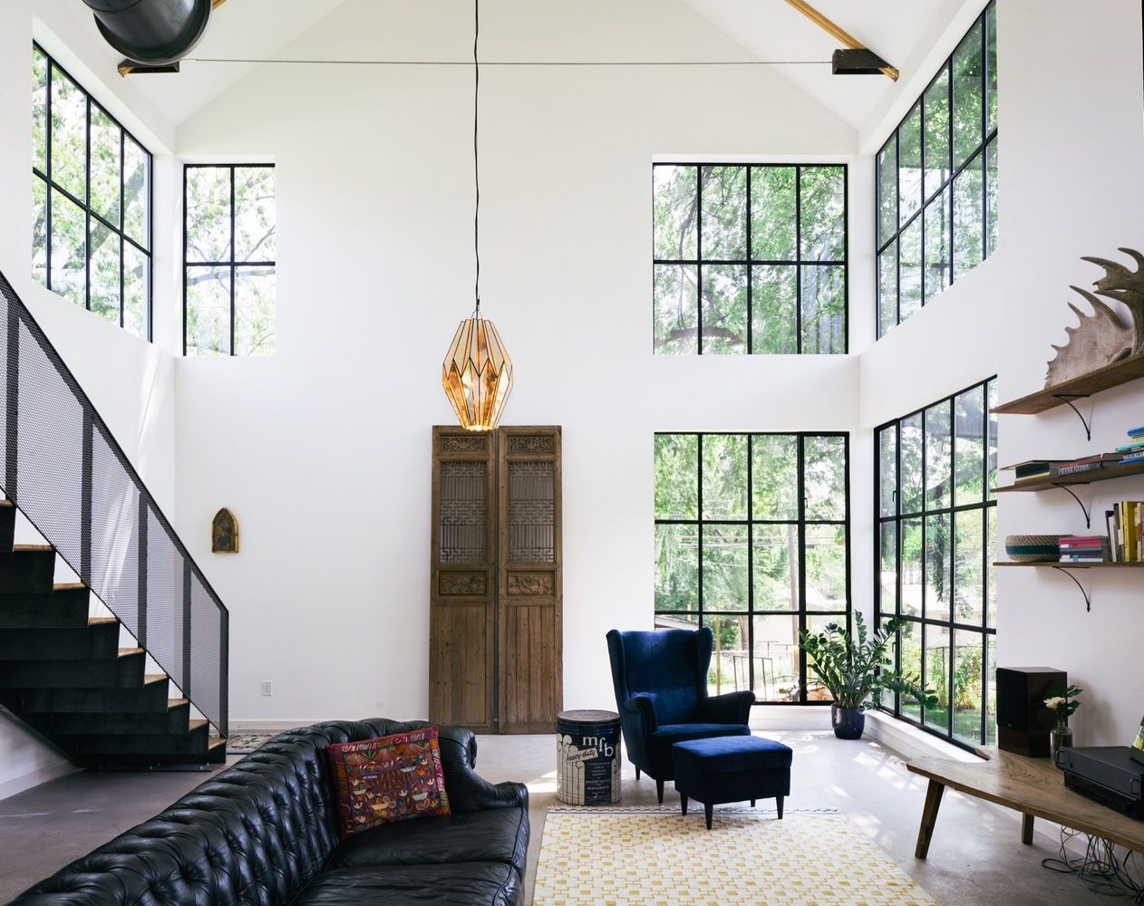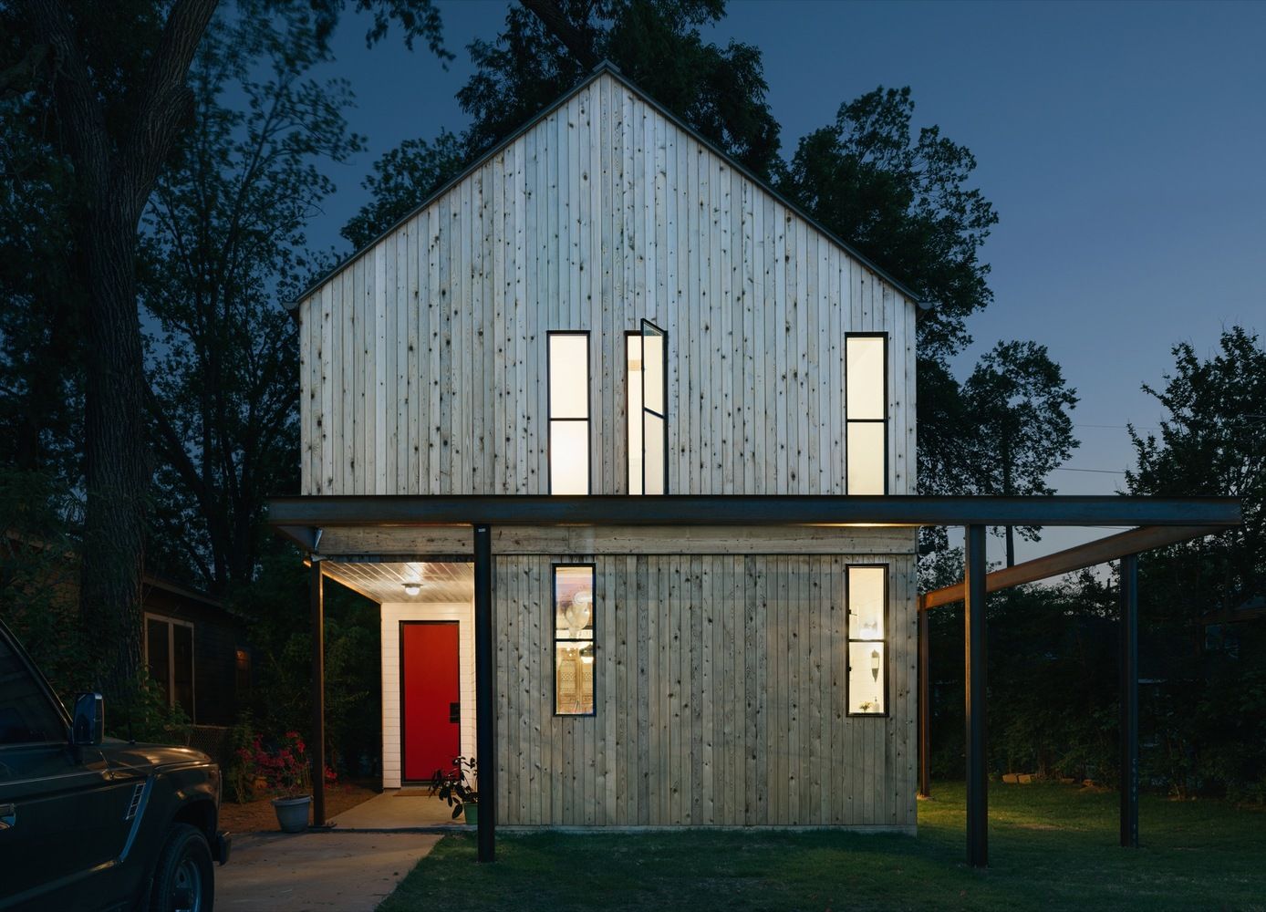 Ten niewielki domek w Austin w USA łączy czysty modernizm ze starymi regionalnymi budowlami, takimi jak stodoły i stajnie, których wciąż jest pełno w wiejskich rejonach Teksasu. Cedrowe obicie, widoczne drewno oraz stalowe ramy i okna nadają budynkowi surową estetykę, podczas gdy starannie dobrane detale, duże okna i czyste linie nawiązują do najważniejszych cech modernizmu. Ręcznie zrobione schody rezydencji zbudowano na miejscu ze stali i drewna sosnowego. Stalowe ramy okien wyprodukowano dwie mile dalej i pomalowano proszkowo. Podłoga niższego piętra to betonowa płyta, a na wyższym poziomie wykończono ją surowym drewnem. Estetyka wnętrza łączy elegancję, wydajność oraz surowość konstrukcji budynku.