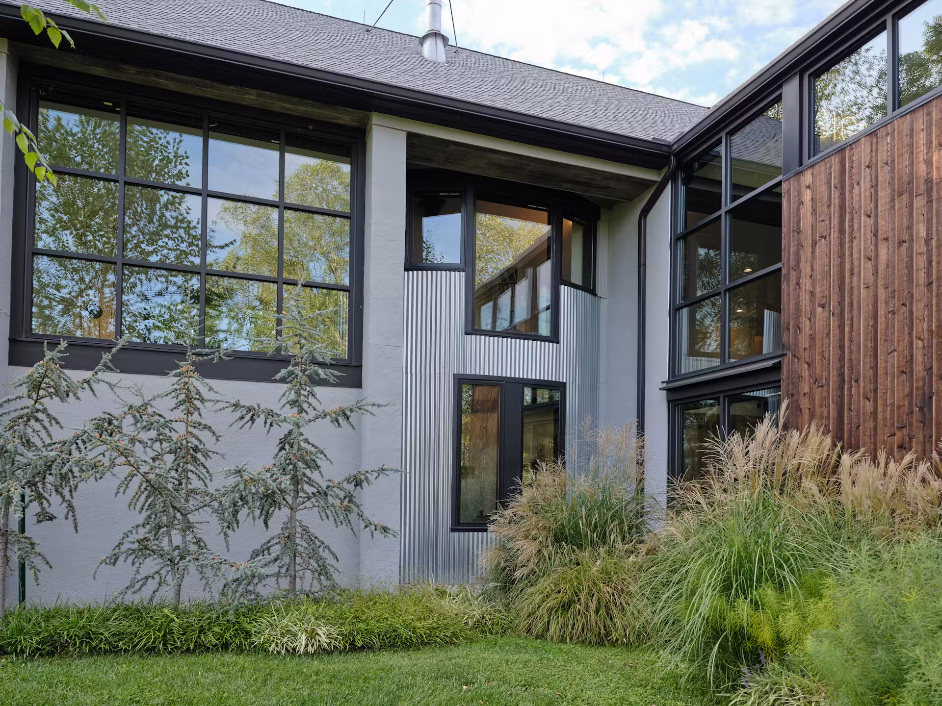 Rezydencja nawiązuje do archetypu amerykańskiej stodoły, jednak reinterpretowanej w duchu współczesnego minimalizmu. Prosta, wydłużona bryła kryje za szklanymi ścianami otwarte przestrzenie sięgające pełnej wysokości domu. Konstrukcja jest subtelna, a jednocześnie wyrazista – odsłonięte elementy stalowe i betonowe łączą się z transparentnością fasad, tworząc architekturę, która jednocześnie dominuje i znika w krajobrazie.