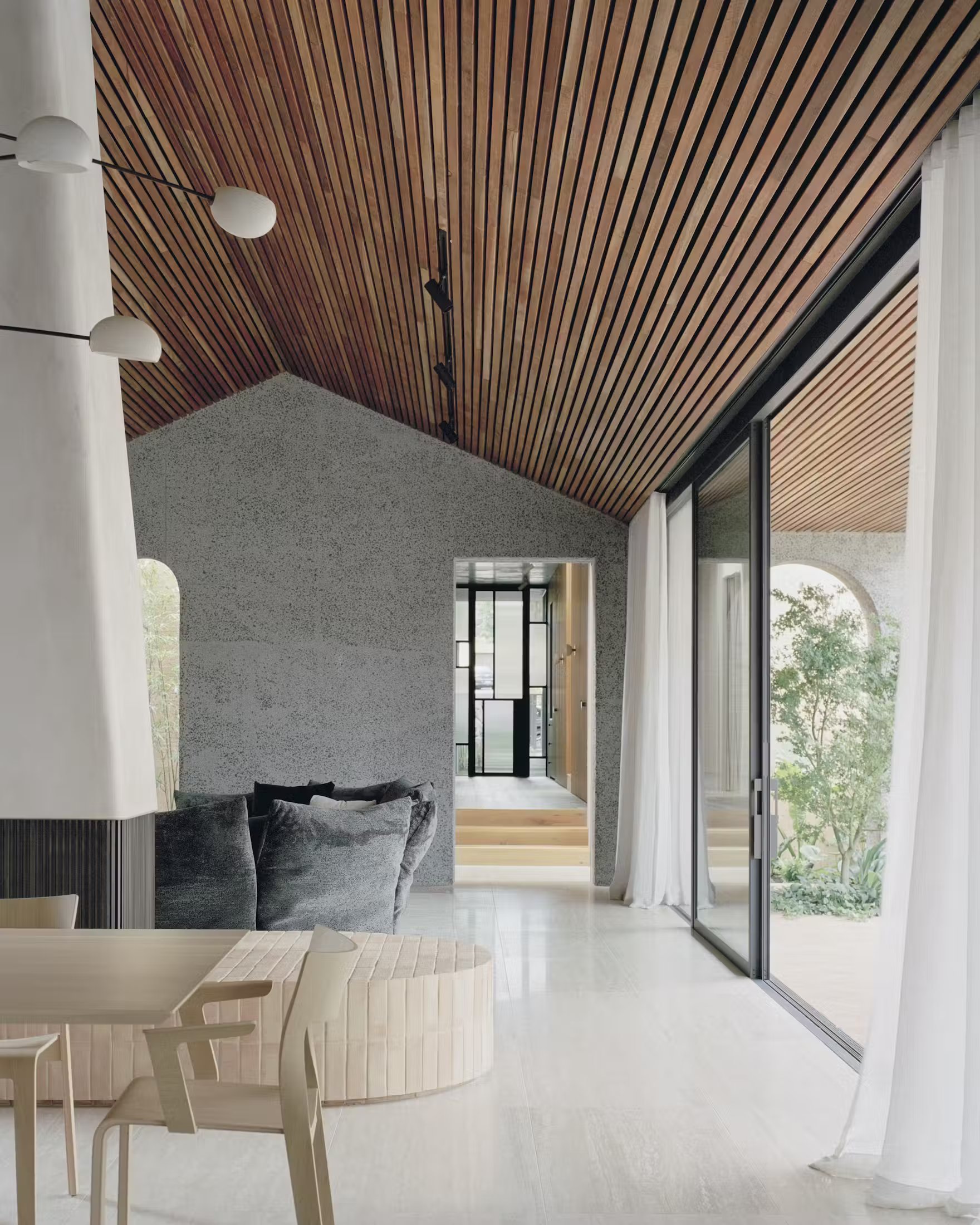 Glen Iris House nie jest tylko budynkiem; to dom ekologiczny, który łączy nowoczesne technologie z naturalnym krajobrazem. Otoczenie zostało wkomponowane w plan budowy, a integracja roślinności z przestrzenią życiową jest wyjątkowo staranna. Skrzynki na rośliny, precyzyjnie zaplanowane cięcia w formie i dobrze dobrane otwory w elewacji tworzą silny dialog z ogrodem. Ekologiczne podejście do budowy zapewnia niską konserwację domu oraz jego długowieczność, co dodatkowo podkreśla naturalne starzenie się materiałów.