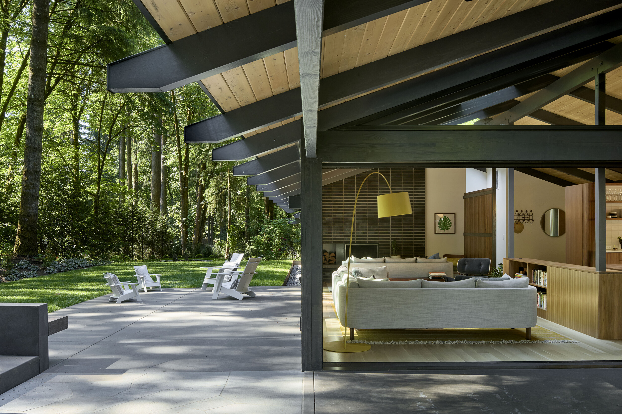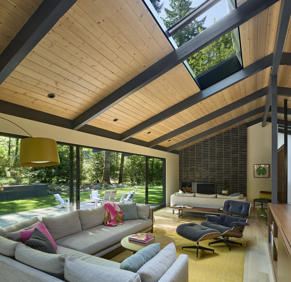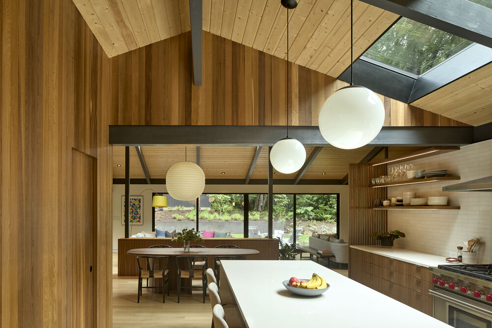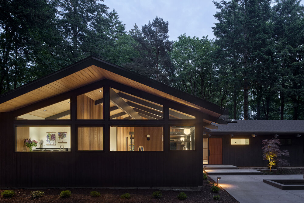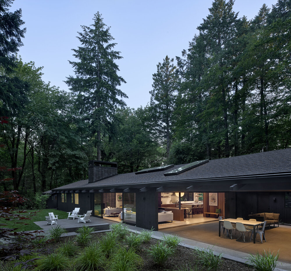 Dom z lat 50., usytuowany na dużej, zalesionej działce, przeszedł gruntowną przebudowę, stając się nowoczesnym, przestronnym domem rodzinnym, który zachowuje głęboką więź z historią i otaczającą naturą. Projekt przebudowy miał na celu stworzenie harmonijnego połączenia z przepięknym krajobrazem, w który dom jest wkomponowany. Dzięki zastosowaniu nowoczesnych rozwiązań architektonicznych, nowy dom zapewnia doskonałe połączenie z naturą, zachowując jednocześnie historyczny charakter budynku.