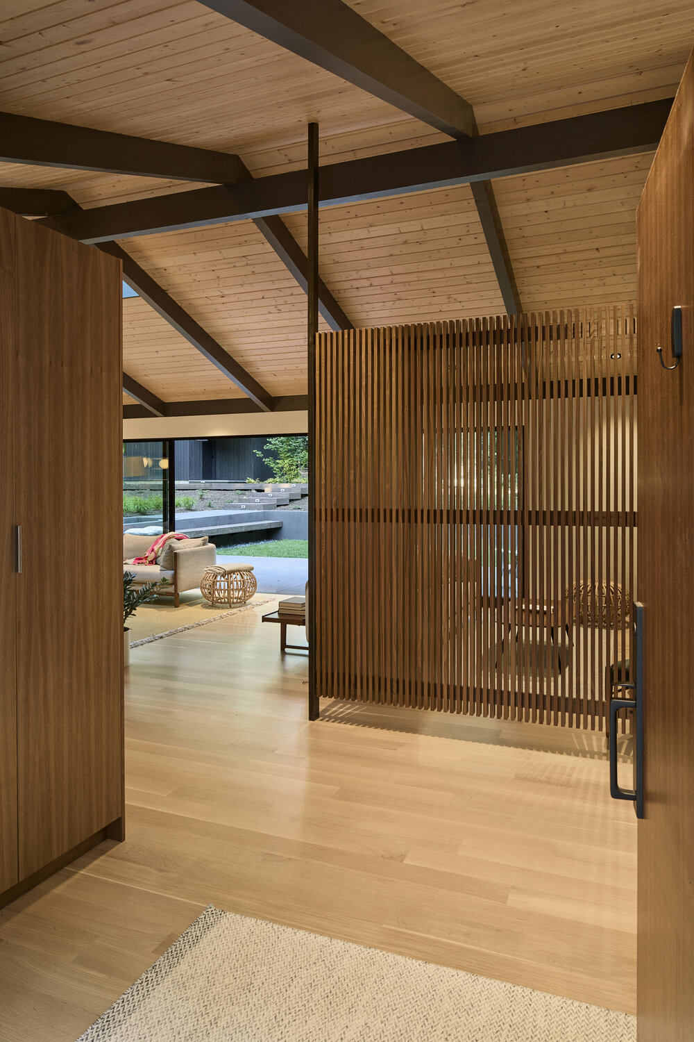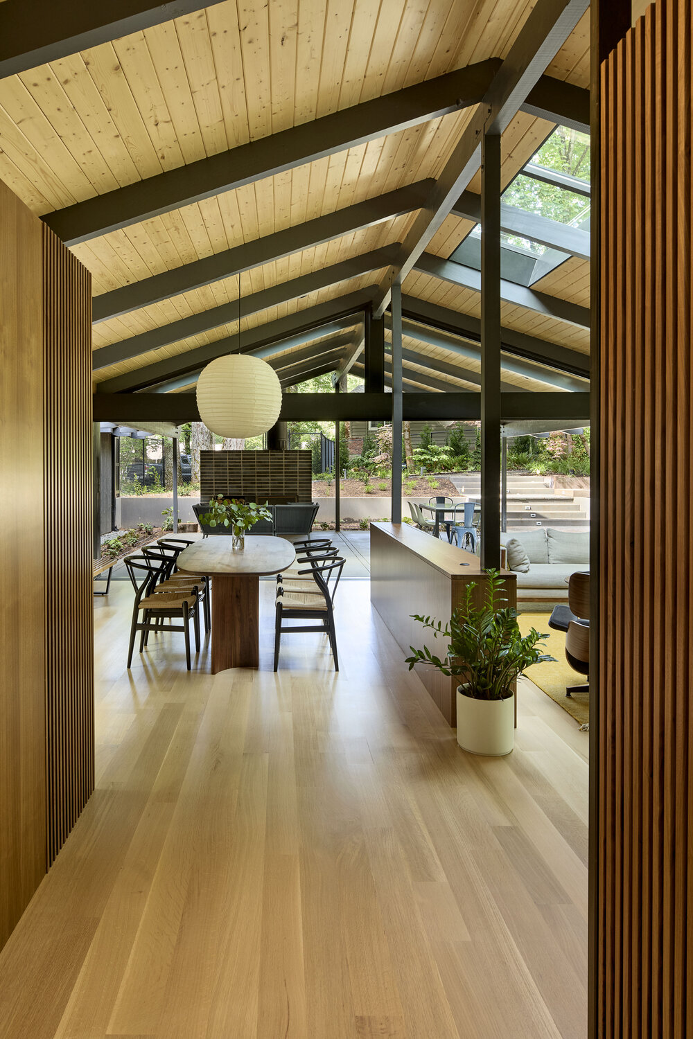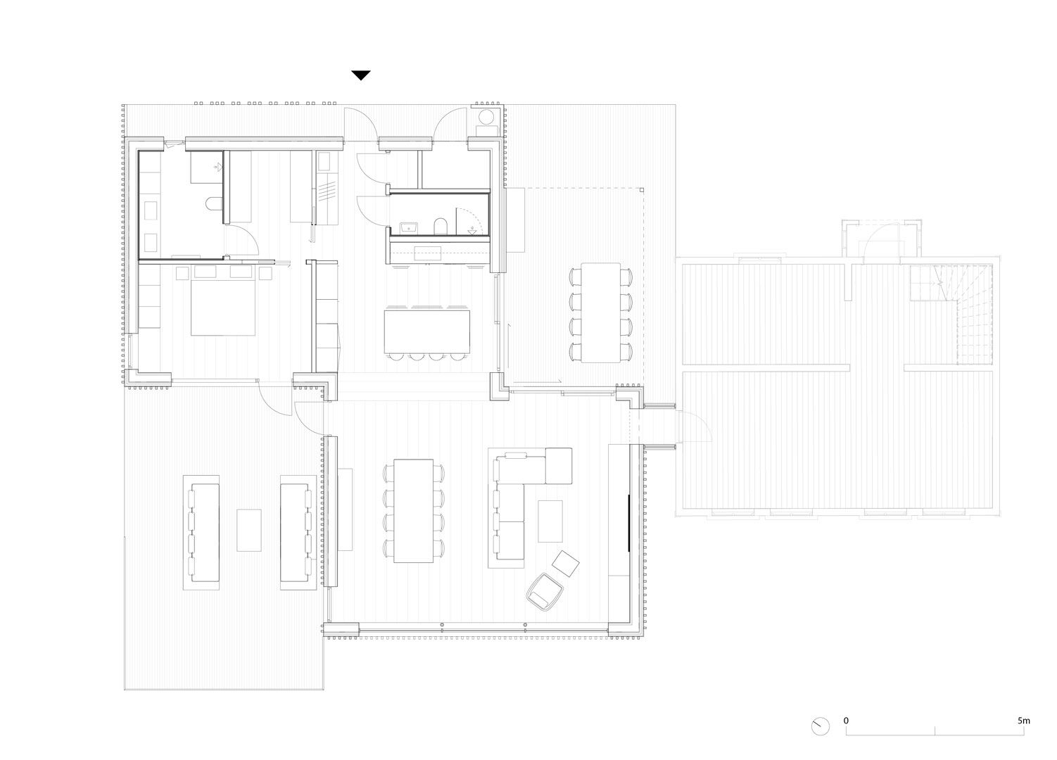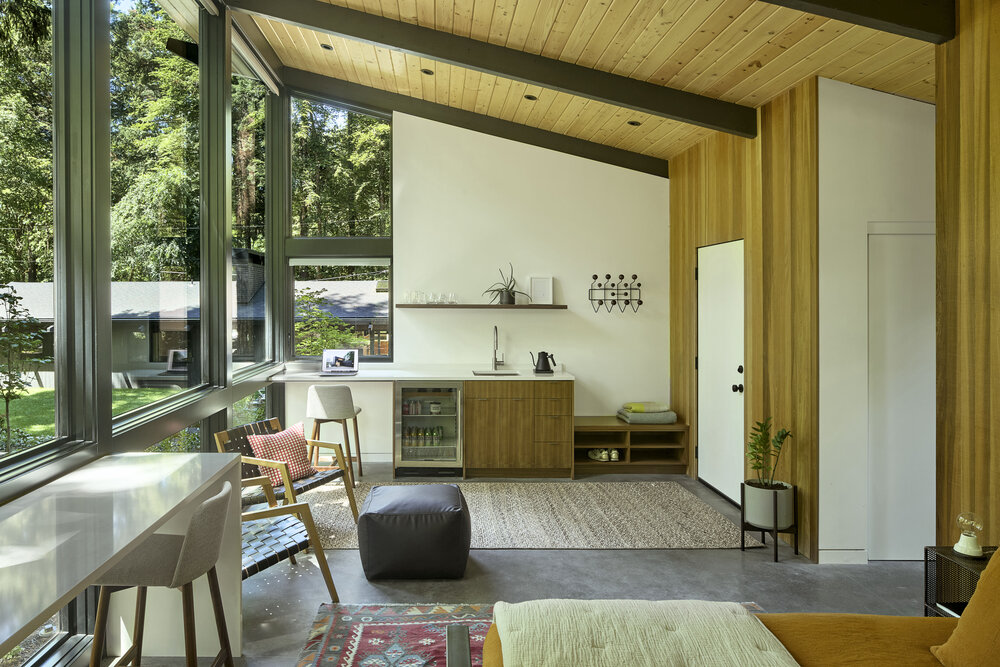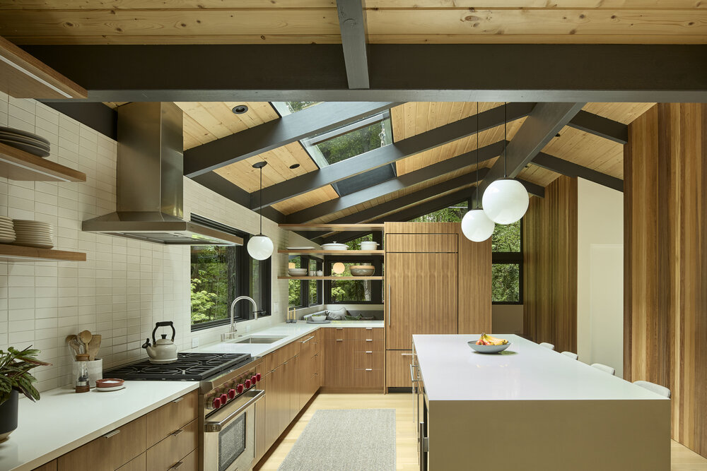 Dom z lat 50., usytuowany na dużej, zalesionej działce, przeszedł gruntowną przebudowę, stając się nowoczesnym, przestronnym domem rodzinnym, który zachowuje głęboką więź z historią i otaczającą naturą. Projekt przebudowy miał na celu stworzenie harmonijnego połączenia z przepięknym krajobrazem, w który dom jest wkomponowany. Dzięki zastosowaniu nowoczesnych rozwiązań architektonicznych, nowy dom zapewnia doskonałe połączenie z naturą, zachowując jednocześnie historyczny charakter budynku.