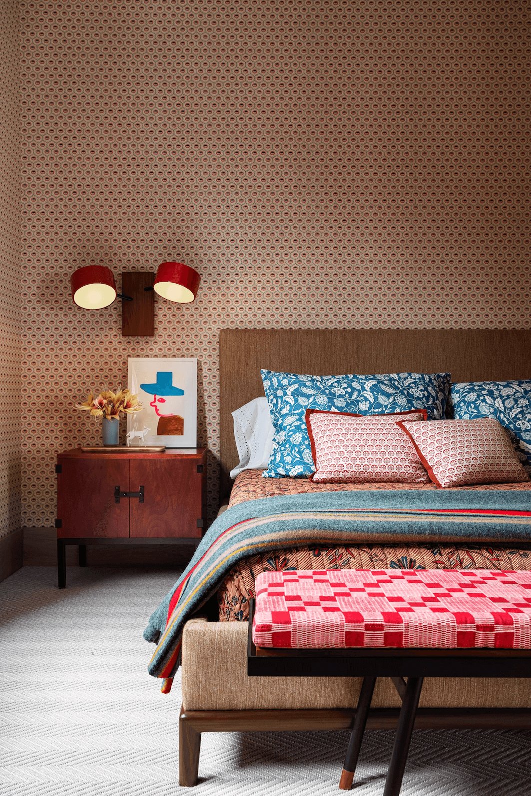Surowość, narzuconą przez nowoczesną architekturę, złagodzono za pomocą przytulnych konfiguracji siedzeń, pluszowych tkanin, podstawowych kolorów, motywów kwiatowych i akcentów roślinnych. Klientka zauważa, że Warner posiada „zmysł architektoniczny, który nadaje wymiar i cel jej przestrzeniom”, doceniając jej umiejętność mieszania tekstur oraz nadawania przestrzeniom naprawdę unikalnego charakteru.