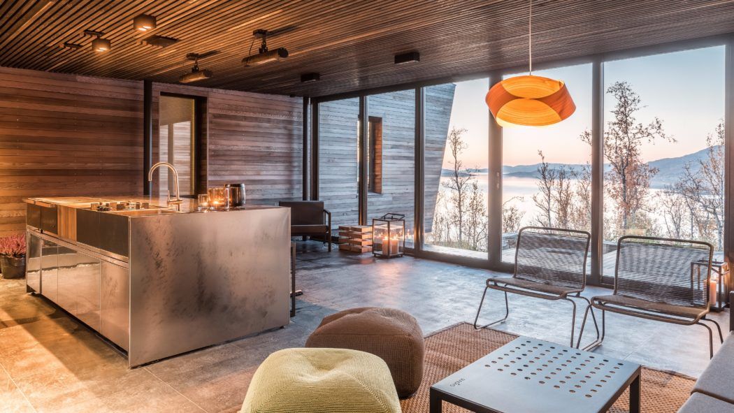 Ten wyjątkowy górski dom w Norwegii, zaprojektowany w 2017 roku przez Snorre Stinessen Architecture, znajduje się w pobliżu miasta Tromsø, na półwyspie Malangen, zaledwie godzinę jazdy samochodem od północnej stolicy kraju. Działka położona jest na krawędzi terenu ponad fiordem i z jednej strony zamknięta gęstym lasem, co stworzyło idealne warunki do zaprojektowania domu silnie związanego z krajobrazem. Bryła została ustawiona w osi wschód–zachód, dzięki czemu od strony zewnętrznej chroni las, który odkrywa się dopiero po przejściu przez duże, przesuwne drzwi prowadzące na osłonięty dziedziniec. Architektura domu czerpie z nordyckiego minimalizmu i prostych form, bliskich idei, jaką reprezentuje również nowoczesna stodoła — klarowny układ, naturalne materiały i harmonijne wpisanie w surowy krajobraz północnej Norwegii.