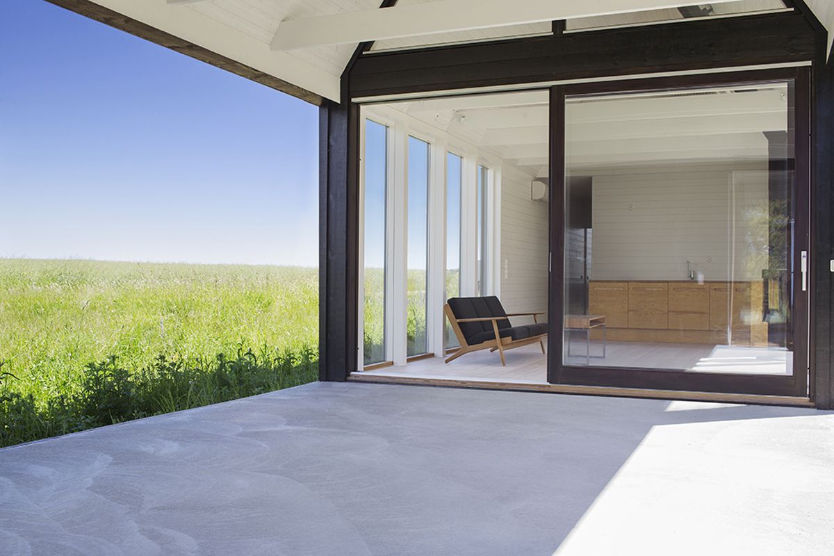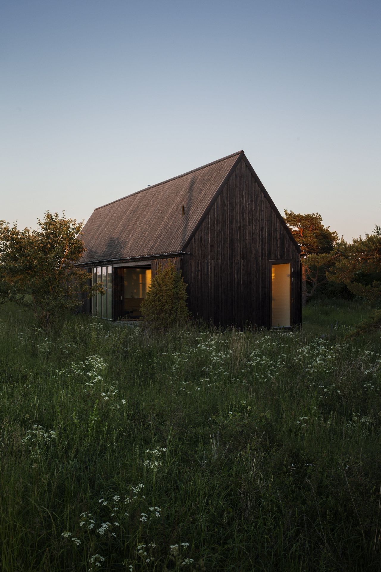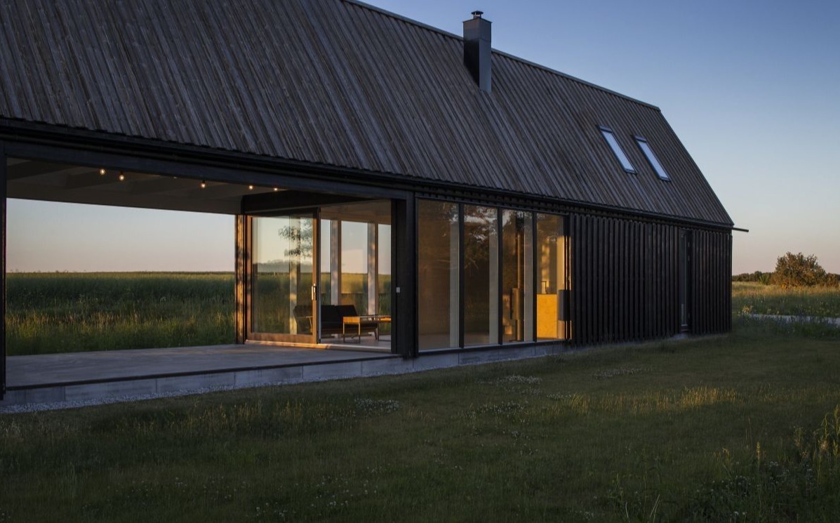 Domek letniskowy dla młodej rodziny powstał na szwedzkiej wyspie Gotlandia, położonej na Morzu Bałtyckim, w otoczeniu otwartej przestrzeni od północy i niskiego lasu od południa. Projekt domu nawiązuje do lokalnych tradycji budowlanych, które odgrywają kluczową rolę w architekturze regionu. Wąska bryła budynku została zaprojektowana tak, aby maksymalnie doświetlić wnętrze i otworzyć je na krajobraz, sprawiając, że natura staje się integralną częścią aranżacji. Elewacja oraz dach pokryte smołowanymi deskami sosnowymi nadają całości wyrazisty charakter inspirowany estetyką, jaką oferuje nowoczesna stodoła w skandynawskim wydaniu.